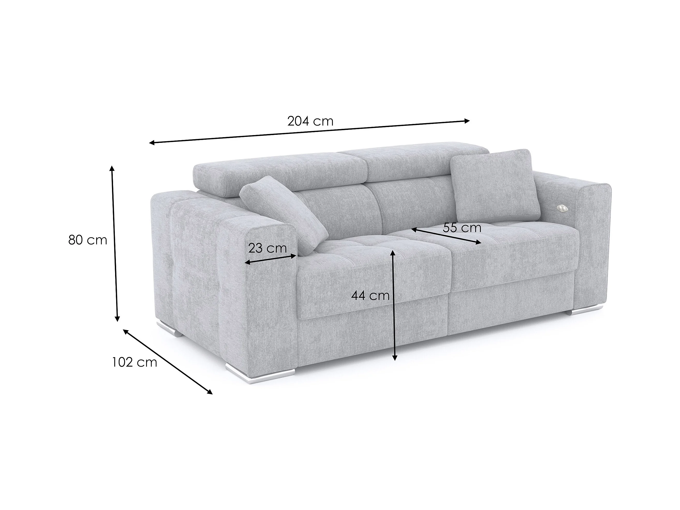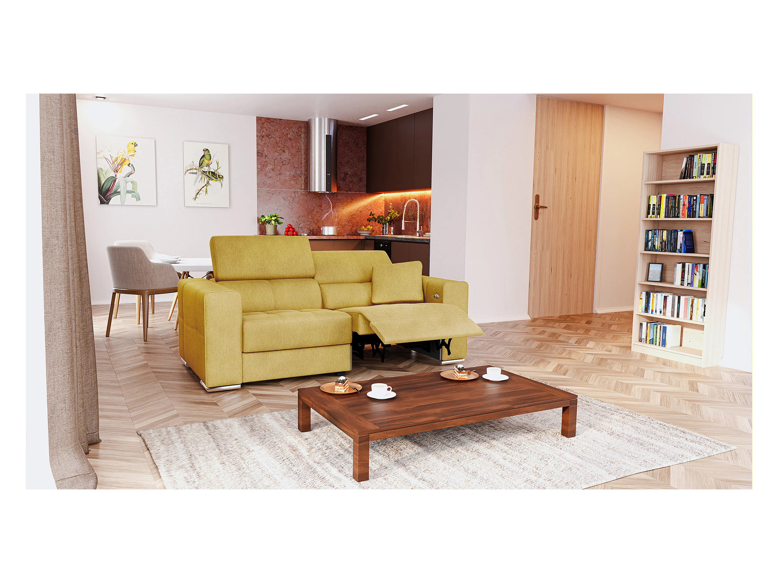 QUARTZ Sofa 3-Sitzer mit 1 Relaxfunktion und verstellbare Kopfstützen, senfgelb