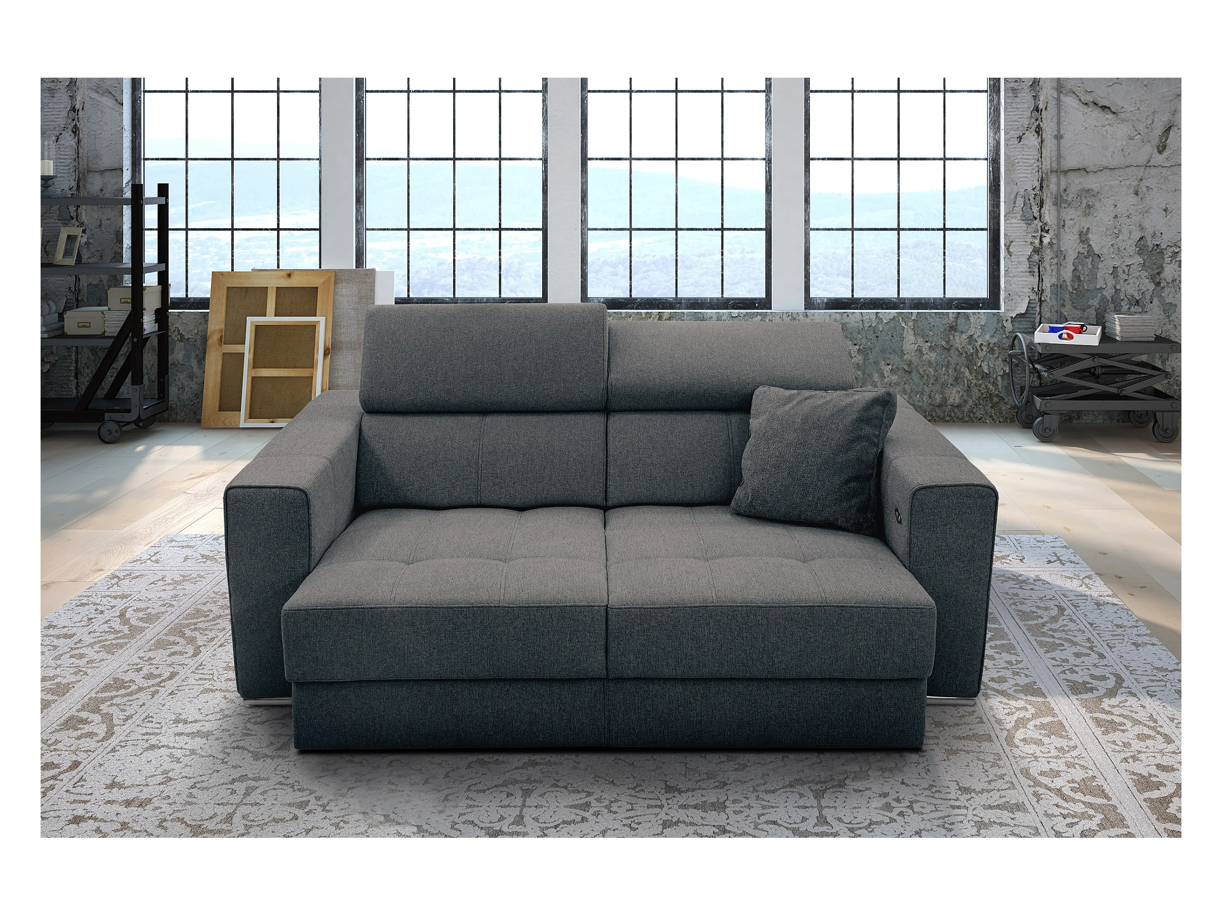 QUARTZ Sofa 3-Sitzer mit Ausziehsitz und verstellbare Kopfstützen, dunkelgrau