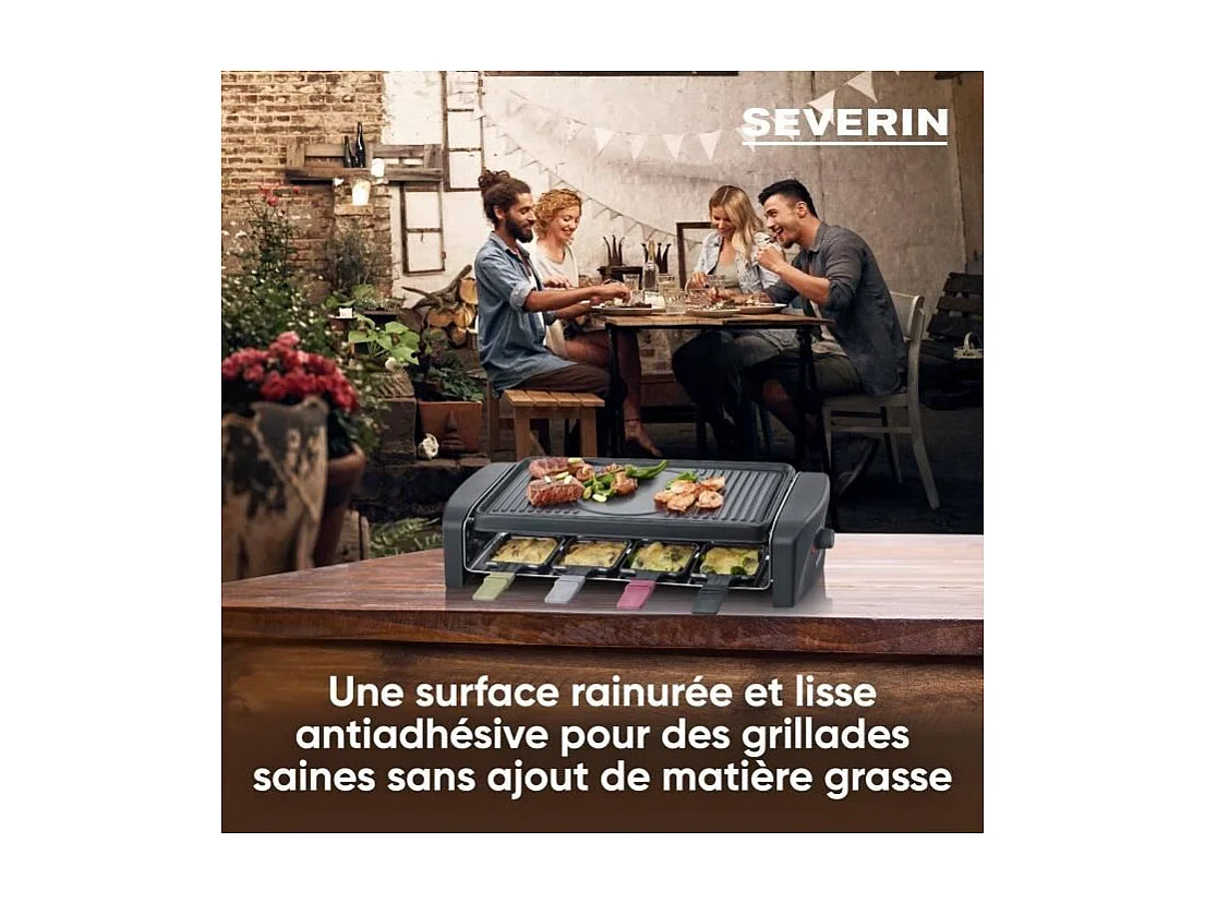 Raclettegerät für 8 Personen, 1.400 W – gerillte und glatte Kochplatte 41,5 x 21 cm, antihaftbeschichtet – Schwarz/Edelstahl