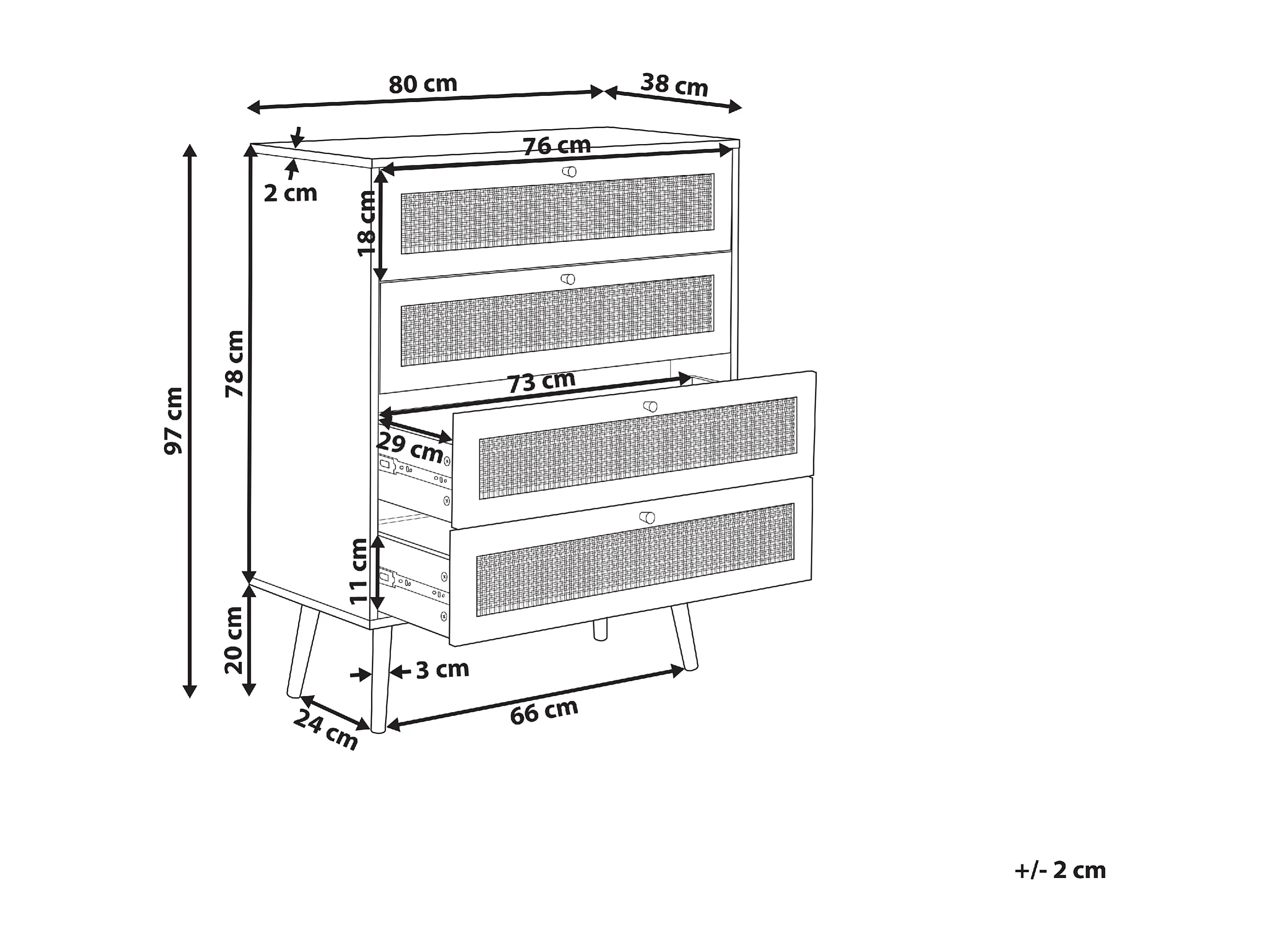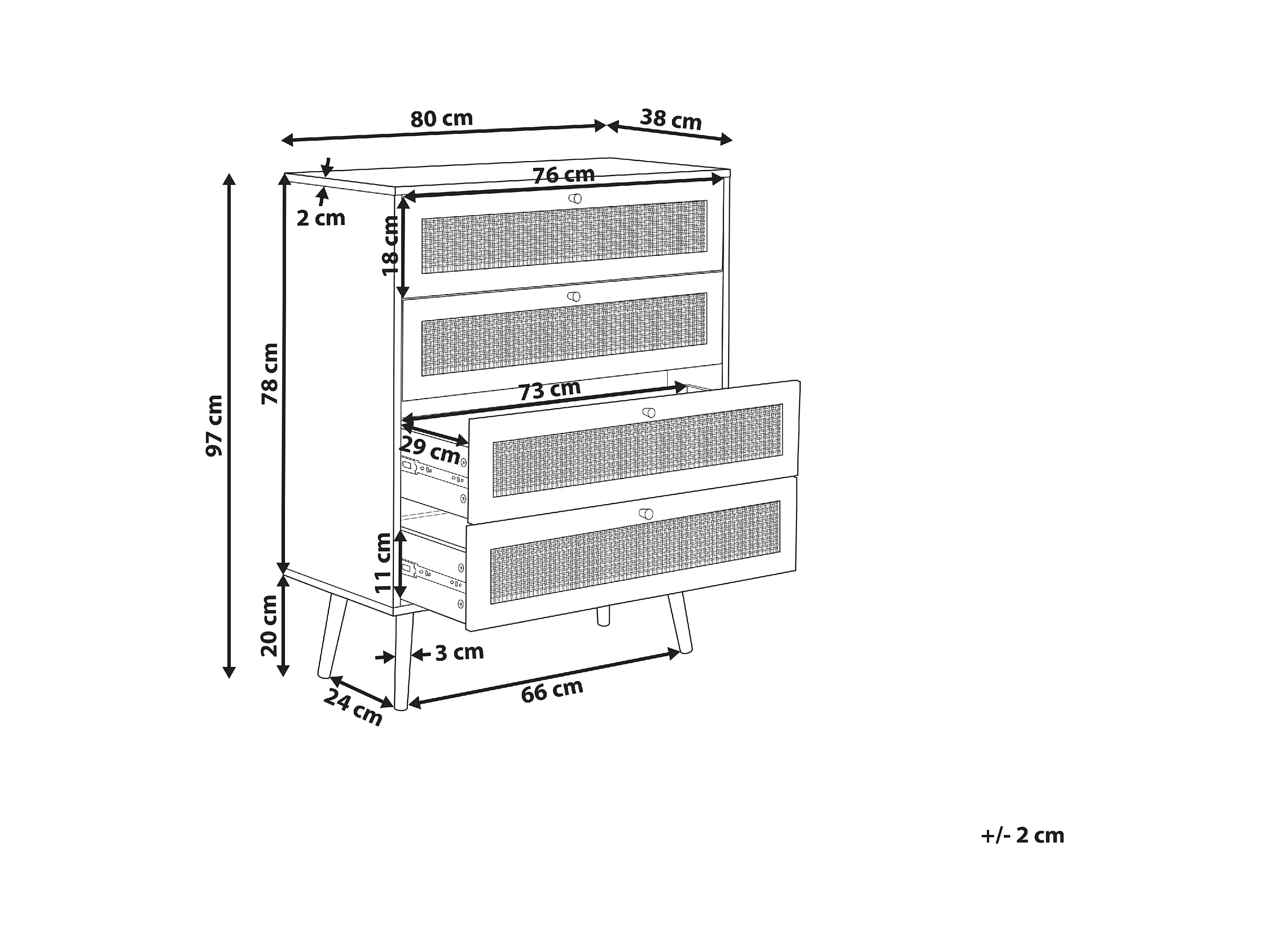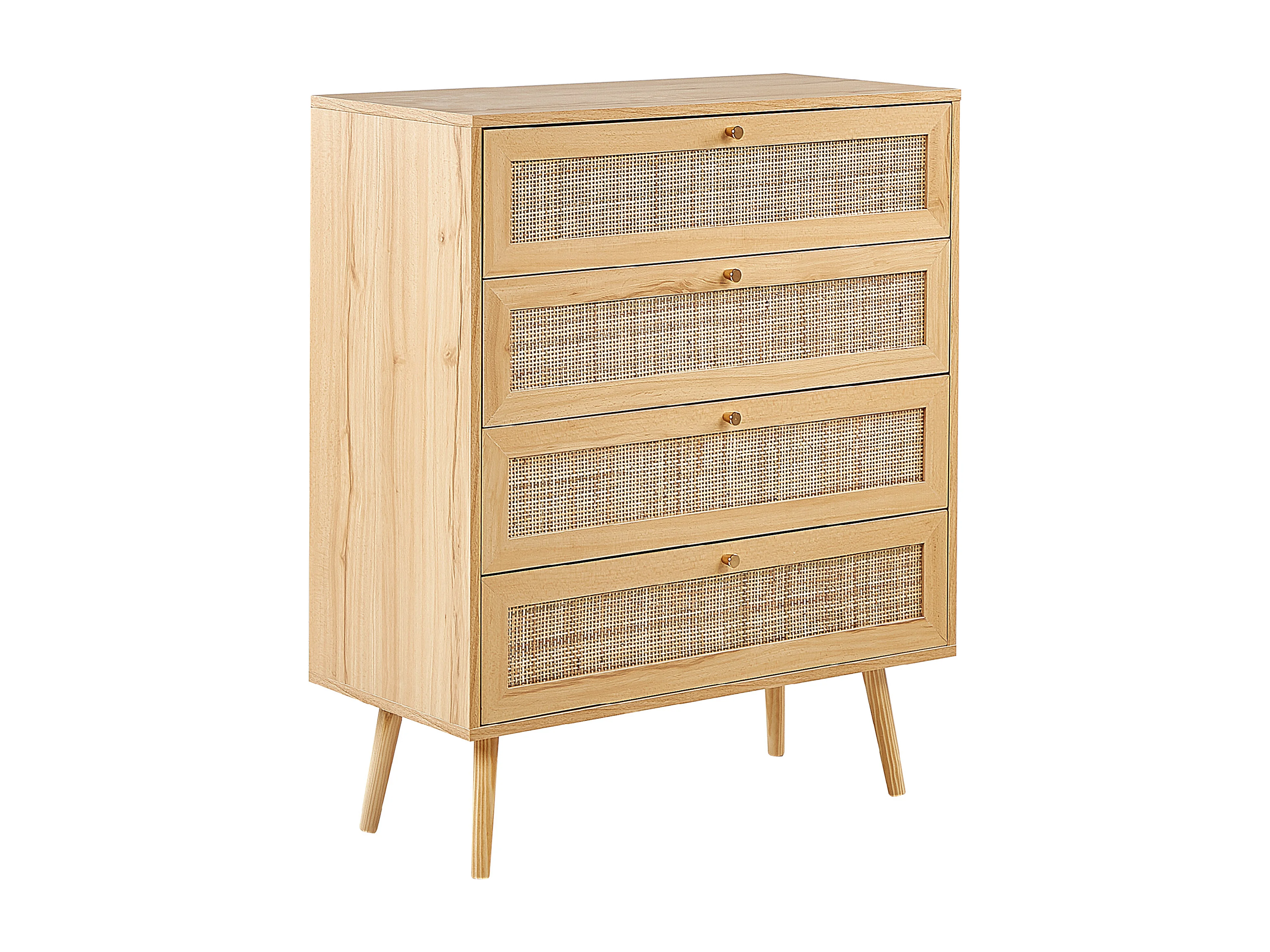 Kommode mit 4 Schubladen aus hellbraunem Rattan im Boho-Stil Perote
