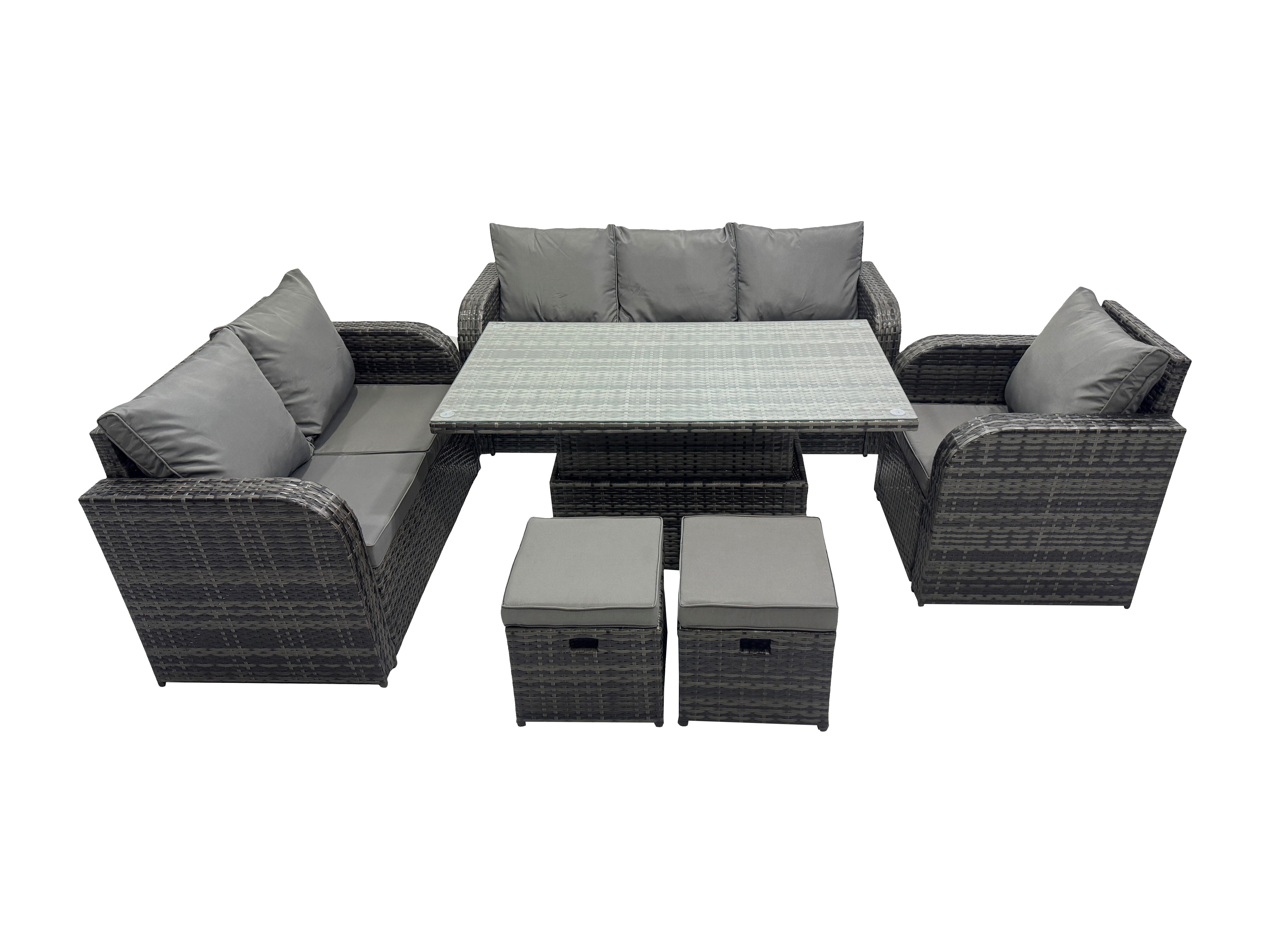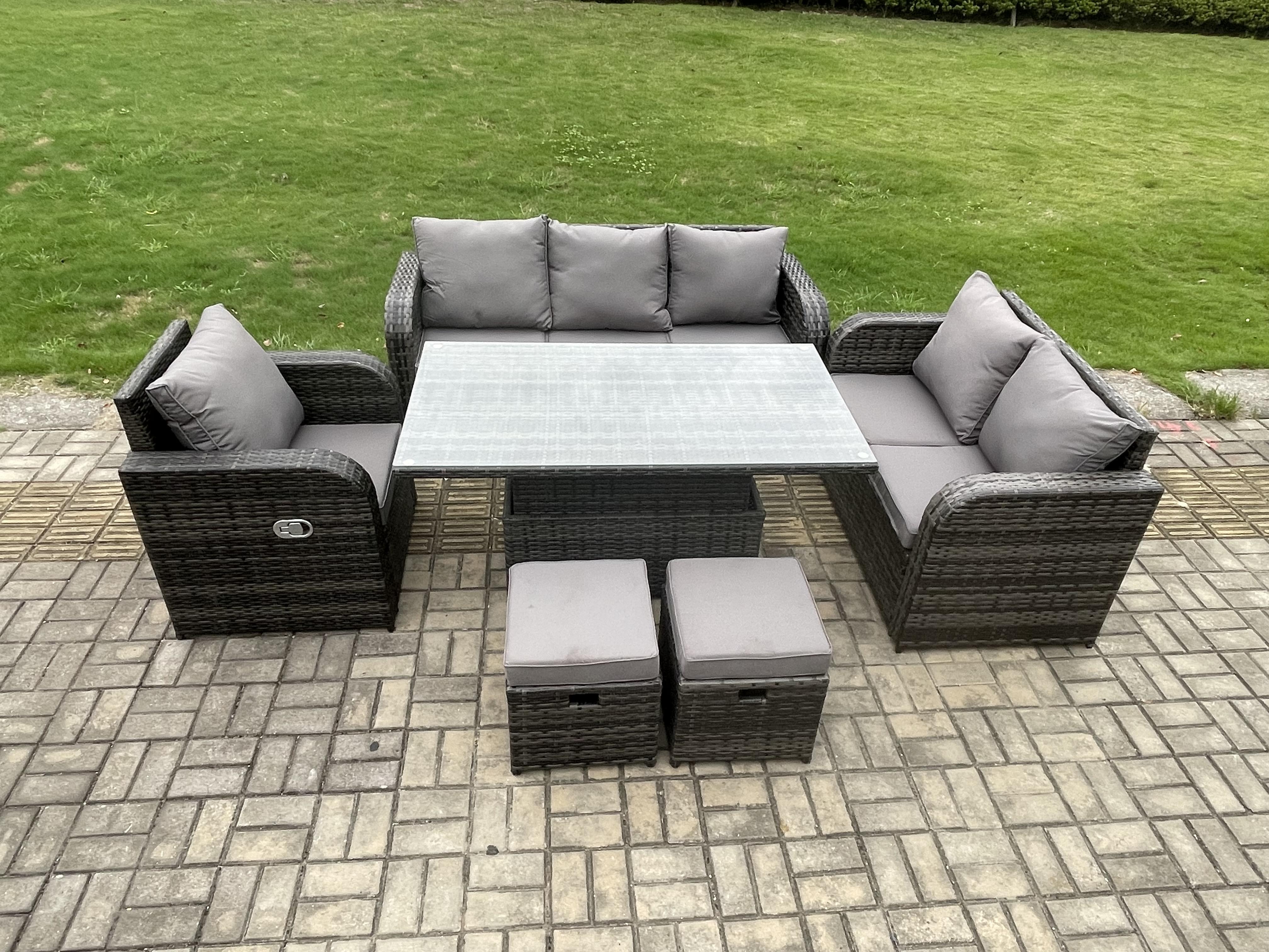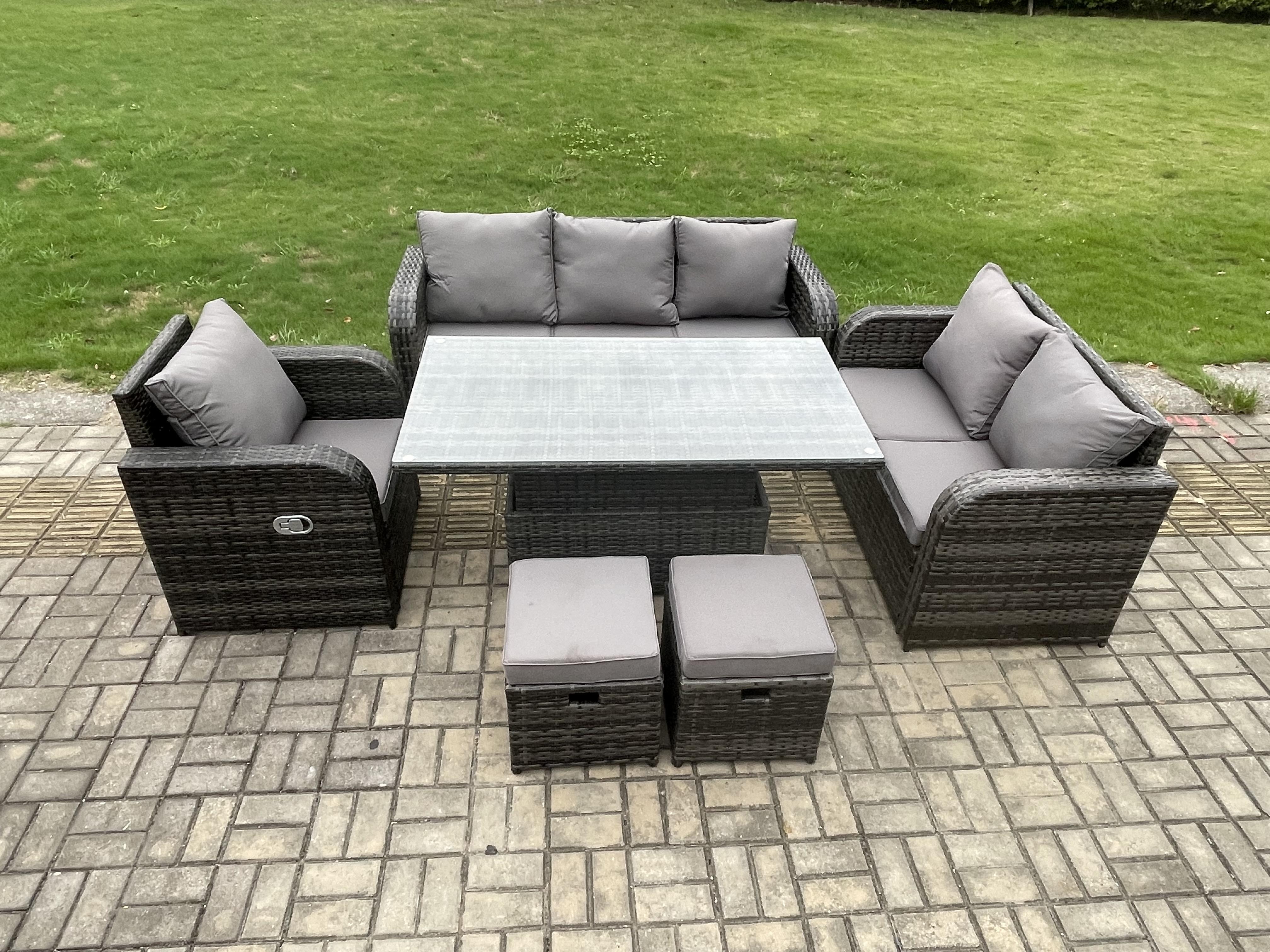 Rattan Gartenmöbel im Freien Patio höhenverstellbarer Tisch Liegestühle Sofa mit 2 kleine Fußhockern Dunkelgrau Gemischt