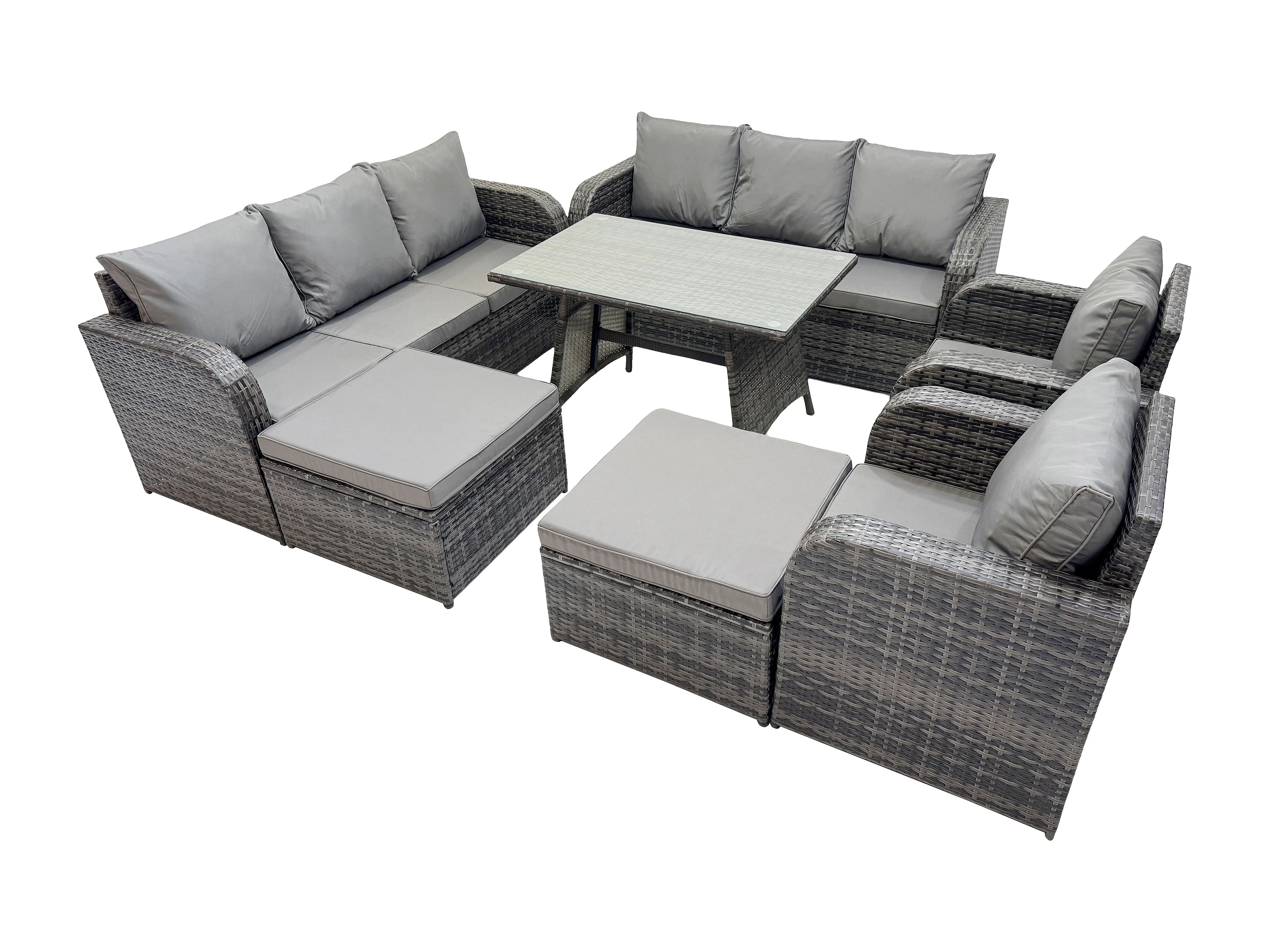 Rattan Gartenmöbel Set 10-Sitzer Rechteckiger Tisch 2 hohen Hockern Dunkelgrau Gemischt