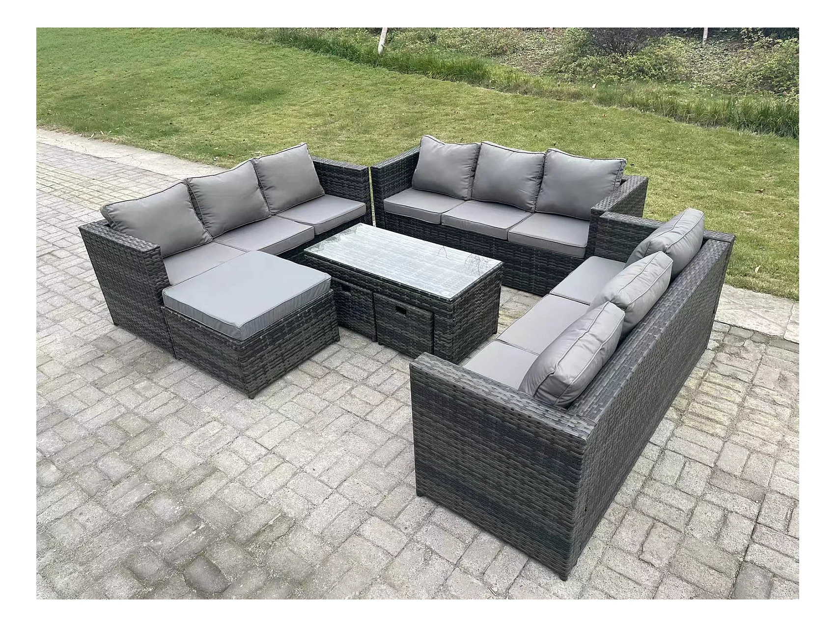 Rattan Gartenmöbel Set 12-Sitzer mit sofa Couchtisch 3 Hocker Dunkelgrau gemischt