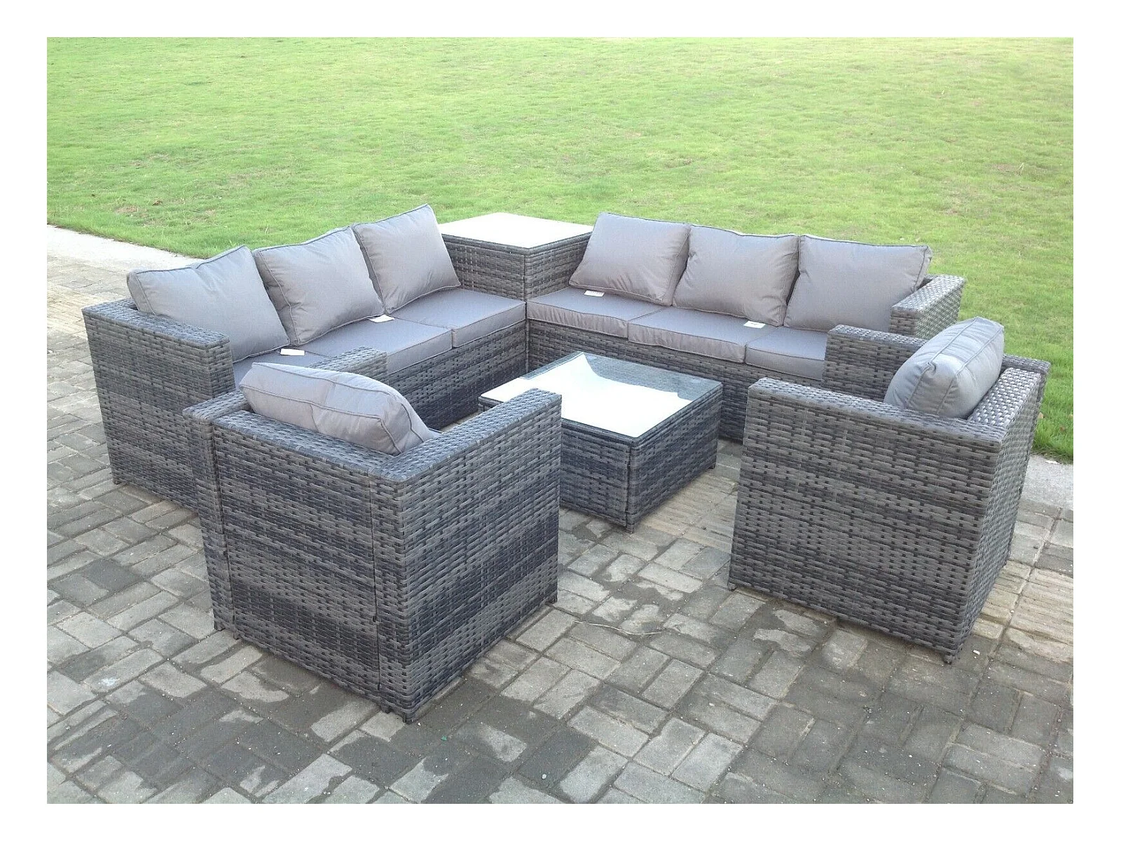 Rattan Gartenmöbel Set 8-Sitzer mit Ecksofa Couchtisch Beistelltisch 2 Sessel Dunkelgrau gemischt