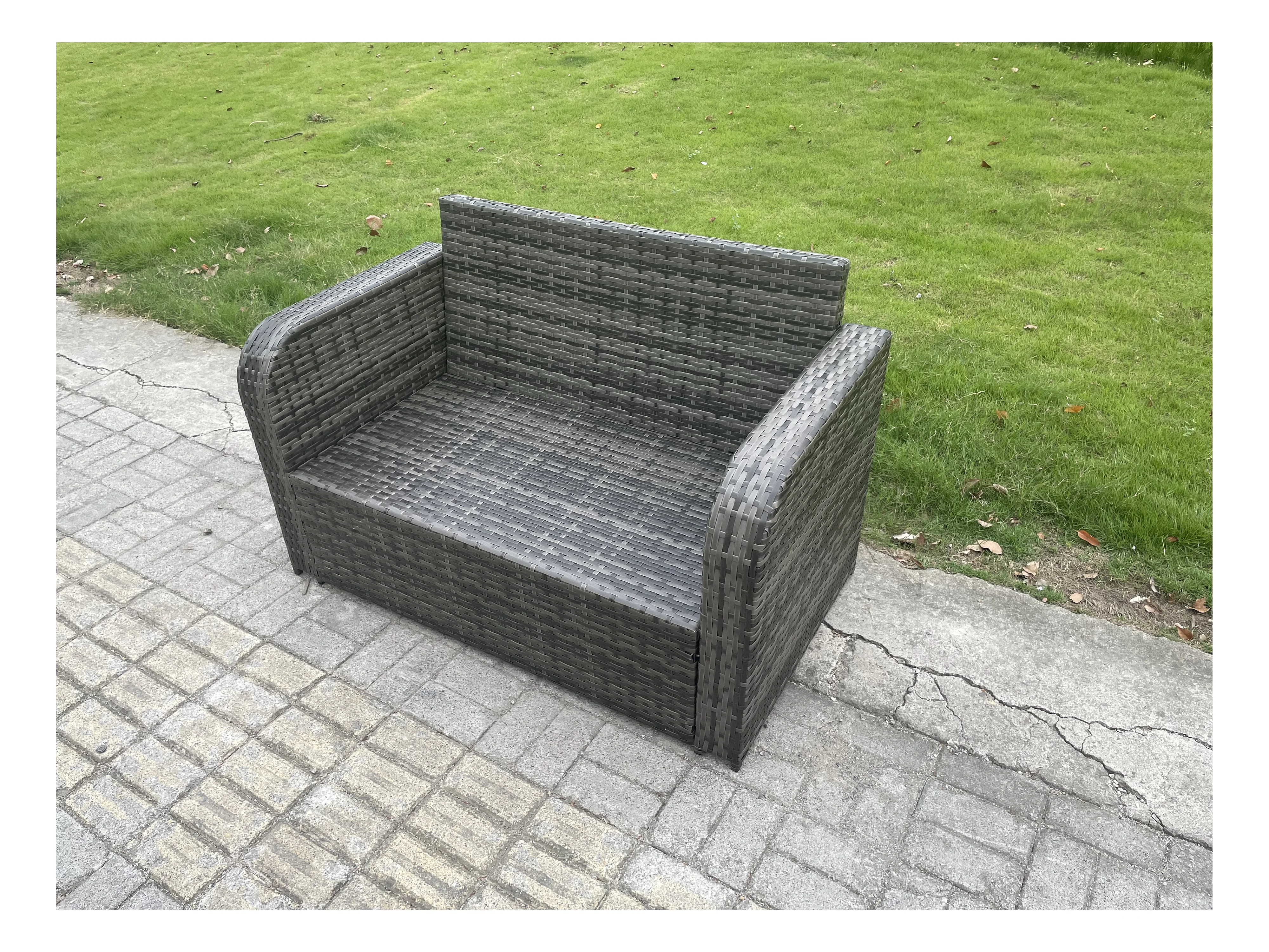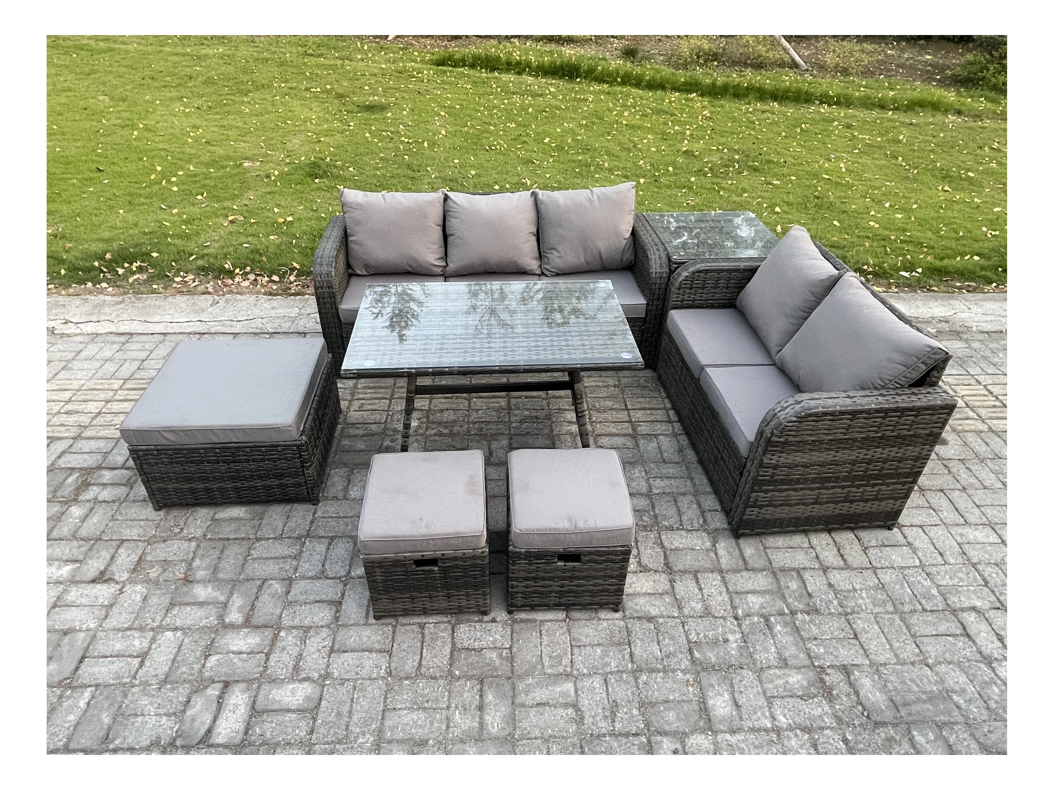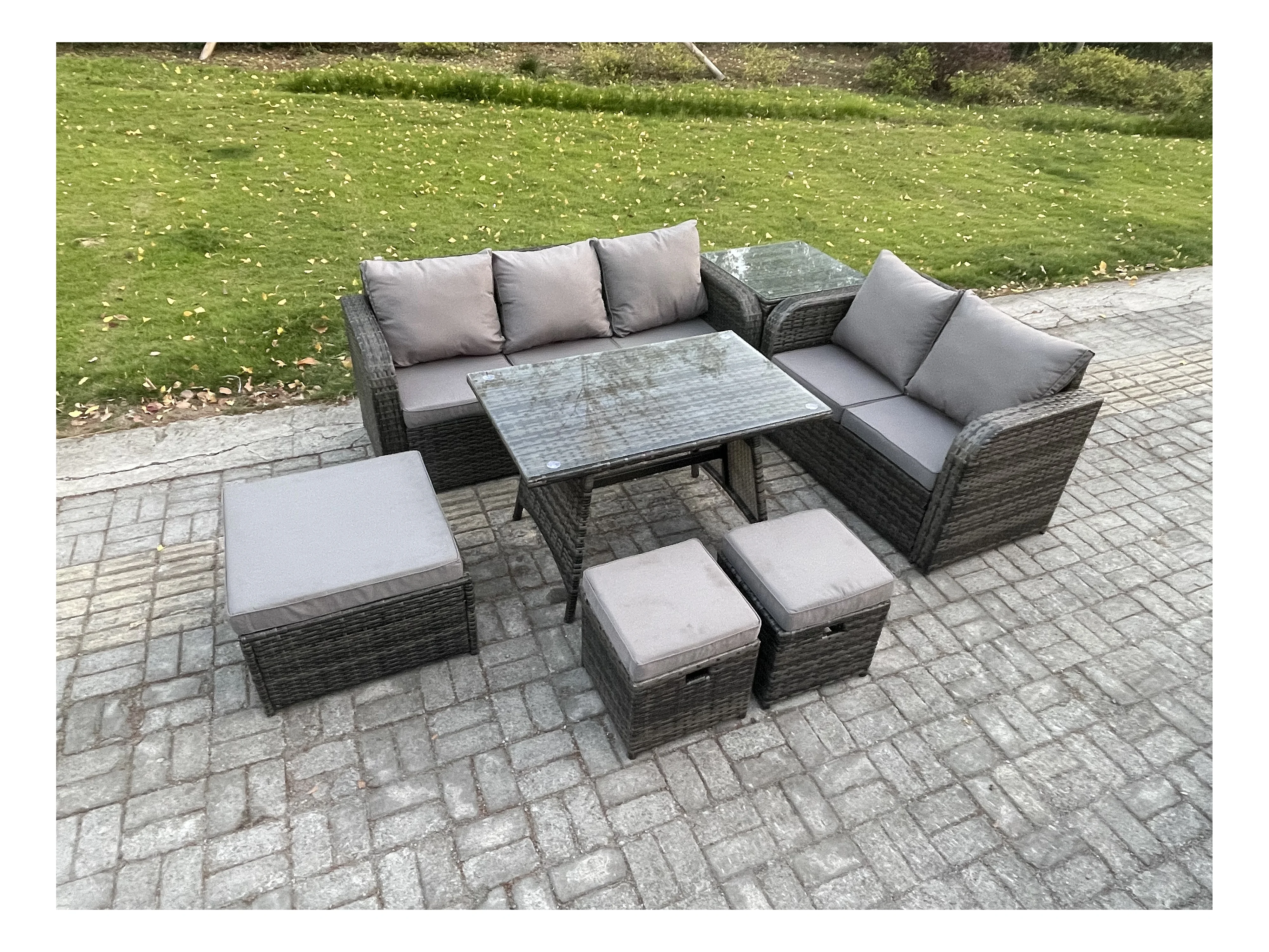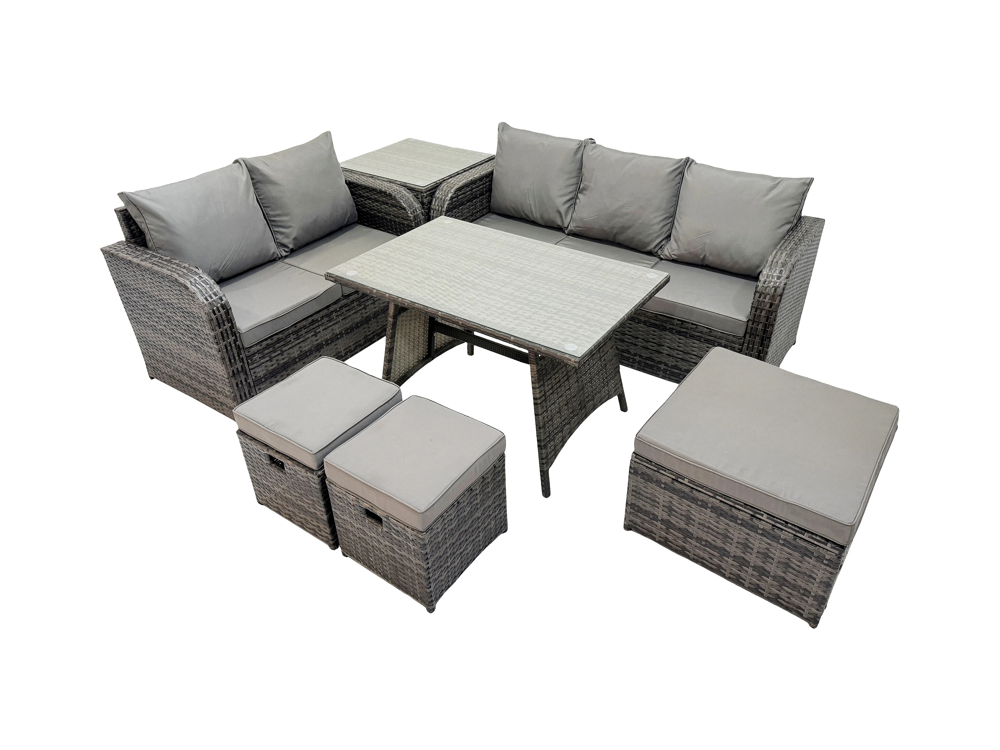 Rattan Gartenmöbel Set 8-Sitzer Rechteckiger Tisch 3 Hockern Love Sofa Beistelltisch Dunkelgrau Gemischt