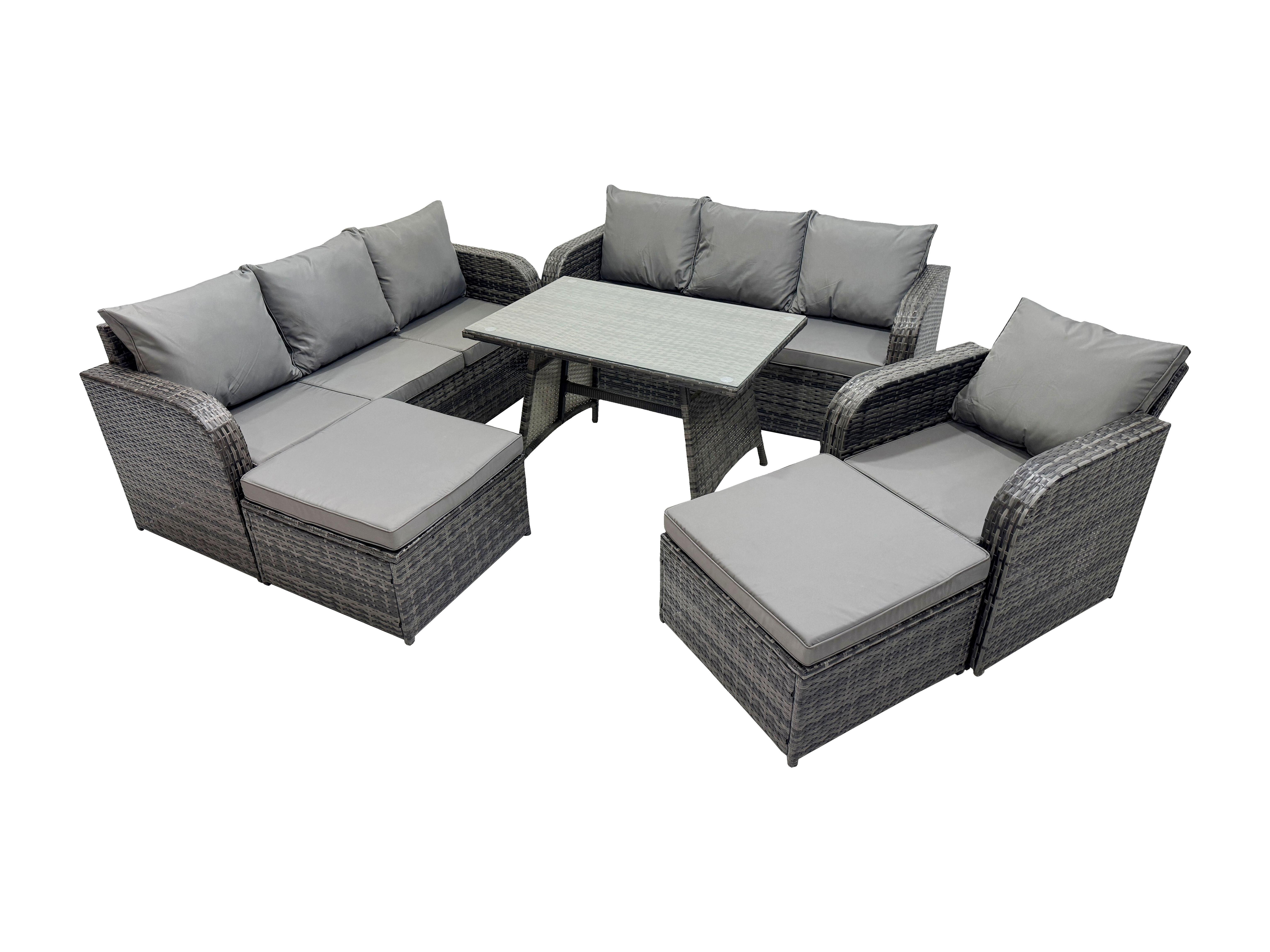 Rattan Gartenmöbel Set 9-Sitzer Rechteckiger Tisch 2 hohen Hockern Dunkelgrau Gemischt