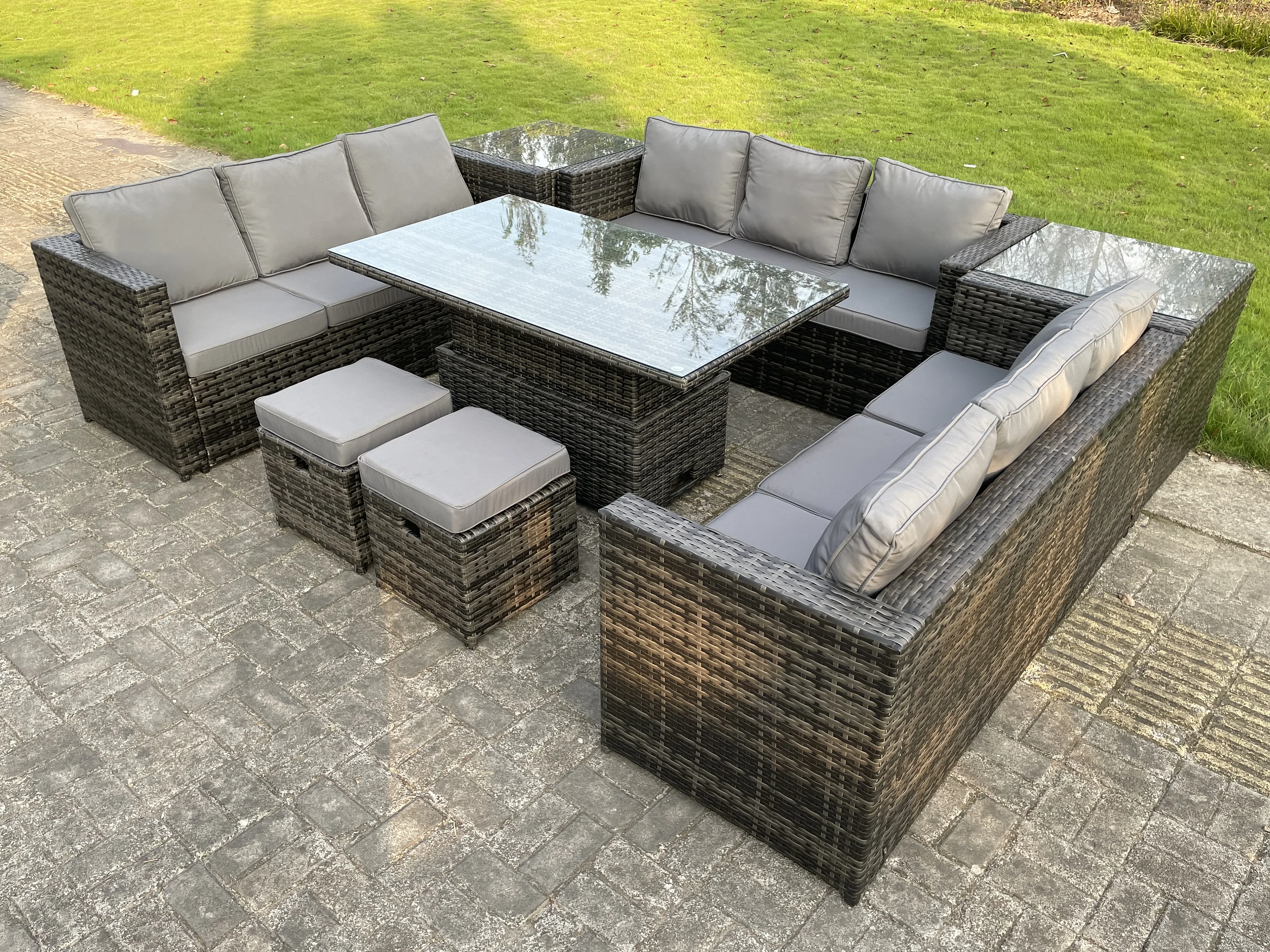 Rattan-Gartenmöbel-Set für den Außenbereich mit Sofa Einstellbare Höhe Esstisch 2 Hocker