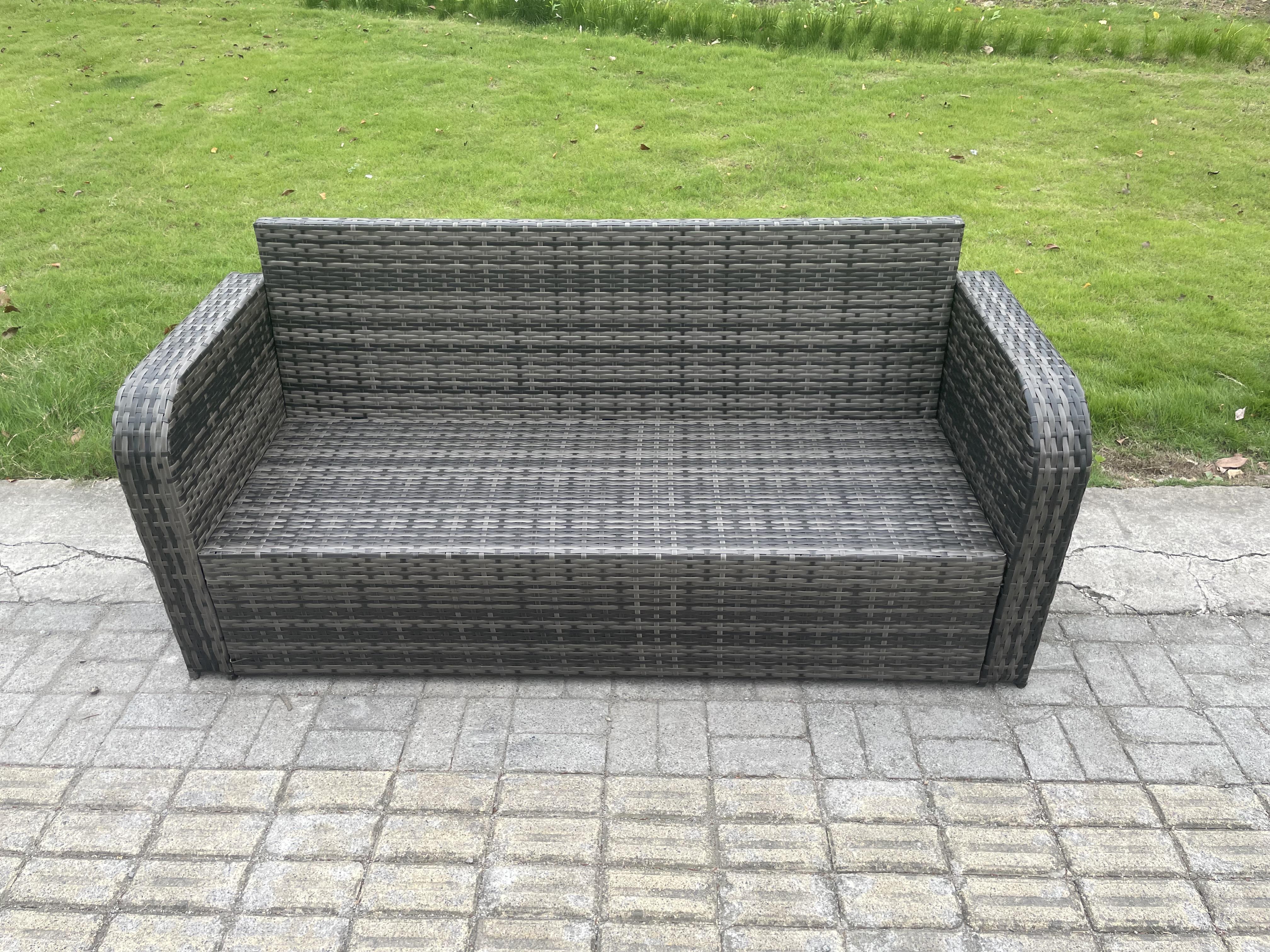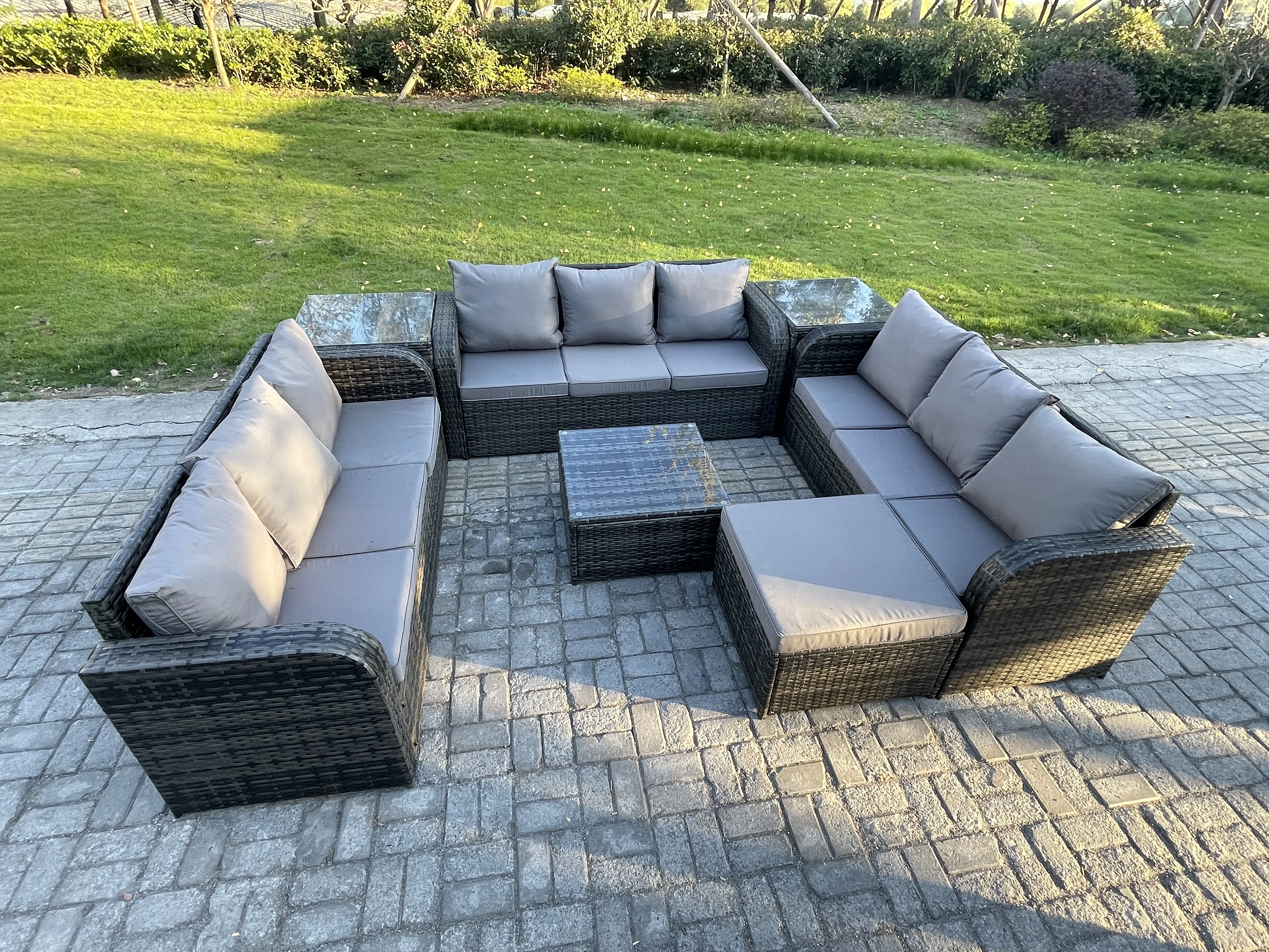 Rattan Gartenmöbel Set im Balkon Set Patio Garten Sofa Set mit Quadratischer Couchtisch 2 Großer Hockern 2 Beistelltischen Dunkelgrau Gemischt