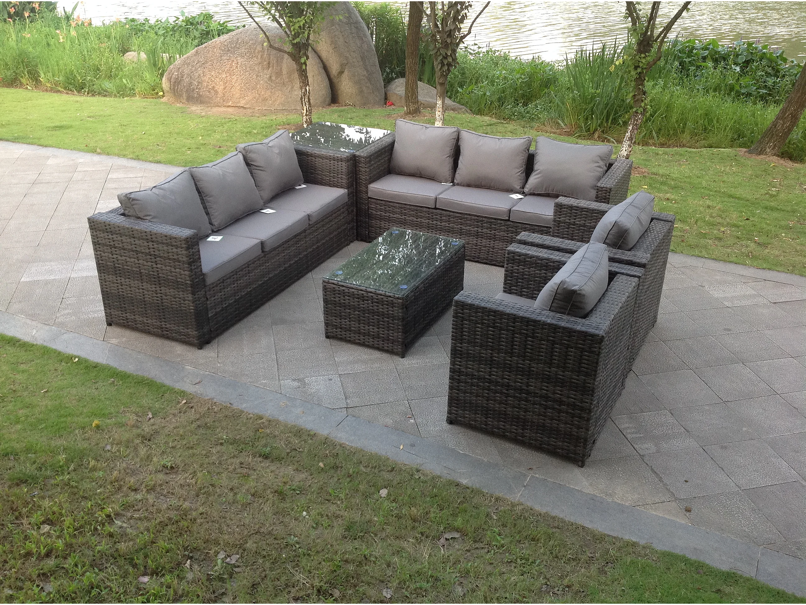 Rattan Gartenmöbel Set mit Beistelltisch 2 Sessel 3-Sitzer Sofa Quadratisch Couchtisch