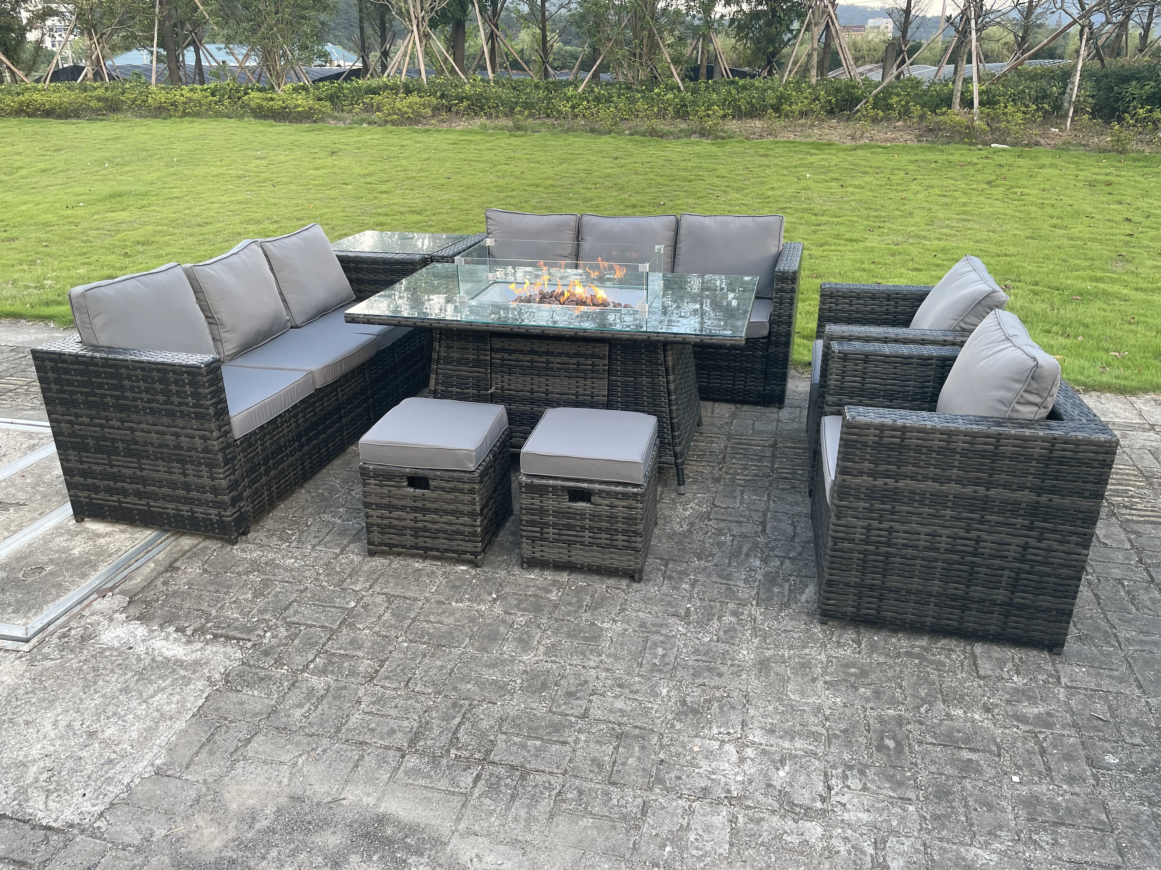 Rattan Gartenmöbel Set mit Sofa 2 Sessel Gas Feuertisch Beistelltisch 2 Hocker