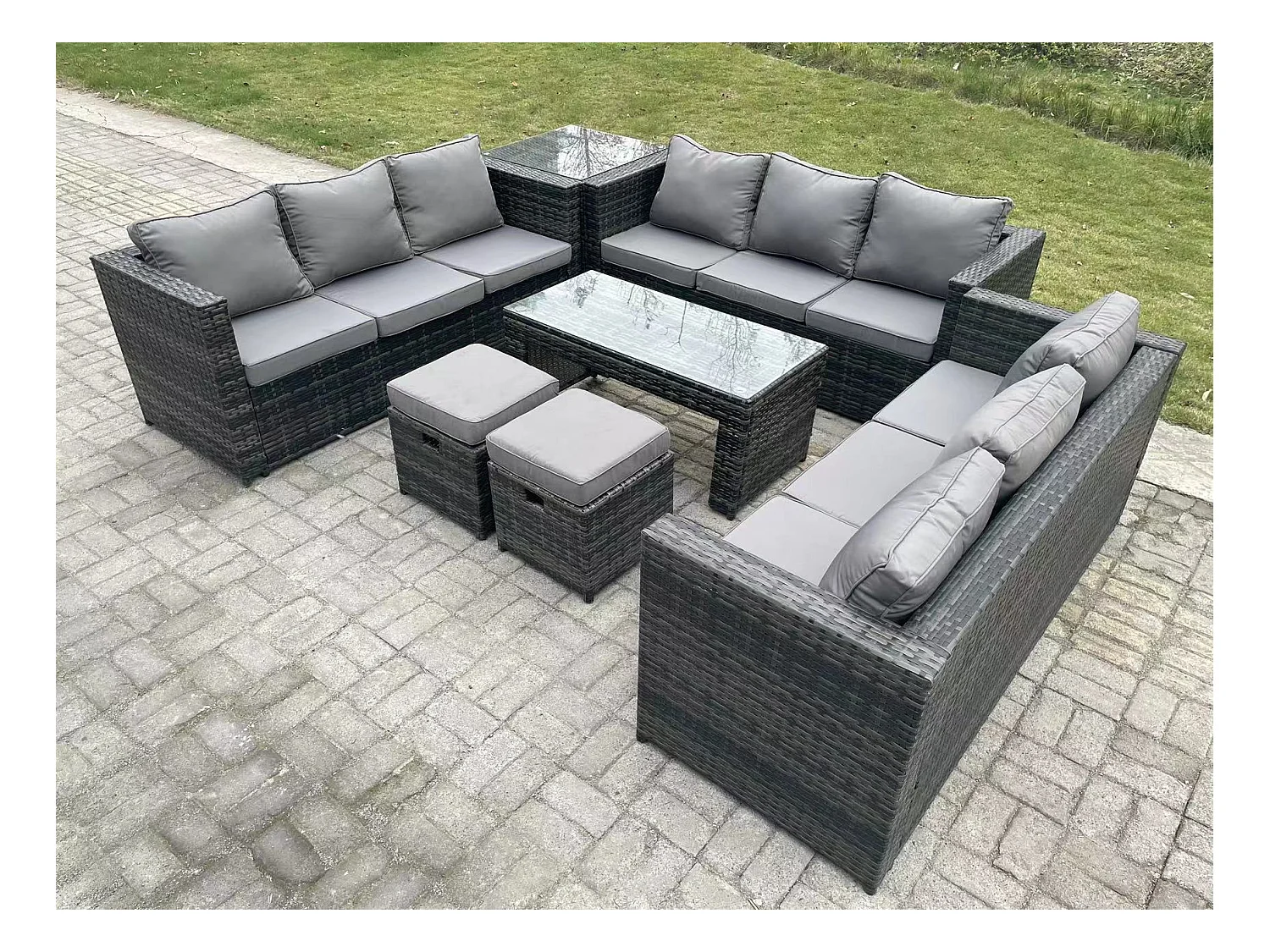 Rattan Gartenmöbel Set mit sofa Couchtisch Beistelltisch 2 Hocker Dunkelgrau gemischt