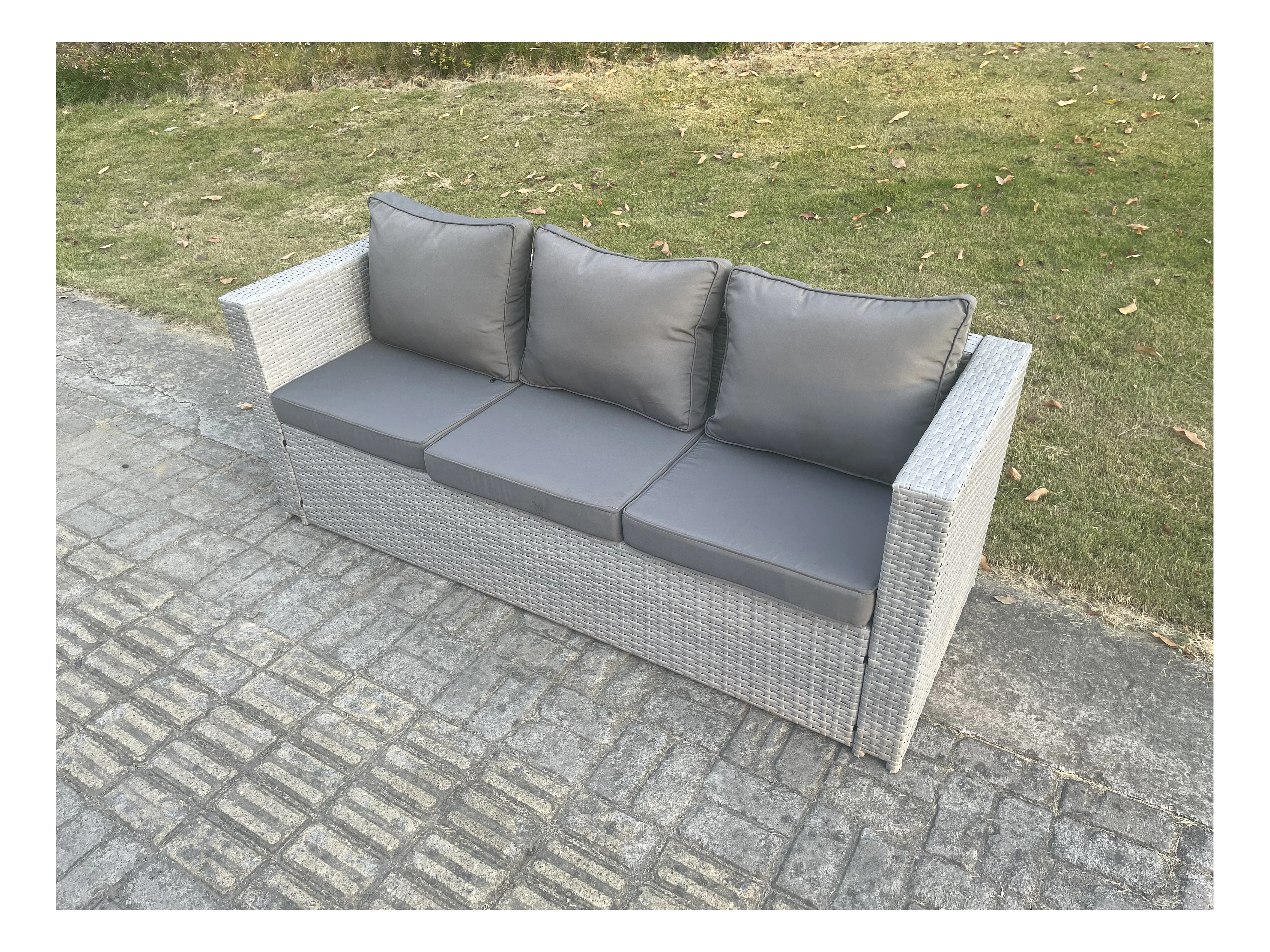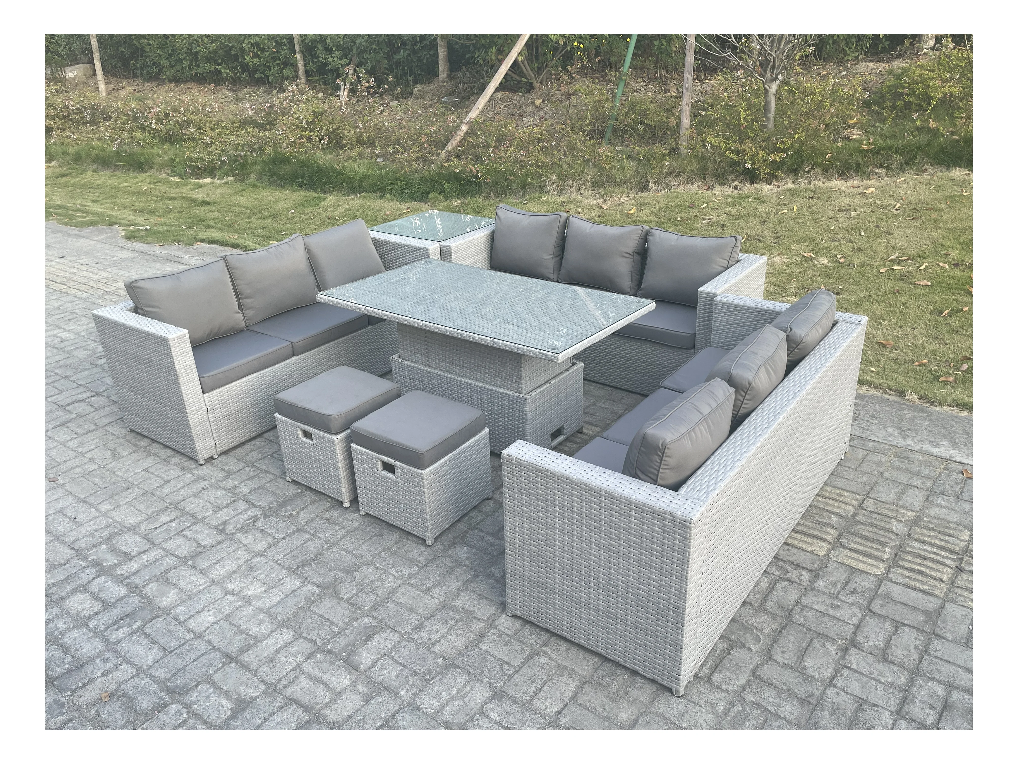 Rattan Gartenmöbel Set mit Sofa, Höhe verstellbar Esstisch und 2 Hocker,Beistelltisch,Outdoor Terrassen Essgruppe 7-teilige Sitzgruppe Helles Grau