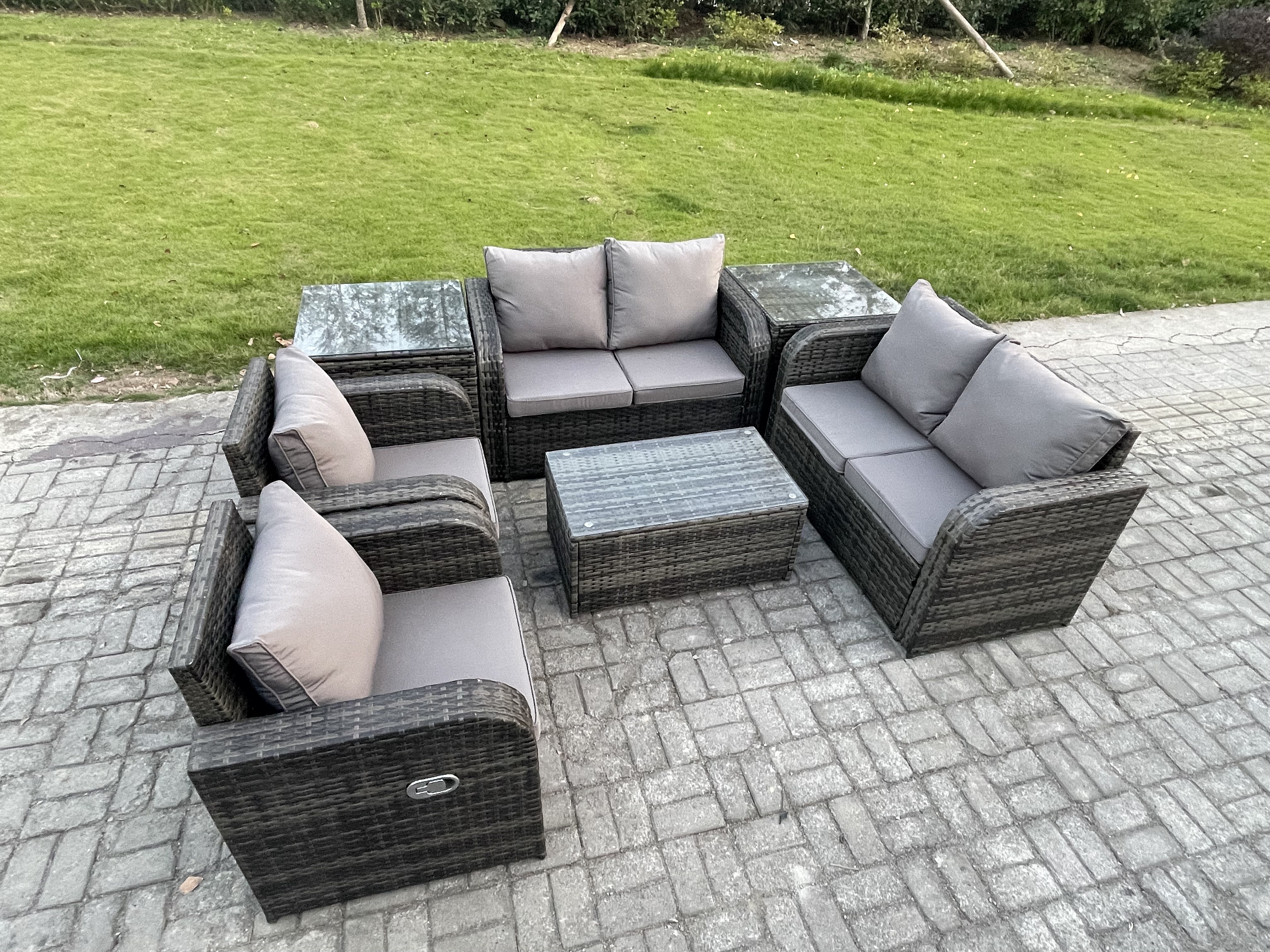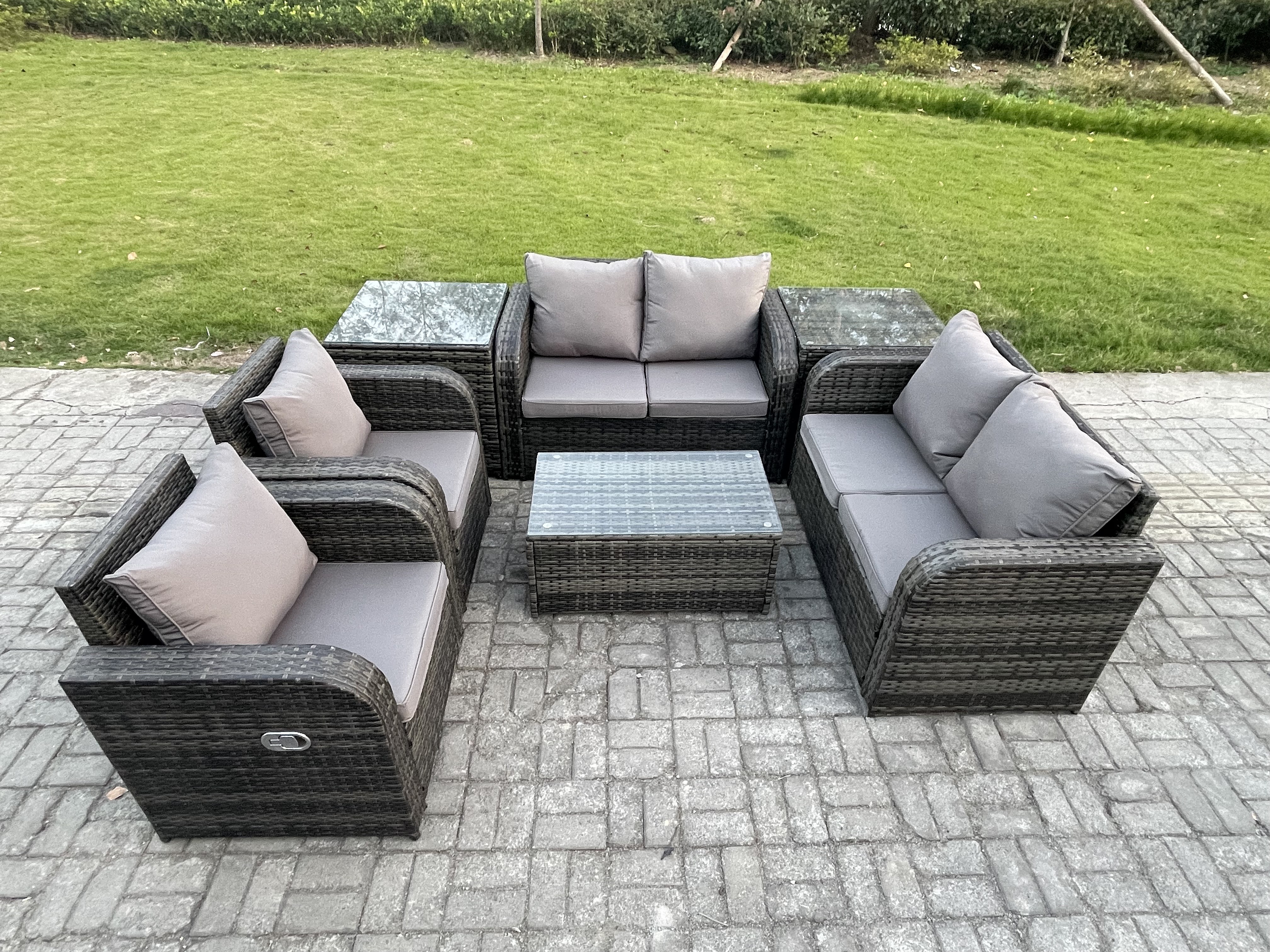 Rattan Gartenmöbel Set mit Tish Sofa 6-Sitzer Dunkelgrau