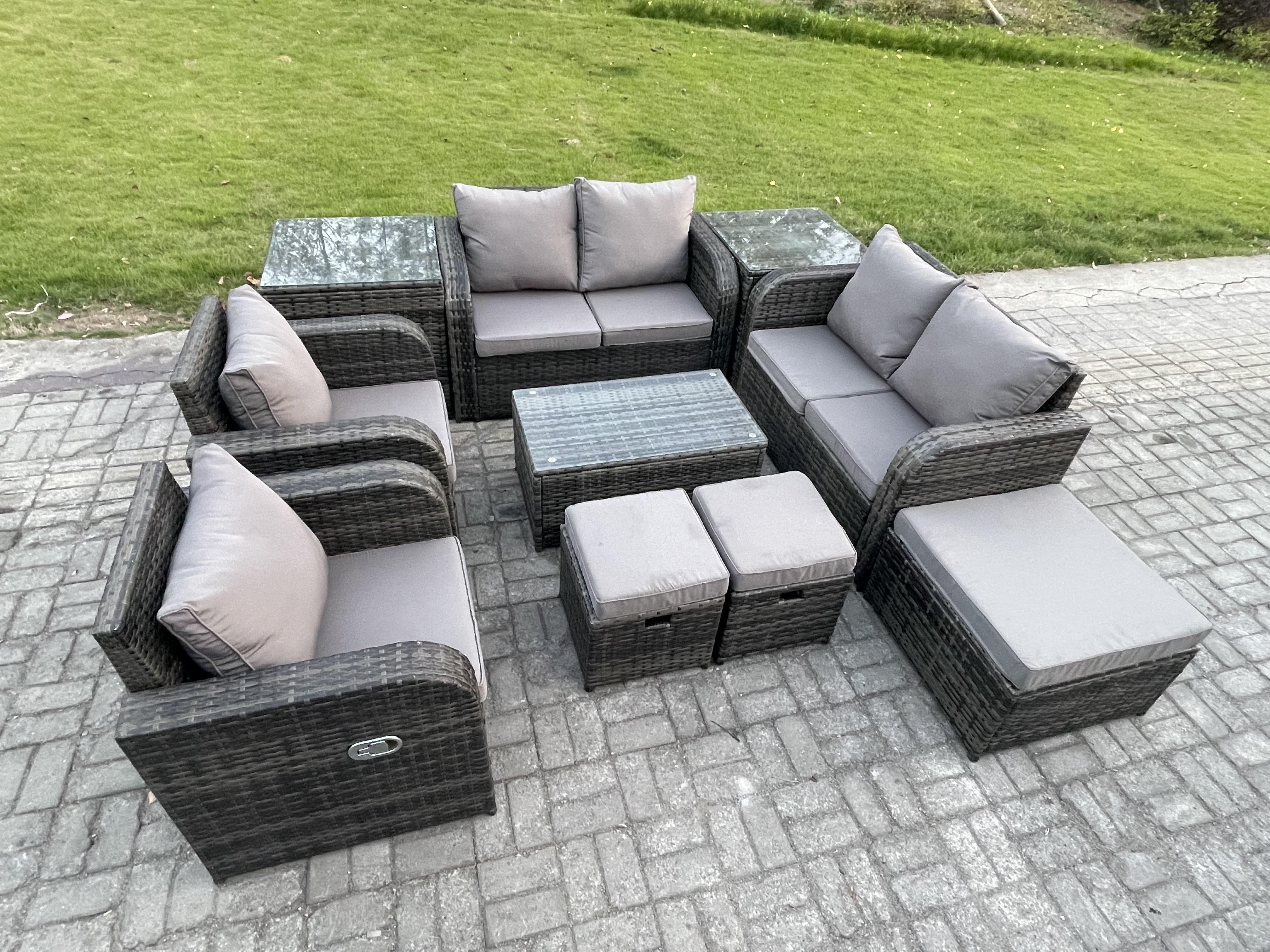 Rattan Gartenmöbel Set mit Tish Sofa 9-Sitzer Dunkelgrau