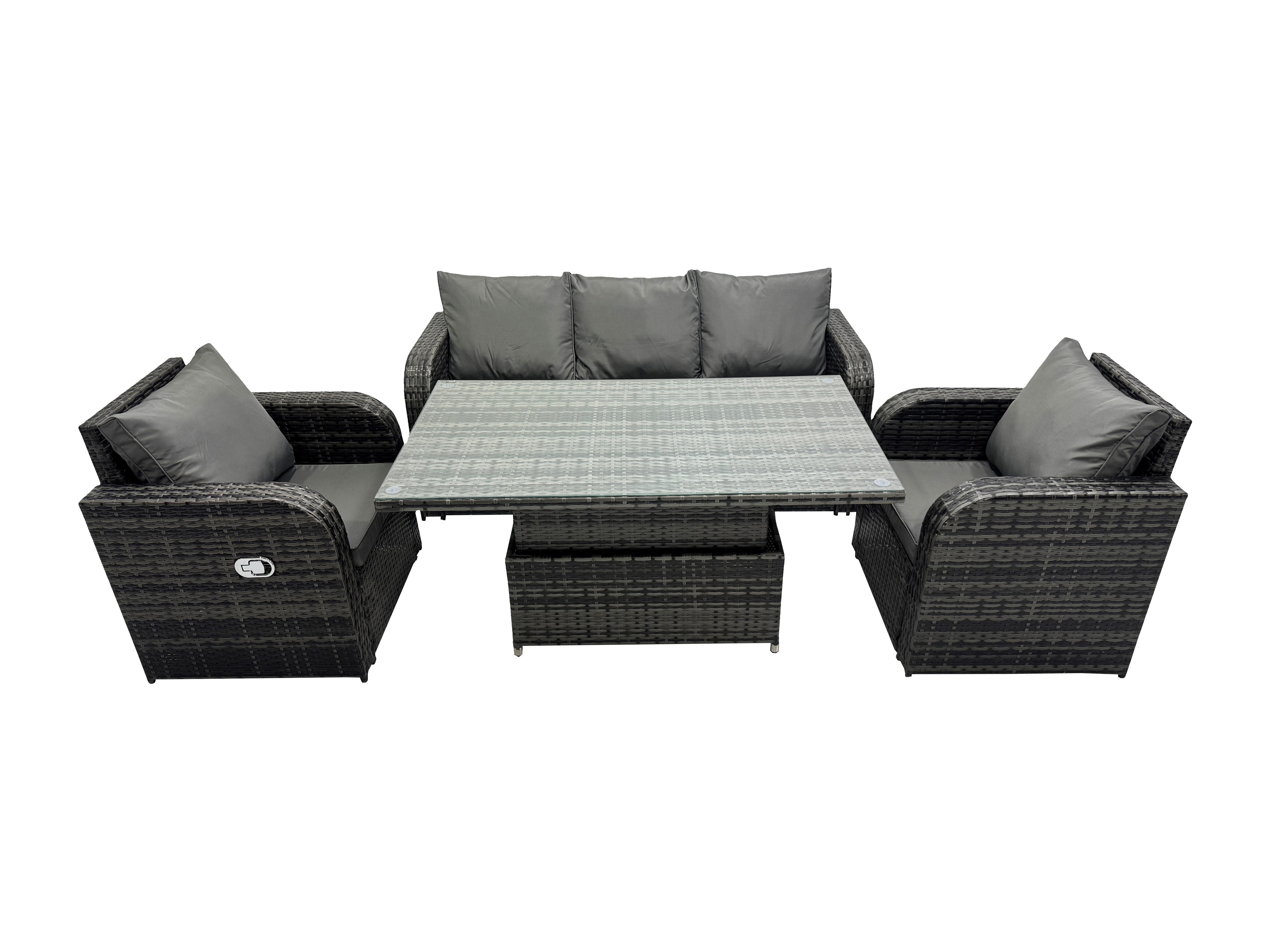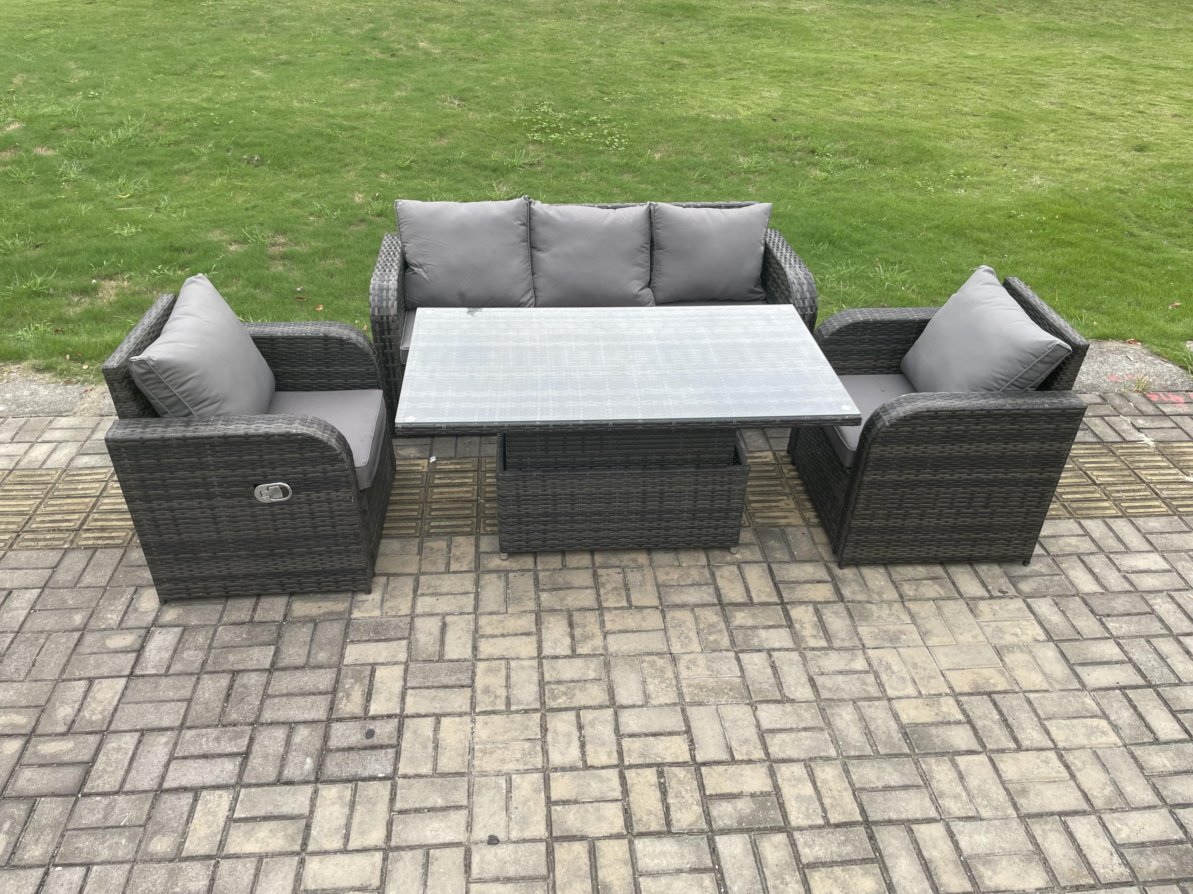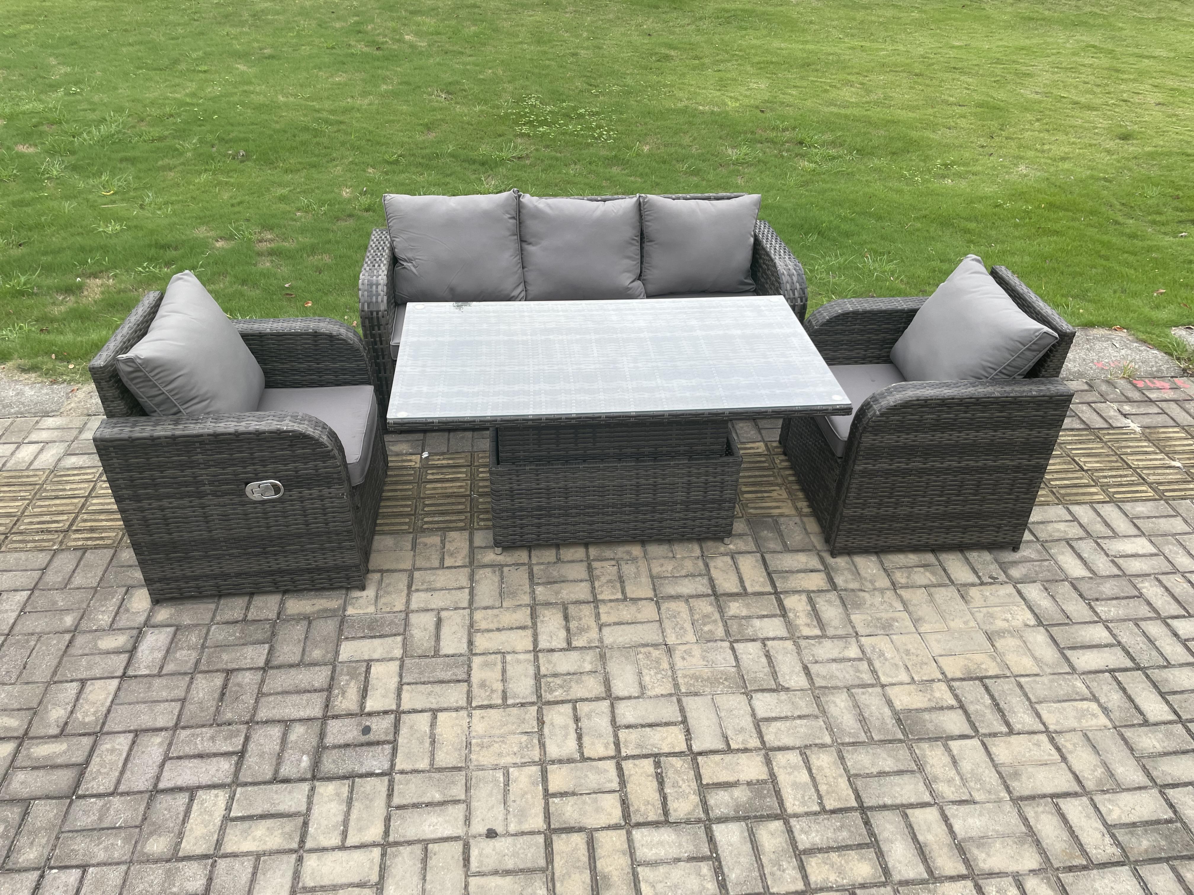Rattan Gartenmöbel-Sets höhenverstellbarer Tisch Sofa Set mit Liegestühle Dunkelgrau Gemischt
