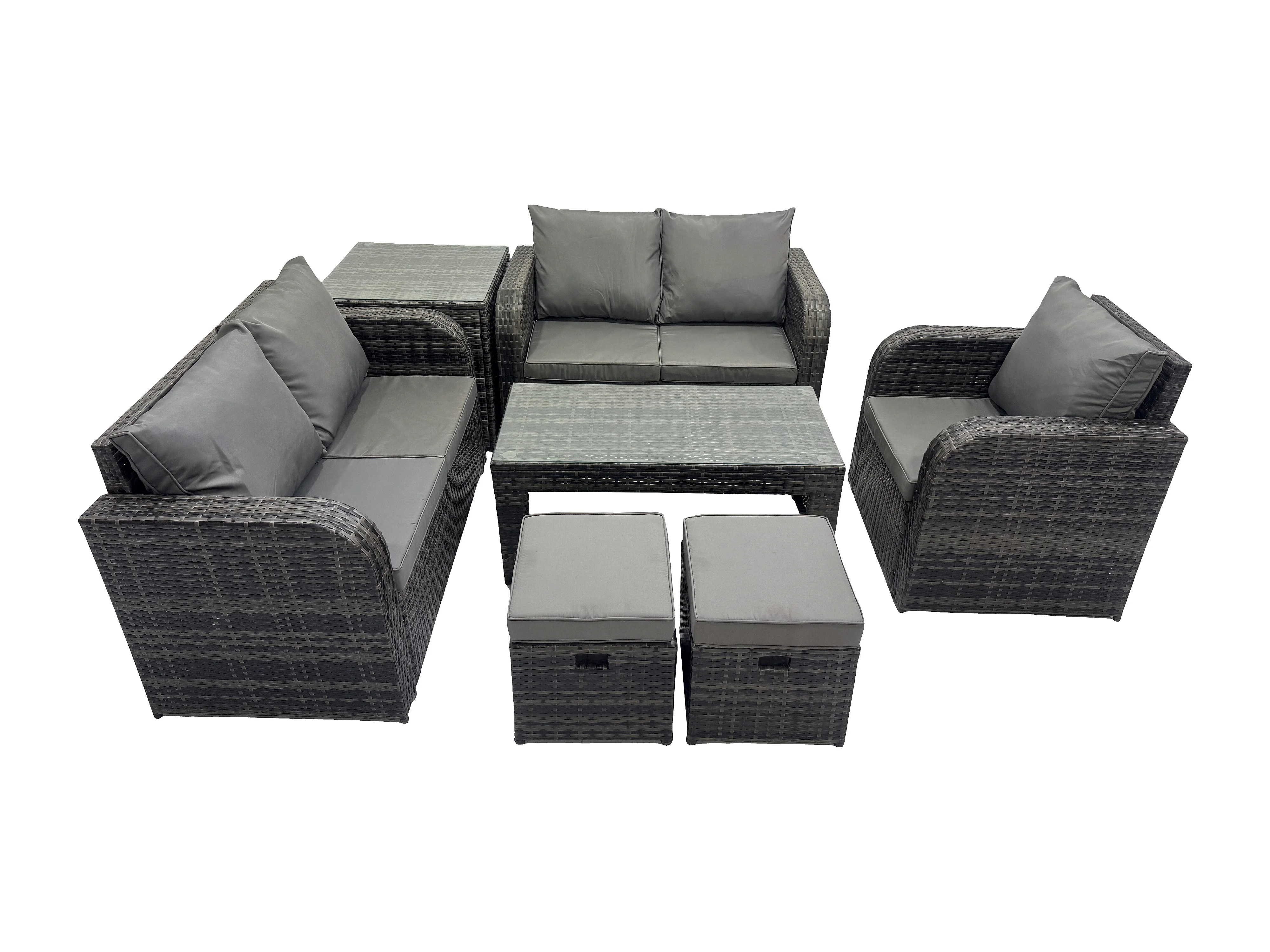Rattan Gartenmöbel Sofa Set Tisch & Stühle Set mit 2 kleine Fußhockern Beistelltisch Dunkelgrau Gemischt