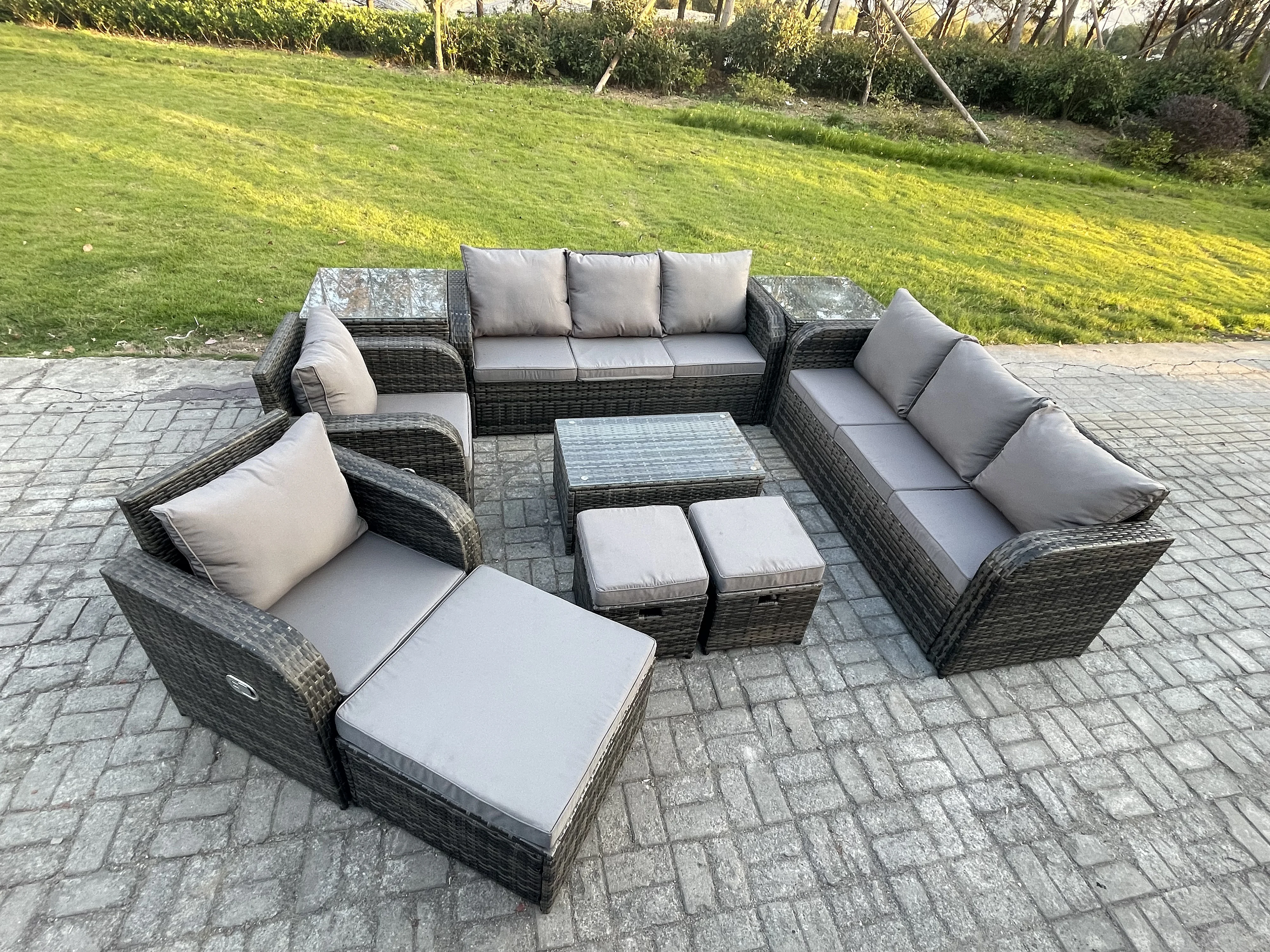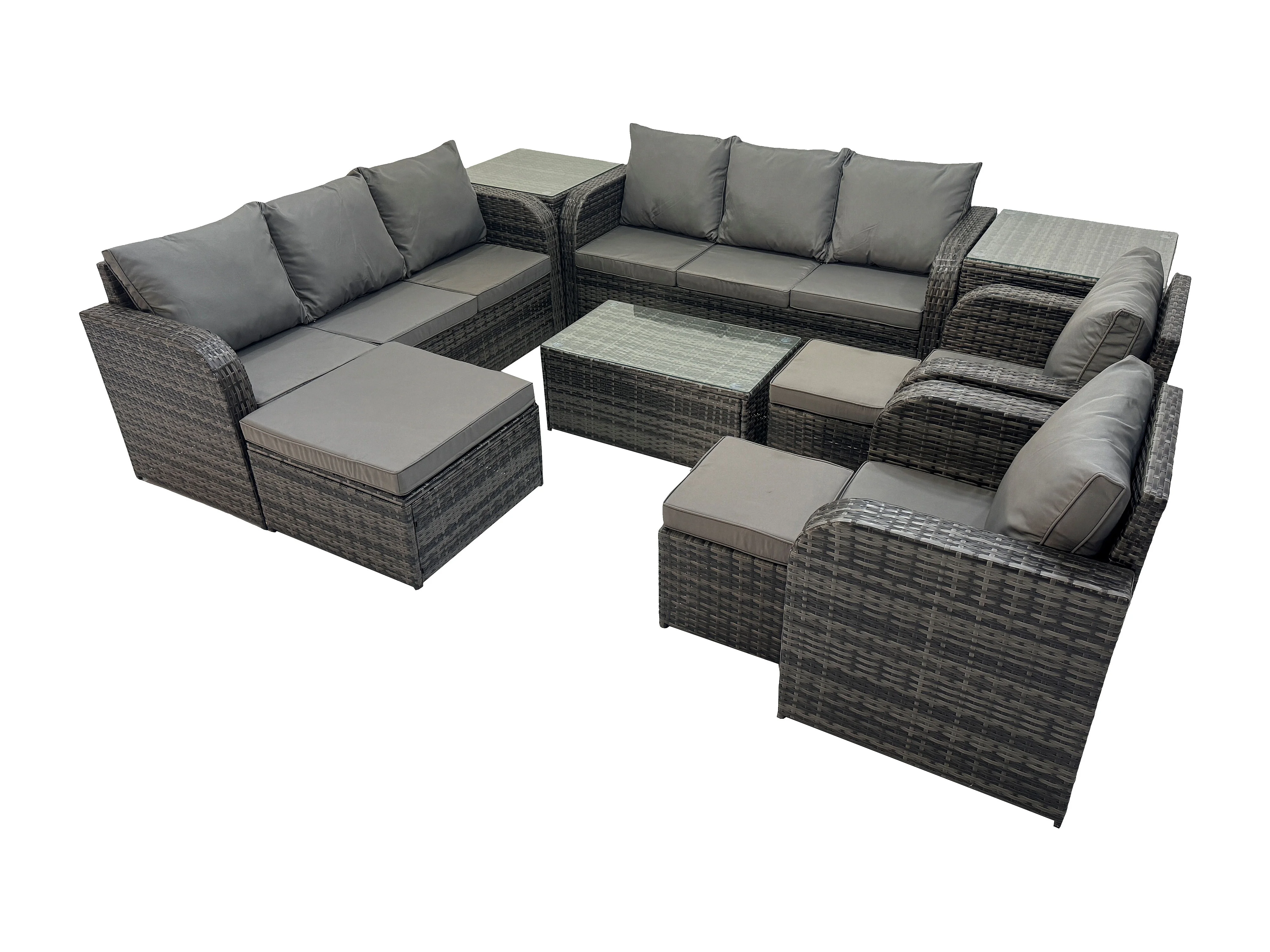 Rattan Gartenmöbel Sofa Set Tisch & Stühle Set mit 3-Sitzer Sofa Liegestühle 3 Hockern 3-Sitzer Sofa 2 Beistelltischen Dunkelgrau Gemischt