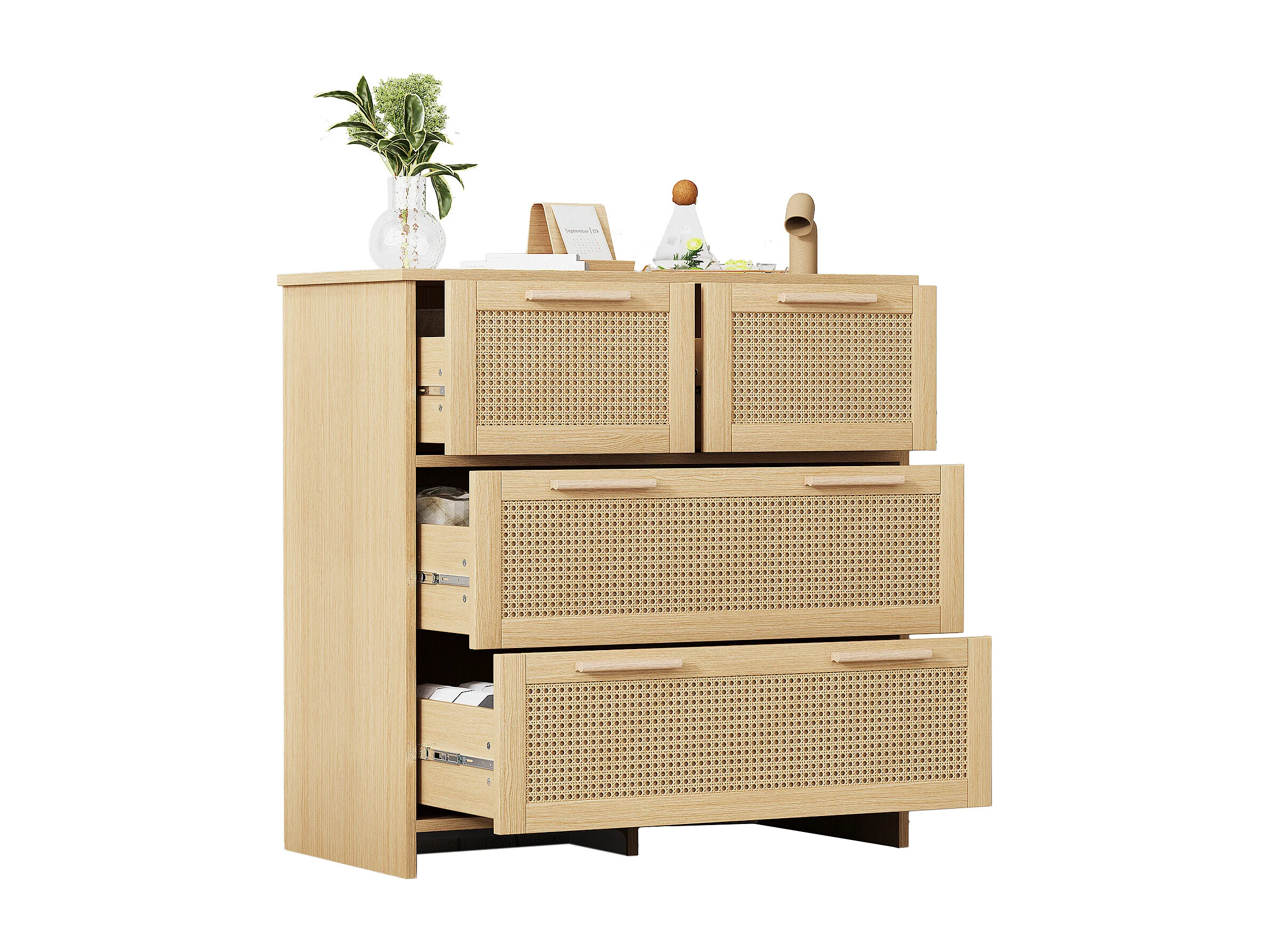 Rattan-Kommode mit 4 Schubladen und Massivholzgriffen