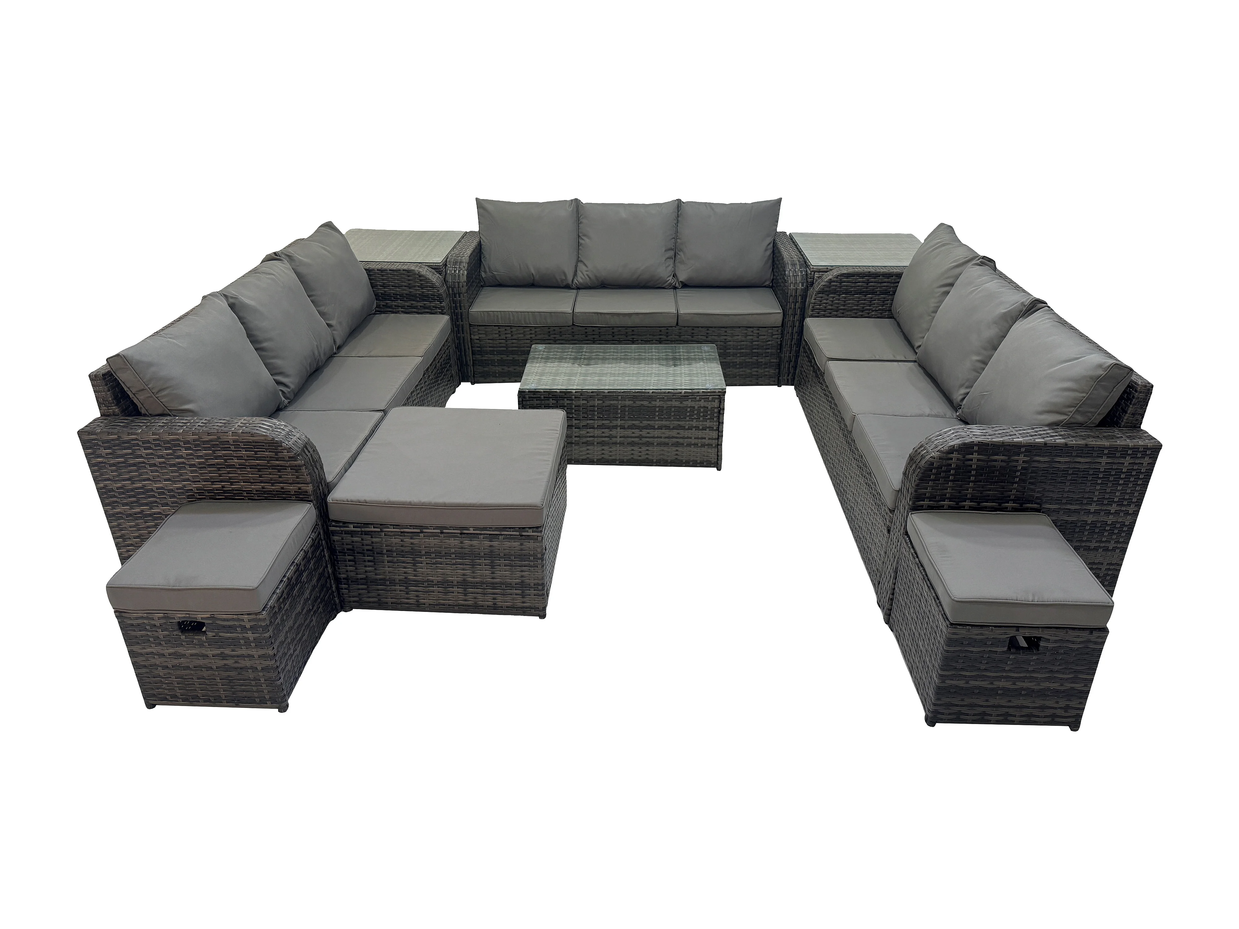 Rattan Lounge Sofa Set 12-Sitzer Gartenmöbel-Set mit Rechteckiger Couchtisch 3-Sitzer Sofa 2 Beistelltischen 3 Hockern Dunkelgrau Gemischt