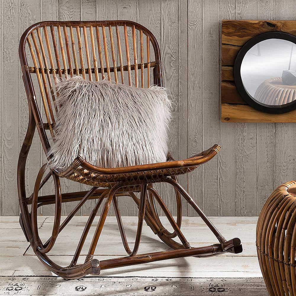 Rattan Schaukelstuhl in Naturfarben Landhaus