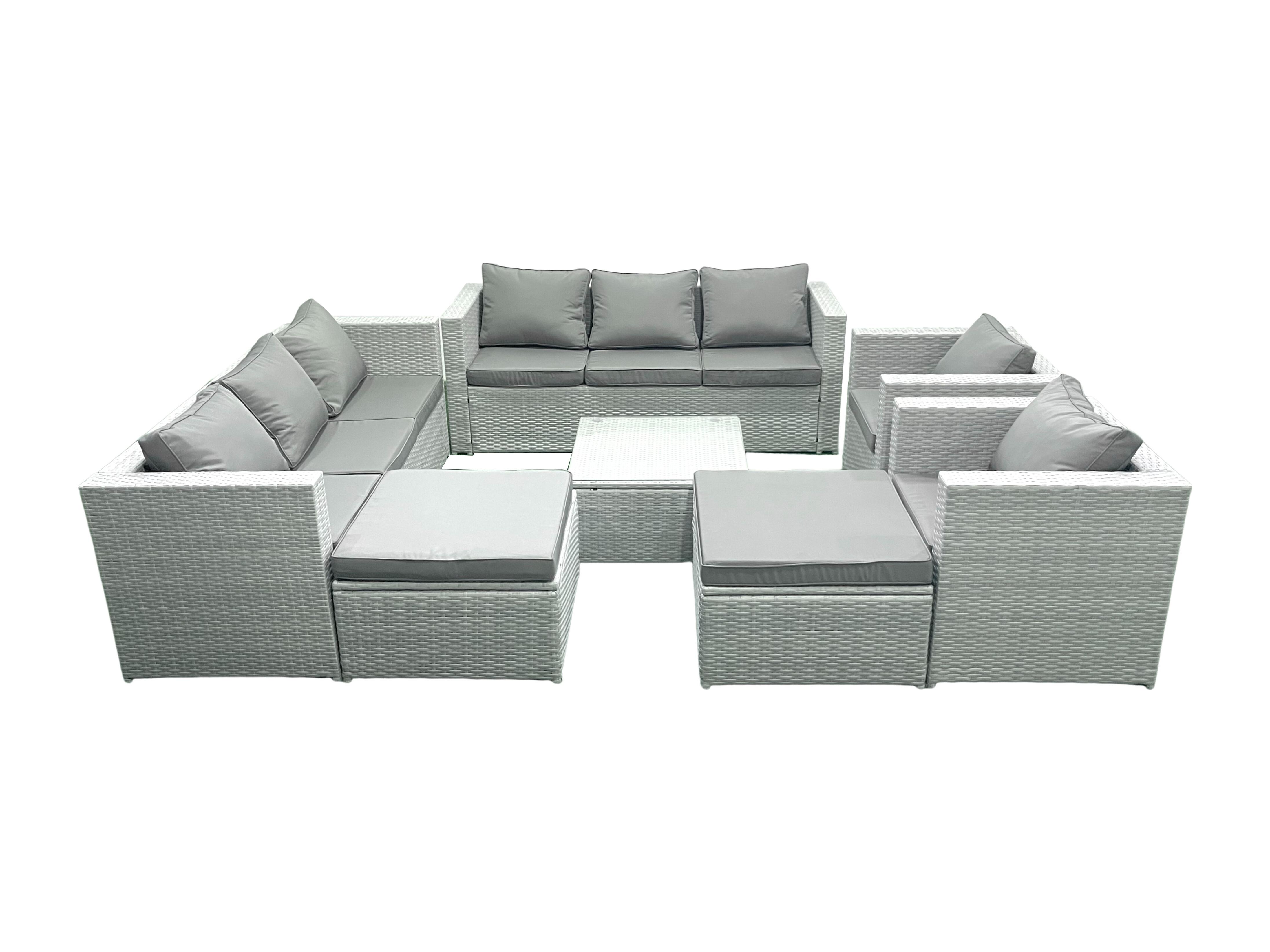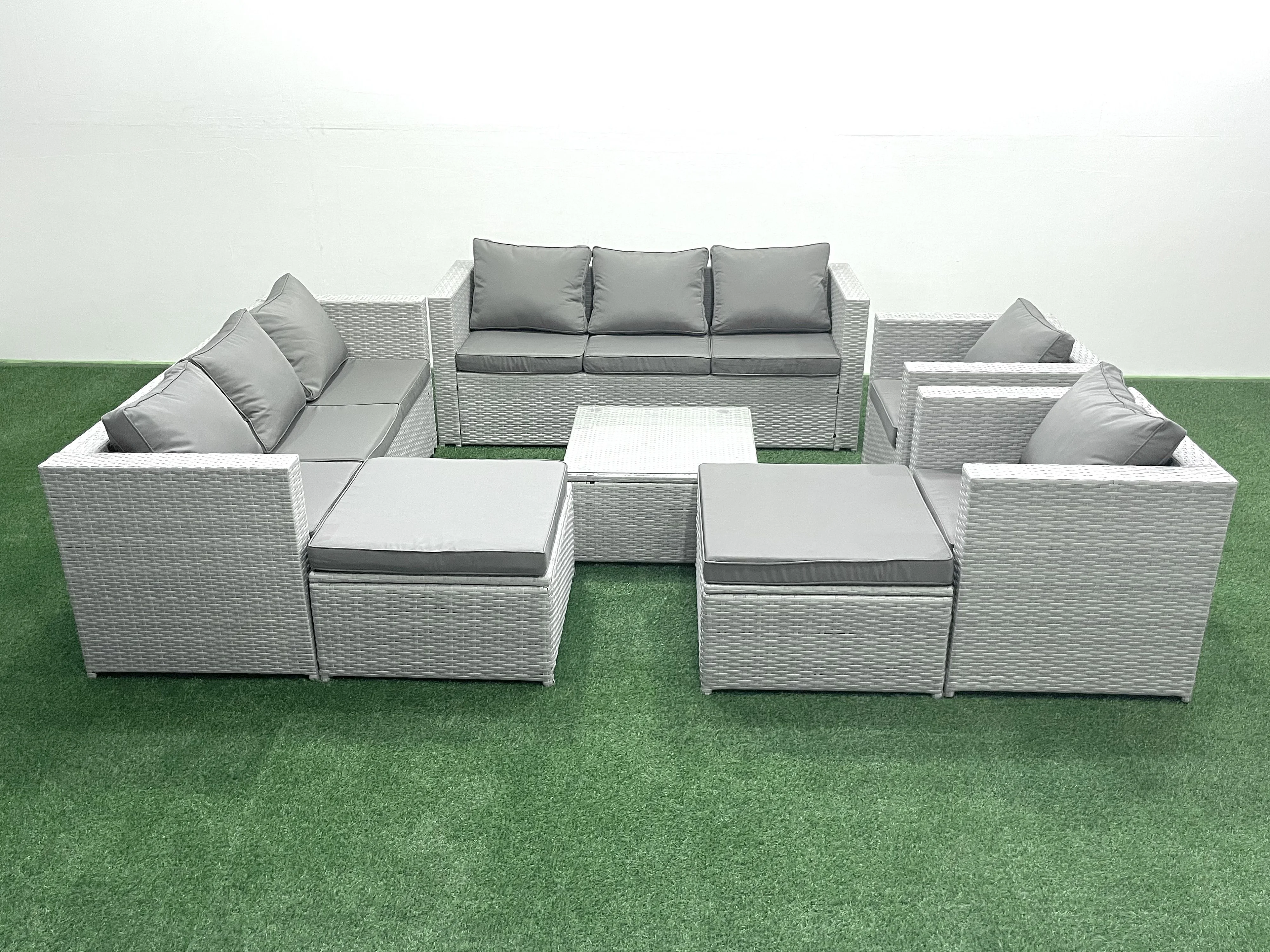 Rattan Sofa Gartenmöbel Set mit 2 Sesseln Quadratischer Couchtisch 2 hohen Hockern Hellgrau gemischt