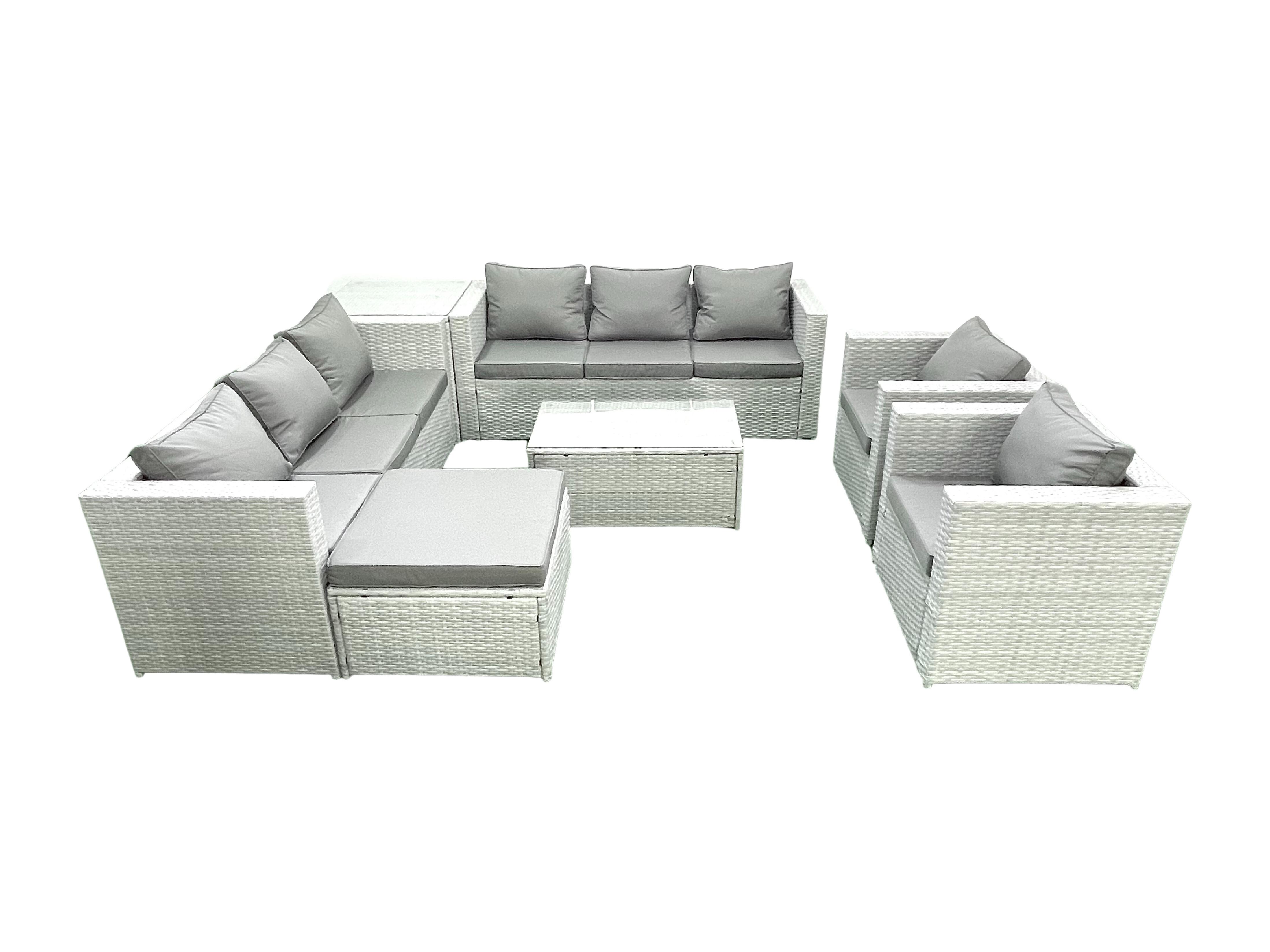 Rattan Sofa Gartenmöbel Set mit 2 Sesseln Rechteckiger Couchtisch 2 Großer Hockern Beistelltisch Hellgrau gemischt
