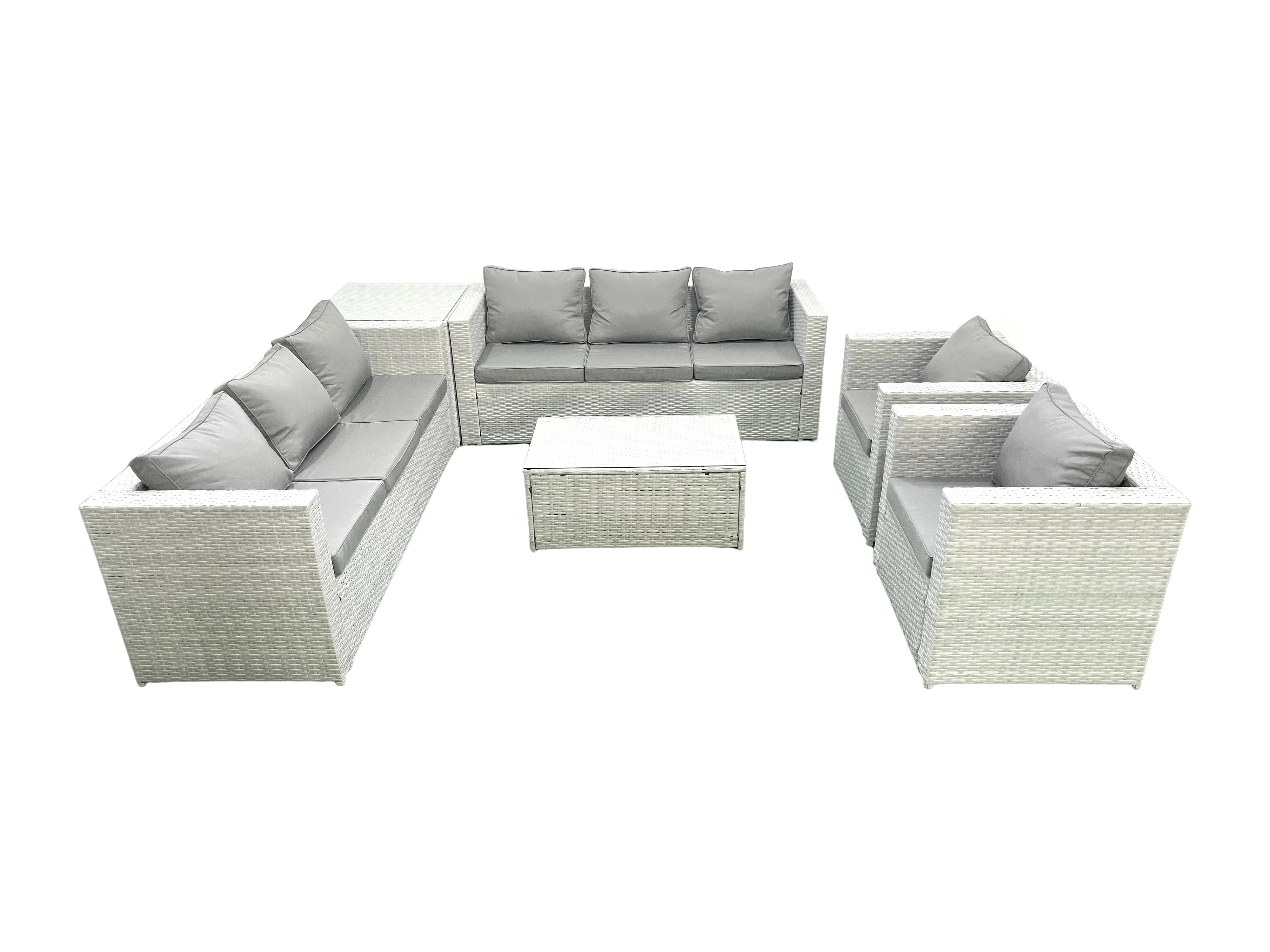 Rattan Sofa Gartenmöbel Set mit 2 Sesseln Rechteckiger Couchtisch Beistelltisch Hellgrau gemischt