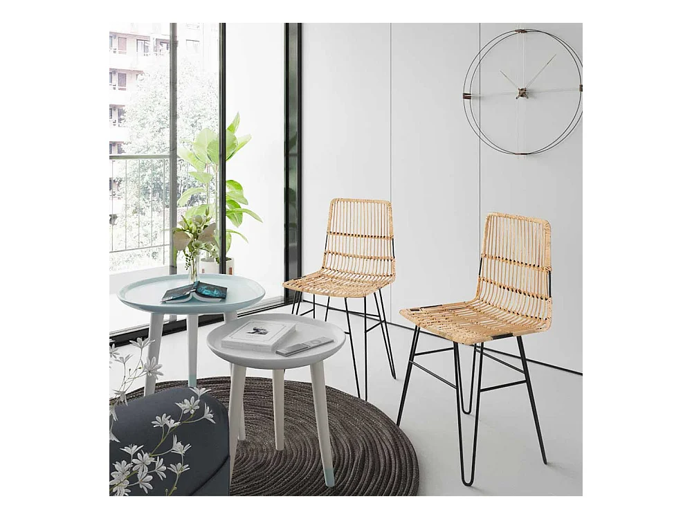 Rattan Stühle in Beige Metallgestell (2er Set)