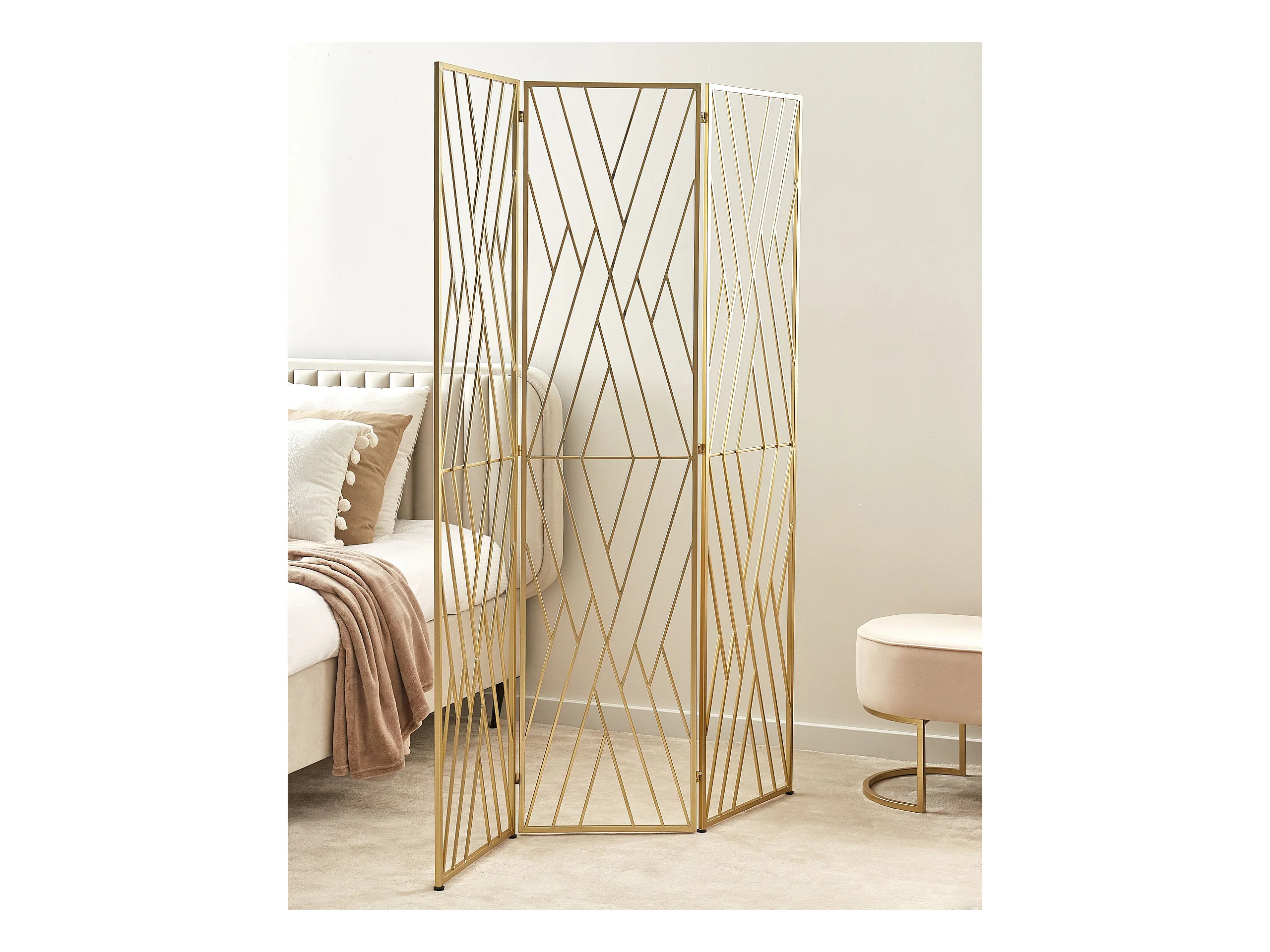 Deko Raumteiler 3-teilig 117x170 cm aus Metall gold faltbar freistehend Asolo