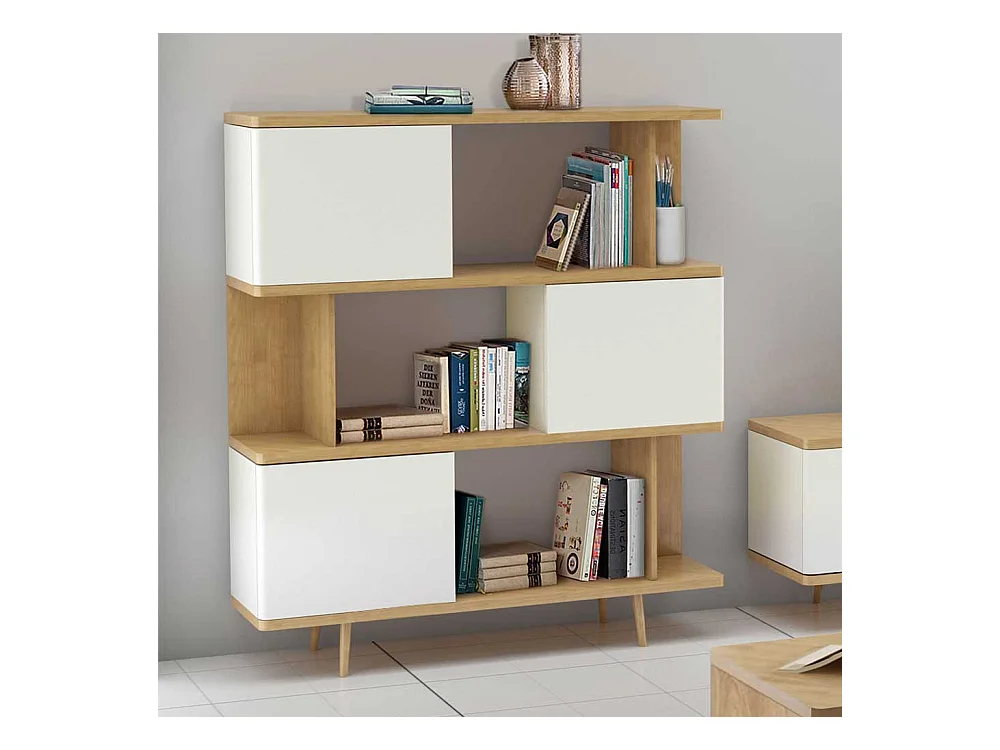 Raumteiler Regal in Weiß und Eichefarben Skandi Design