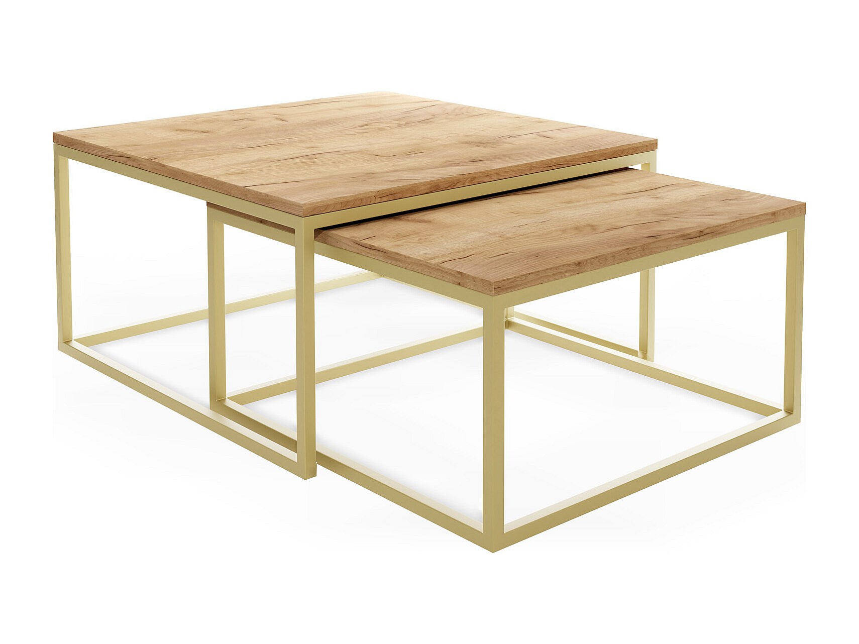 Rechteckige Quadratische Satztische Couchtische mit Gold Gestell - Loft Style Couchtische Metallbeine - 2 in 1 - Zwei Getrennte Tische für Wohnzimmer - Craft Eiche