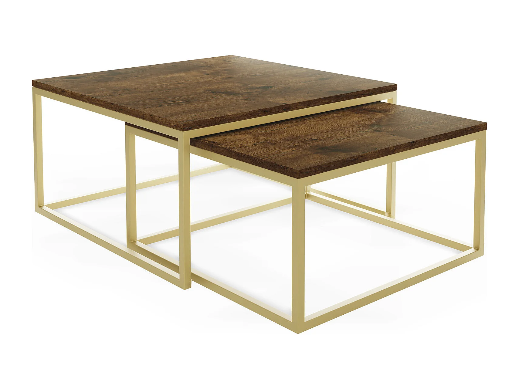 Rechteckige Quadratische Satztische Couchtische mit Gold Gestell - Loft Style Couchtische Metallbeine - 2 in 1 - Zwei Getrennte Tische für Wohnzimmer - Lefkas Eiche