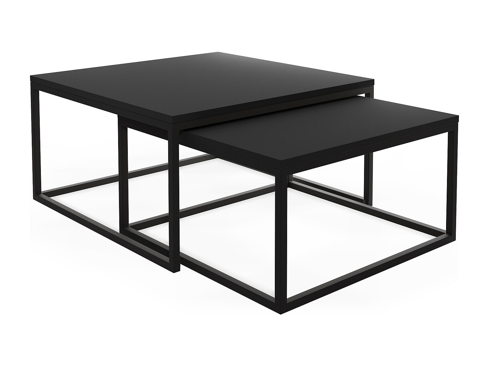 Rechteckige Quadratische Satztische Couchtische mit Schwarz Gestell - Loft Style Couchtische Metallbeine - 2 in 1 - Zwei Getrennte Tische für Wohnzimmer - Schwarz