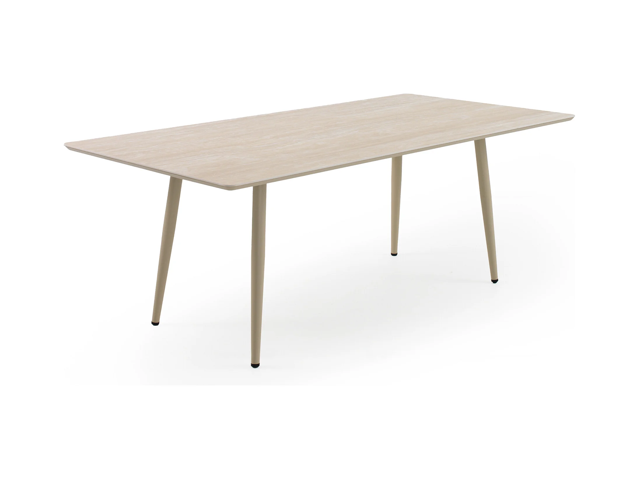 Rechteckiger Aluminiumtisch mit Keramikplatte aus Travertin