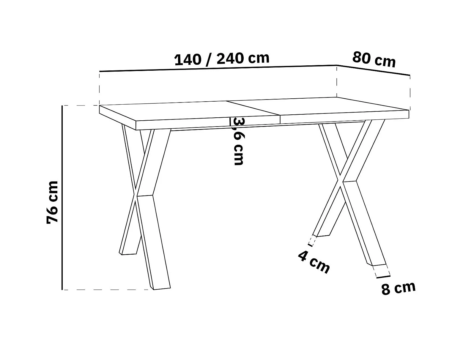 Rechteckiger Ausziehbarer Esstisch - Großer Modern-Stil Tisch mit schwarzen Metallbeinen 120 140 160 cm bis 220 240 260 cm - 140 x 80 cm - Sonoma Eiche