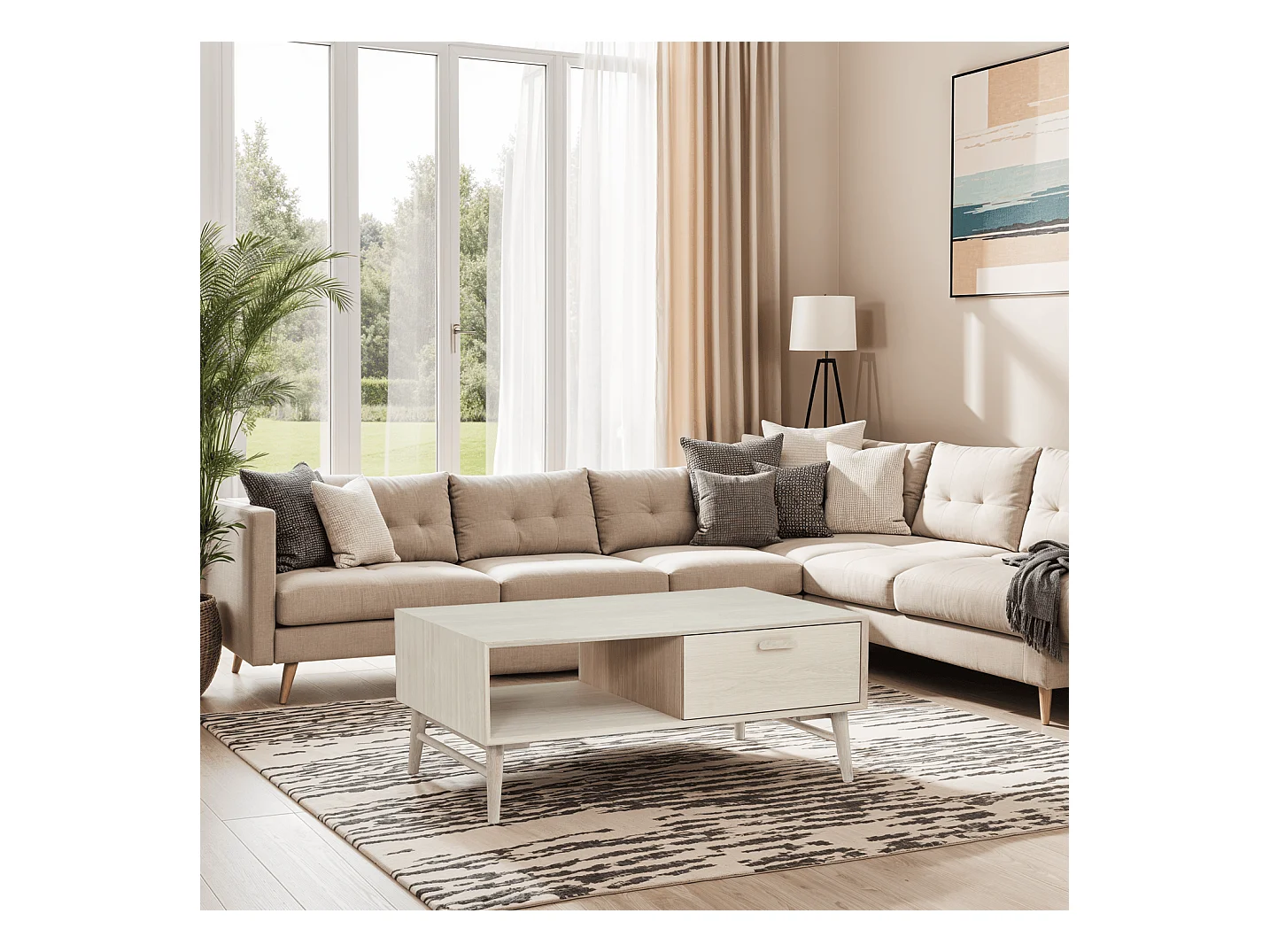 Rechteckiger Couchtisch Porto - Eichenholz & MDF - Weißöl