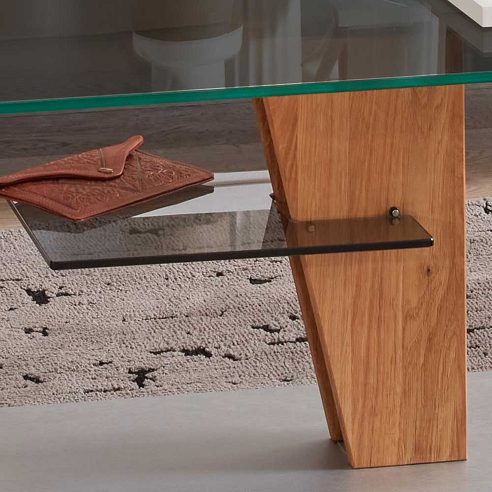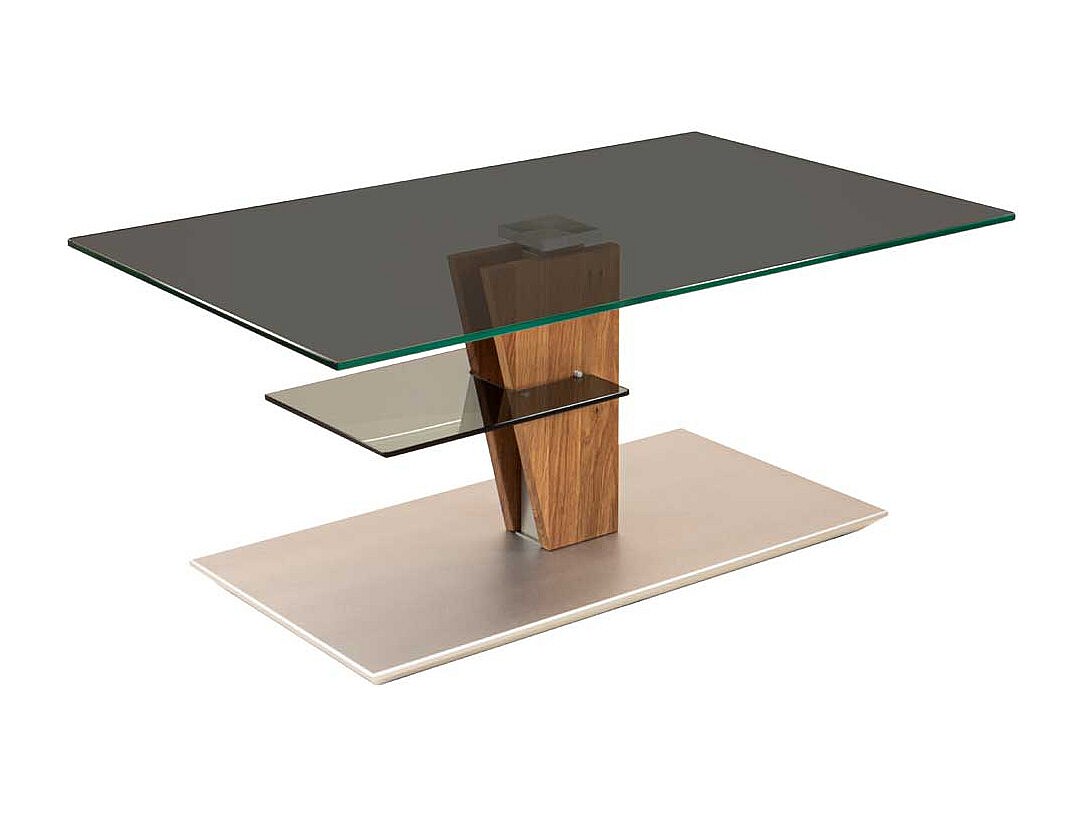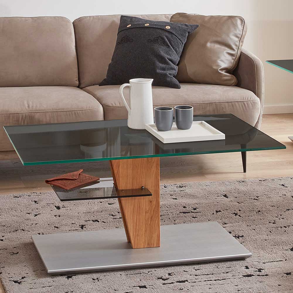 Rechteckiger Design Couchtisch mit Rauchglasplatte höhenverstellbar und auf Rollen