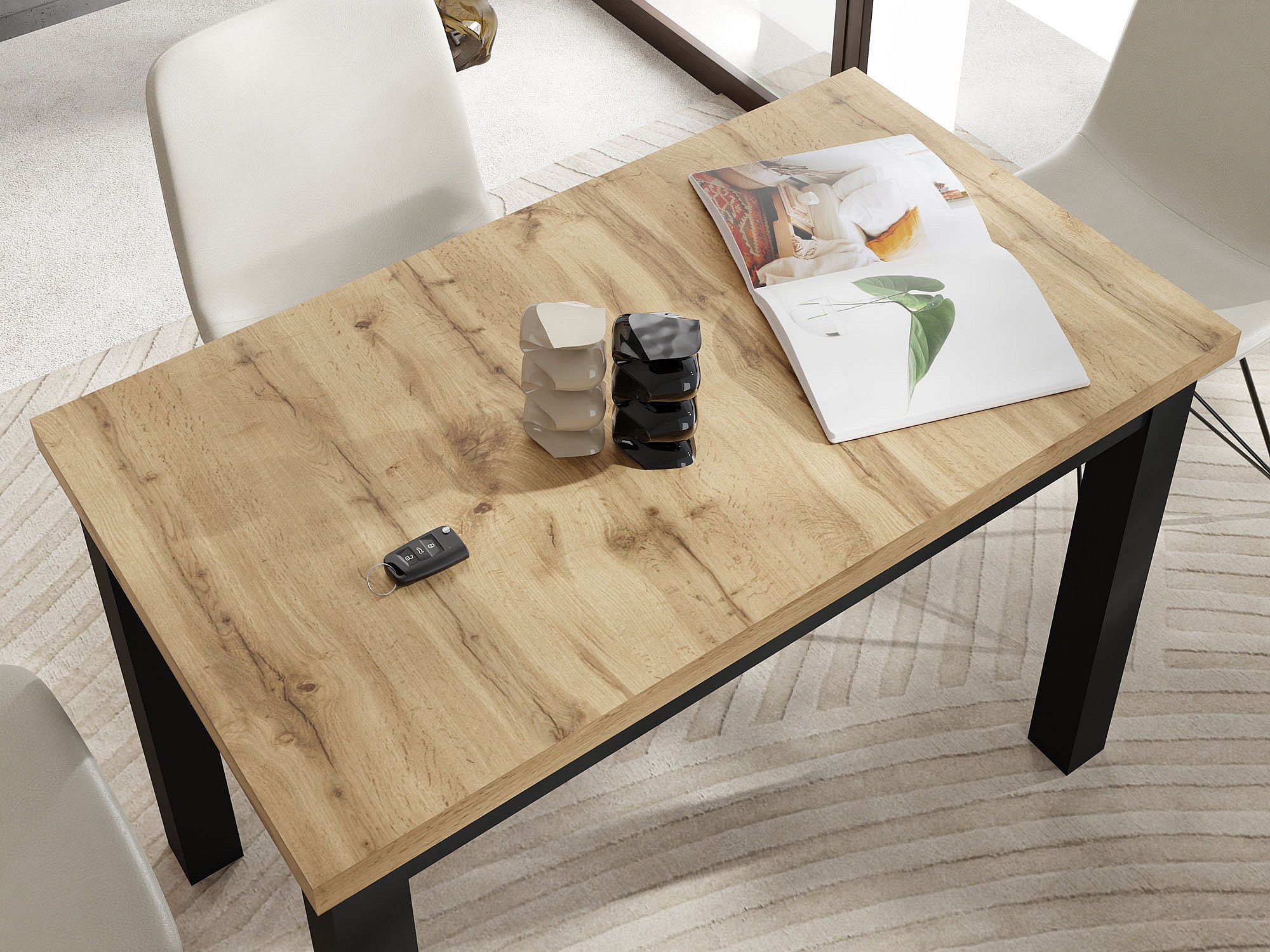 Rechteckiger Esstisch 100 x 60 – Platzsparender Küchentisch in Skandi & Loft Stil – Wotan Eiche & Schwarze Massivholzbeine – für Küche, Wohnzimmer oder Büro – Arden