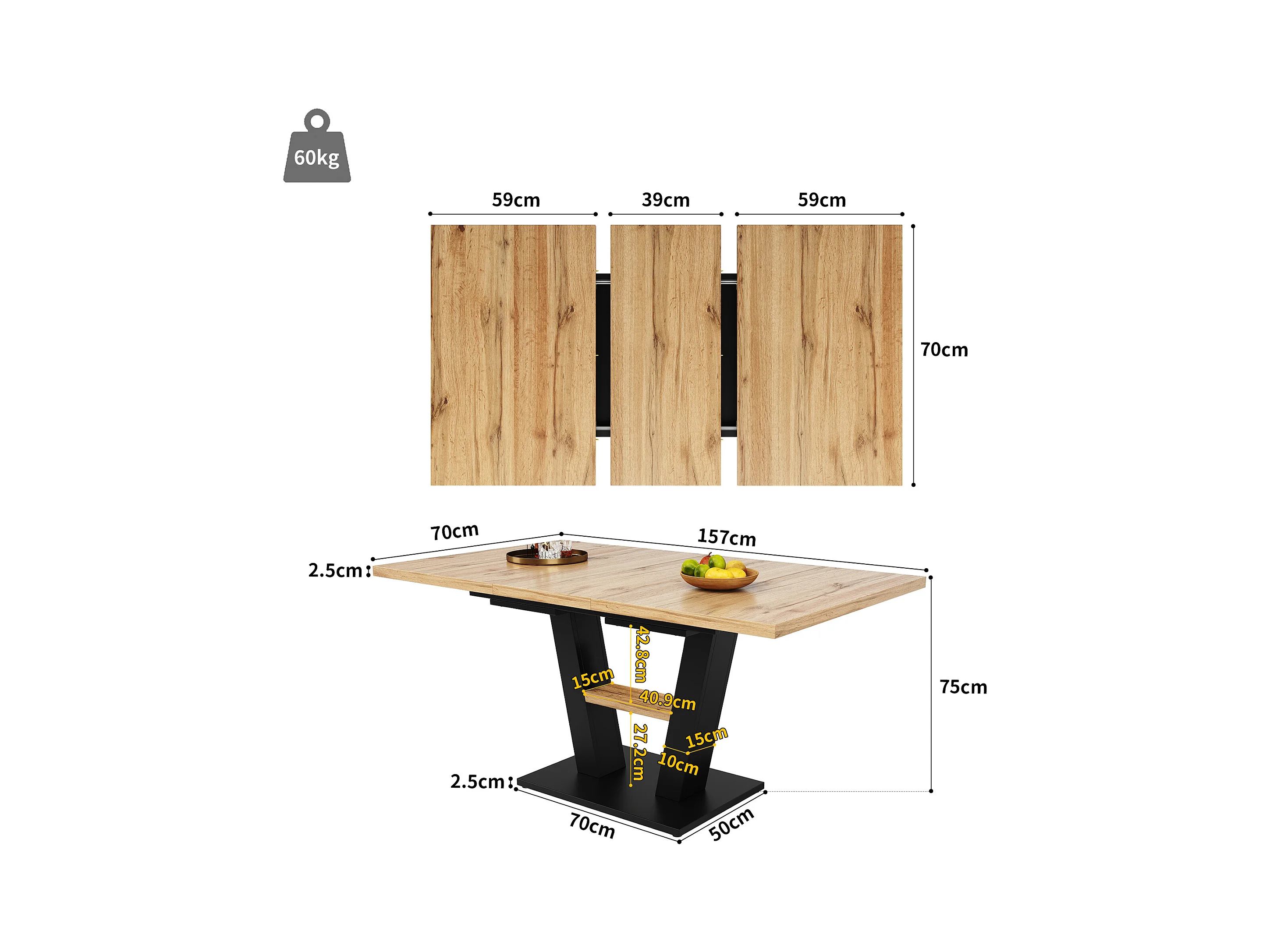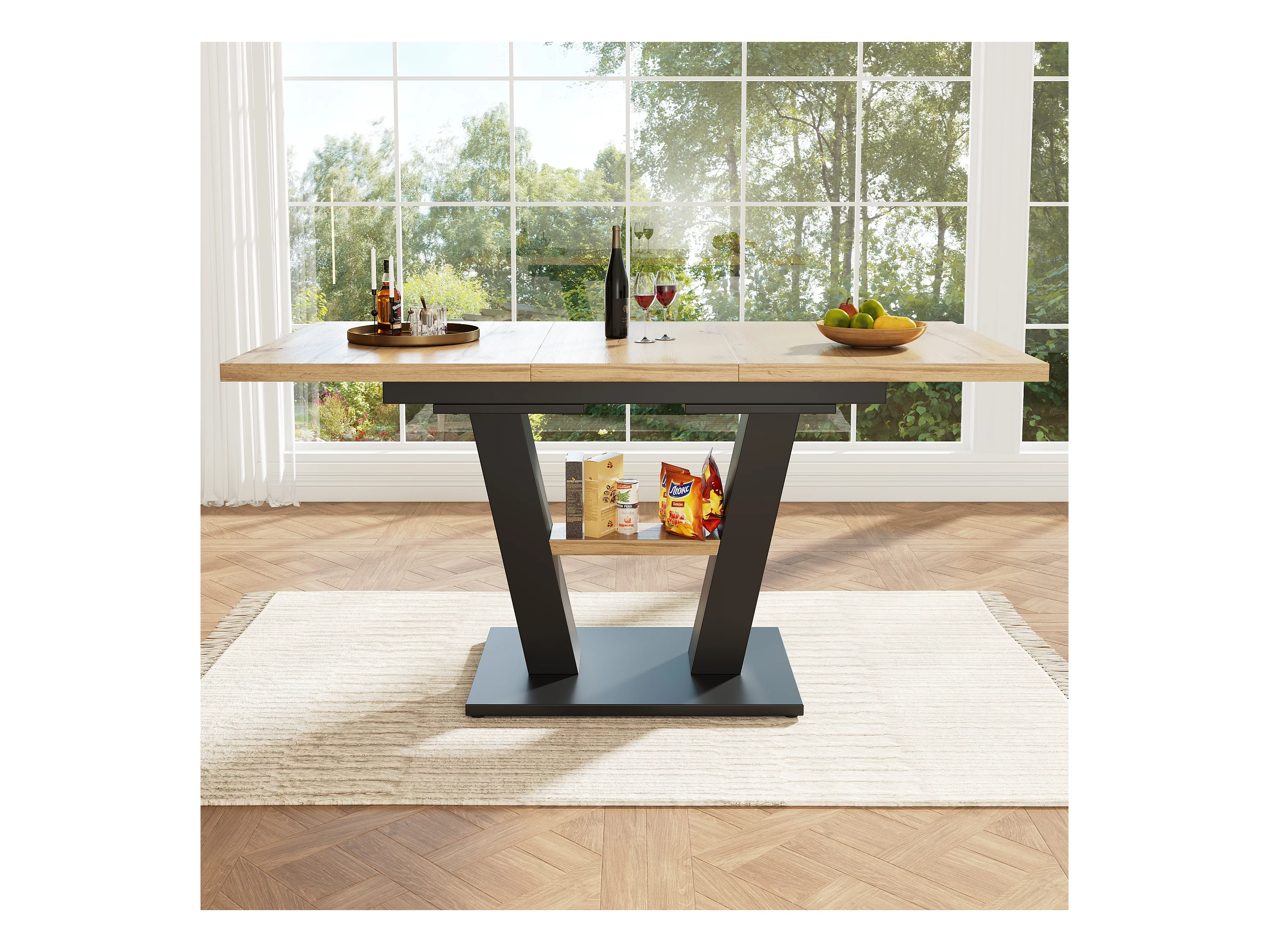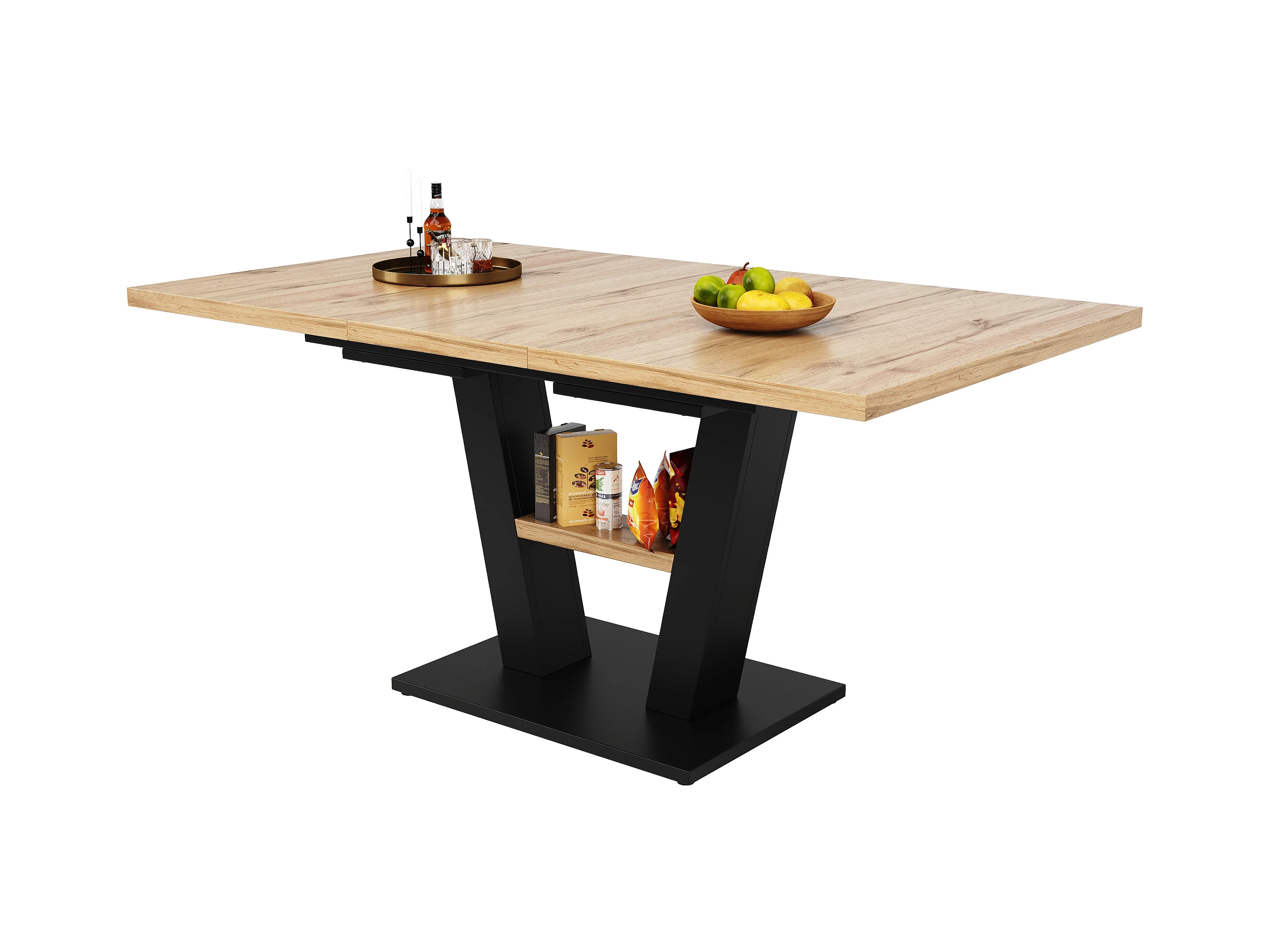 Rechteckiger Esstisch - Esstisch mit Stauraum und Holzplatte - einziehbar - für küche und wohnzimmer