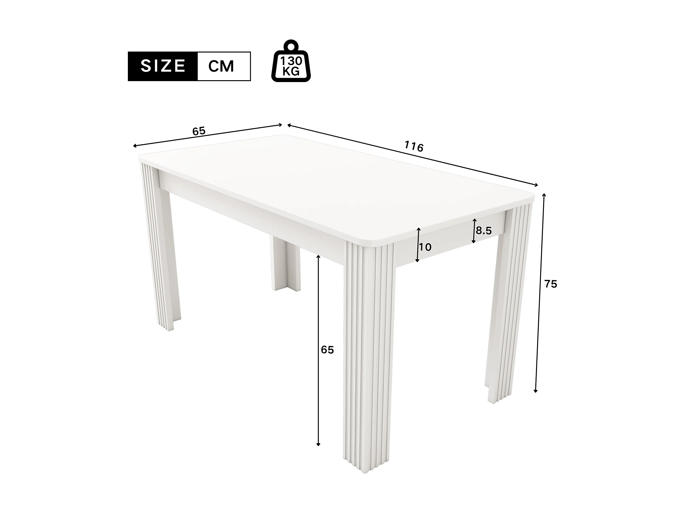 Rechteckiger Esstisch, weiß, 4 Beine – für Esszimmer und Wohnzimmer