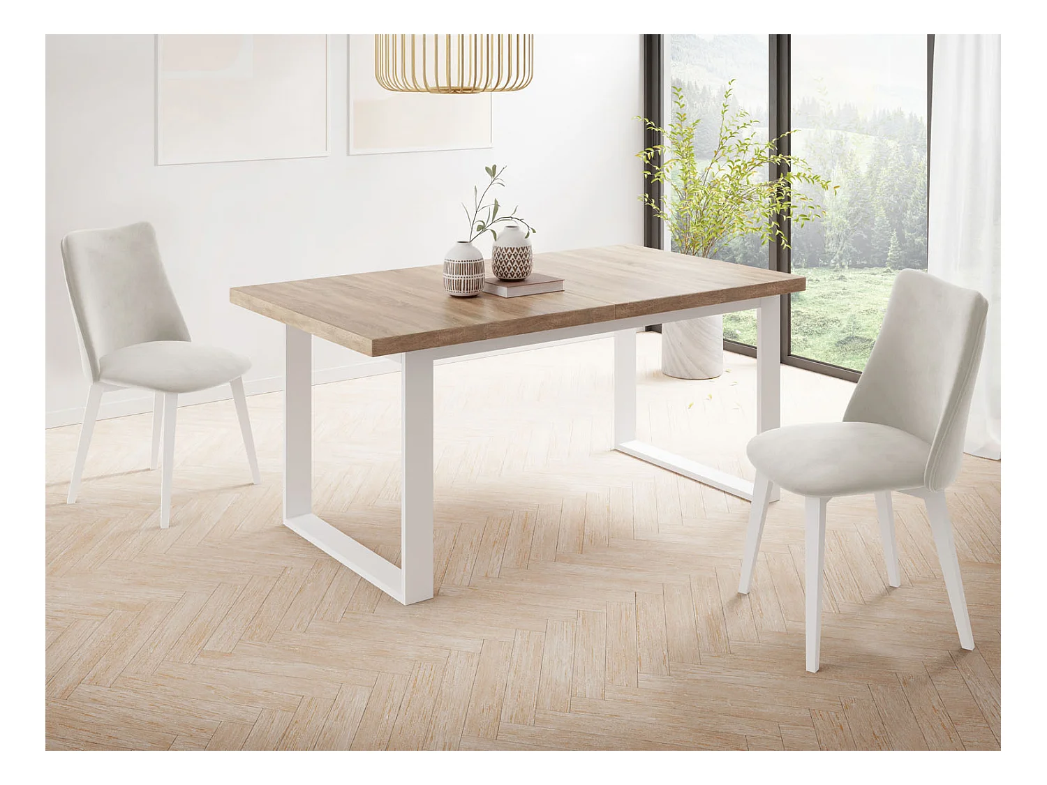 Rechteckiger Loft Esstisch Für Wohnzimmer - Loft Stil Esstisch Mit Weißen Metallfüßen - Ausziehbarer Esstisch von 160 cm bis 200 cm - Made in EU - Sonoma Eiche