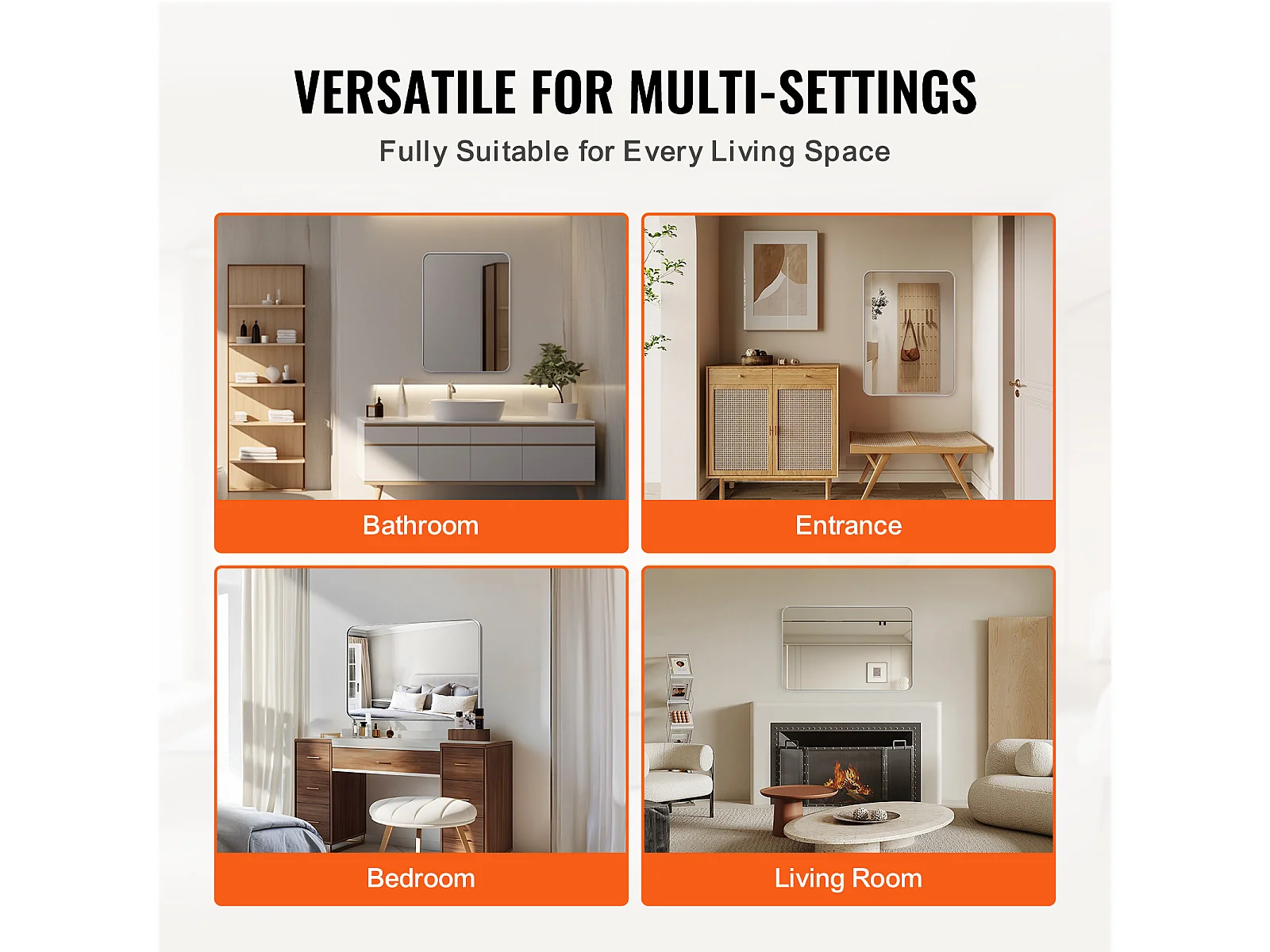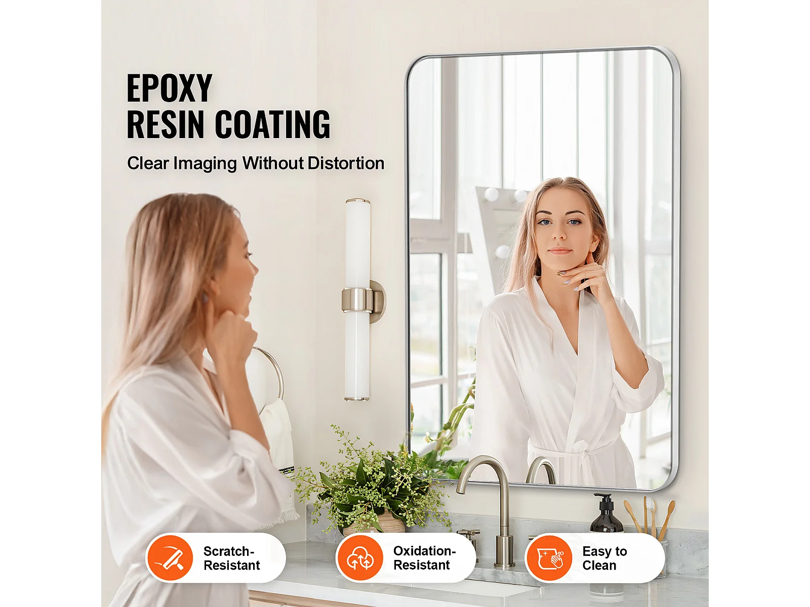 Rechteckiger Spiegel, SucceBuy 55,9 × 76,2 cm Quadratischer Wandspiegel mit Aluminiumrahmen
