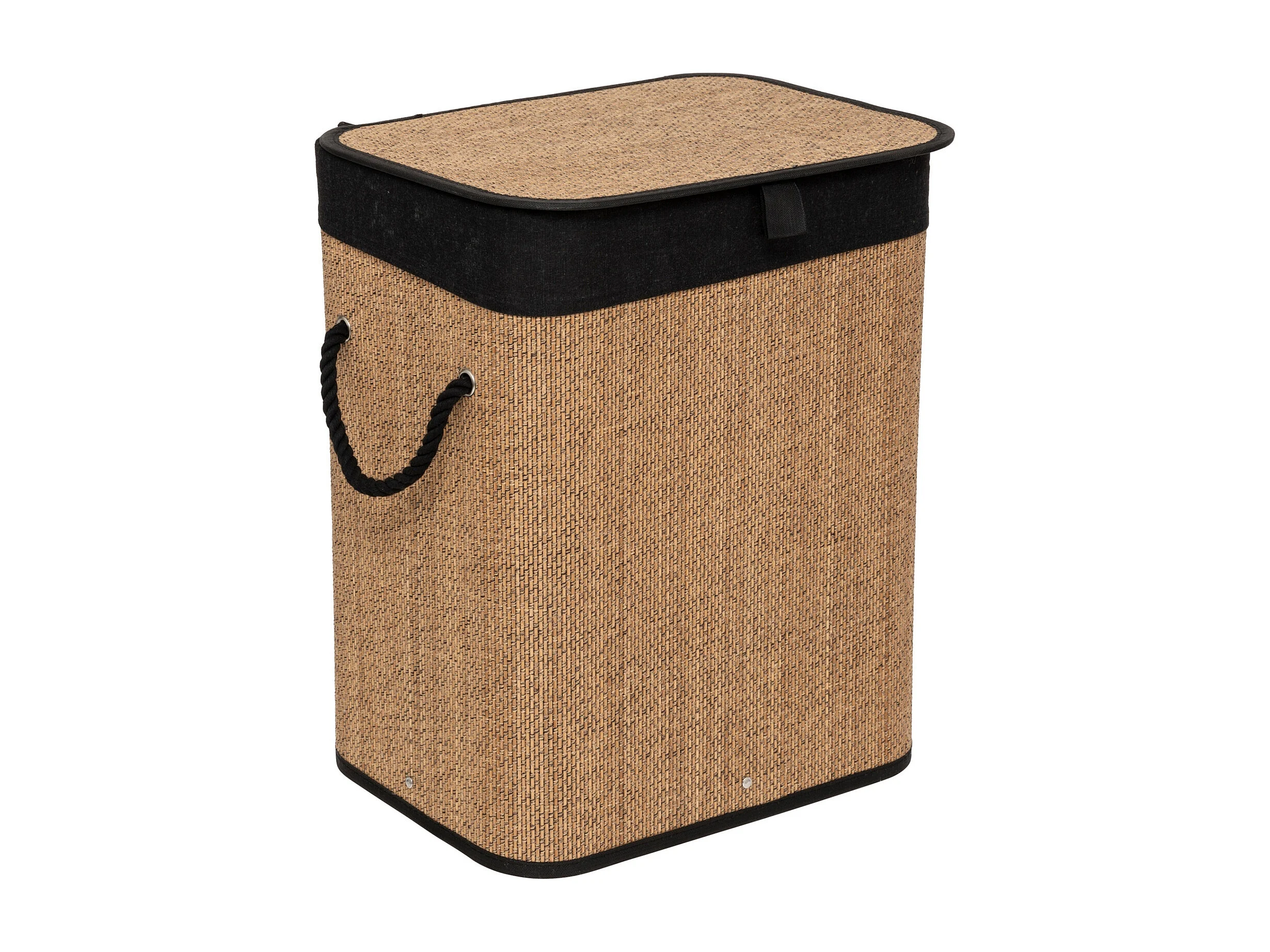 Rechteckiger Wäschekorb 60L aus Bambus und schwarzem Stoff 42 x 30 x 50 cm