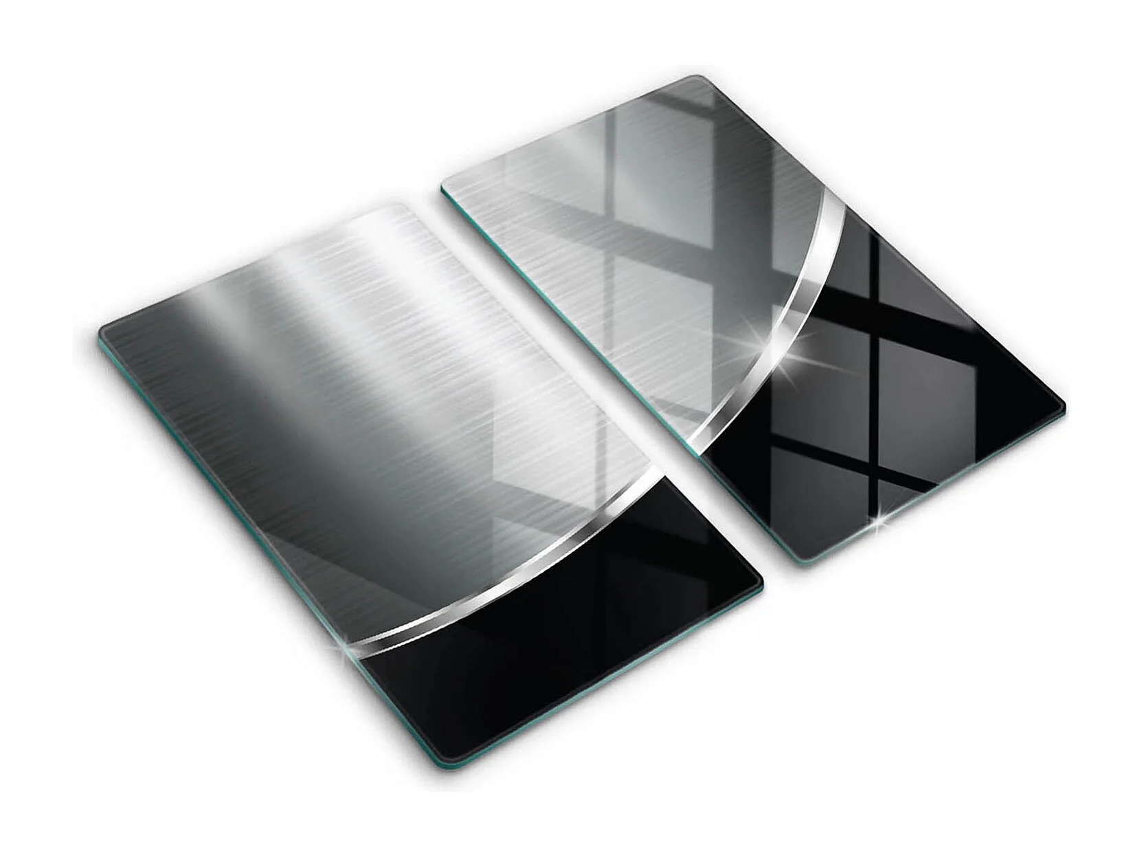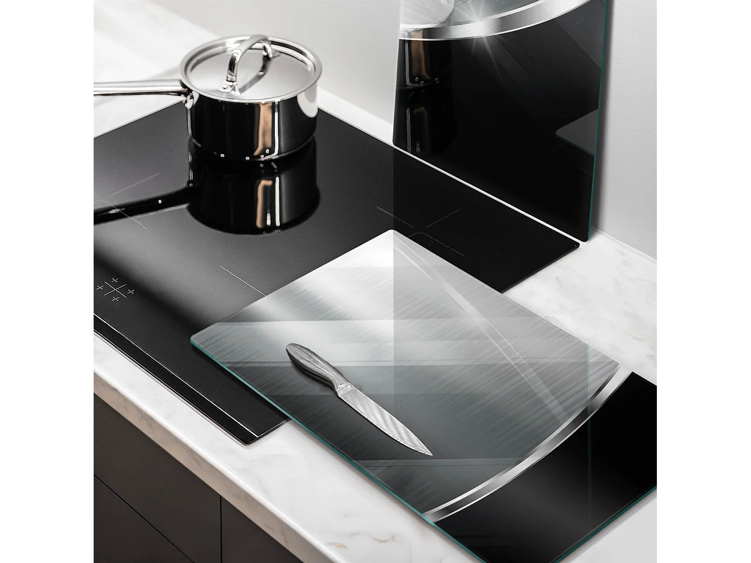 Rechteckiges Küchenbrett aus Glas, 2 Stück 30x52 cm Abstraktion mit Metall