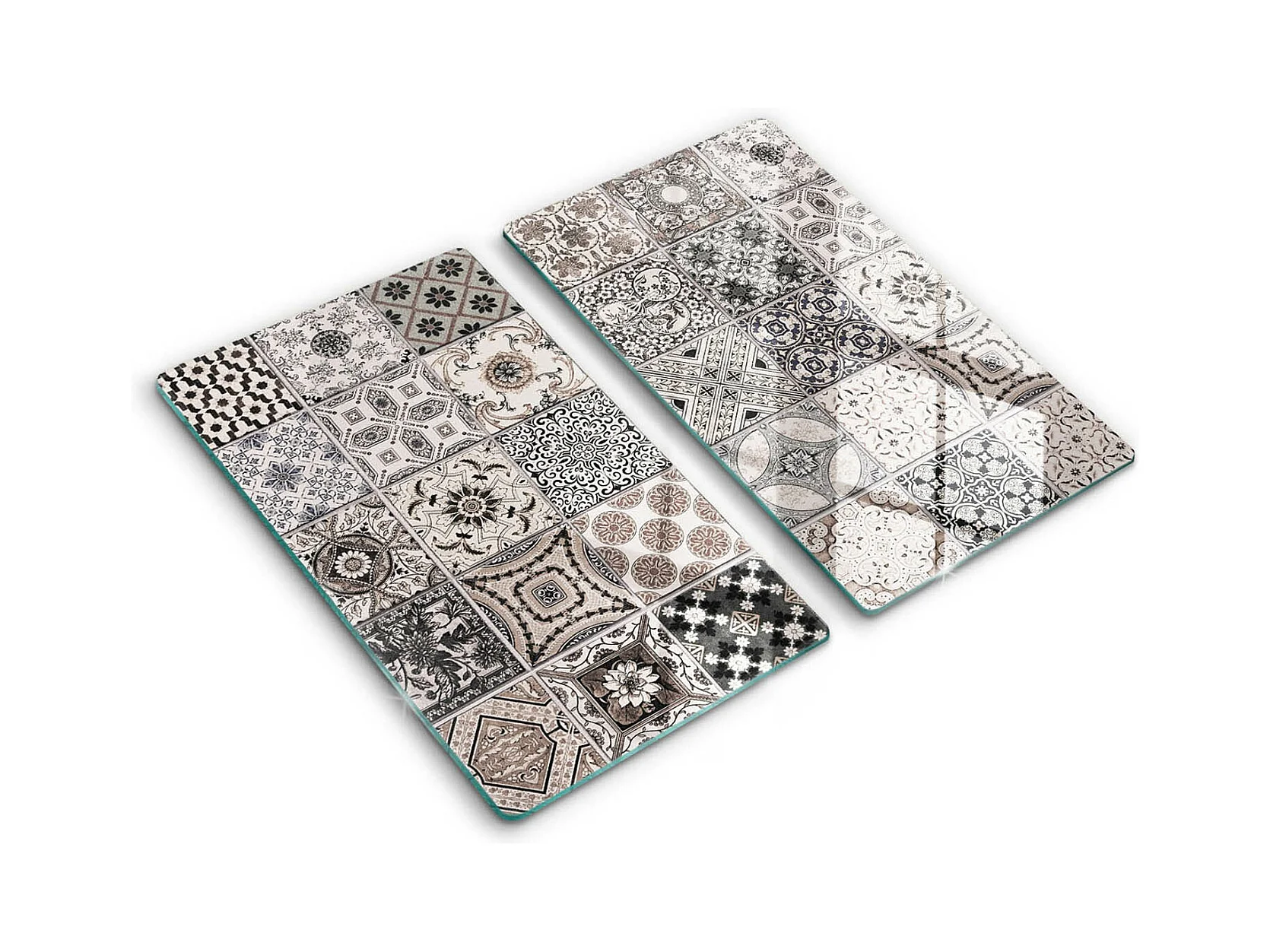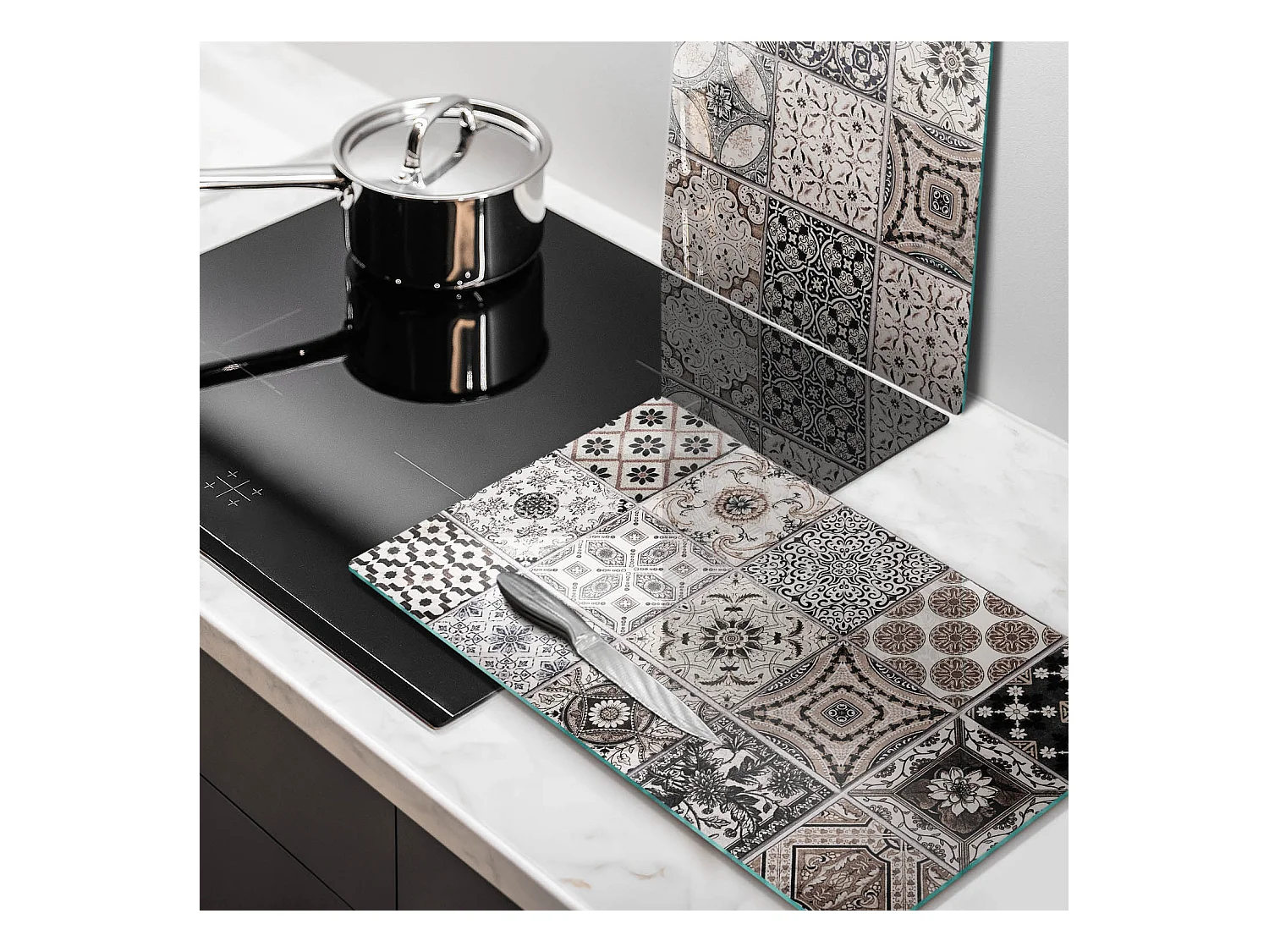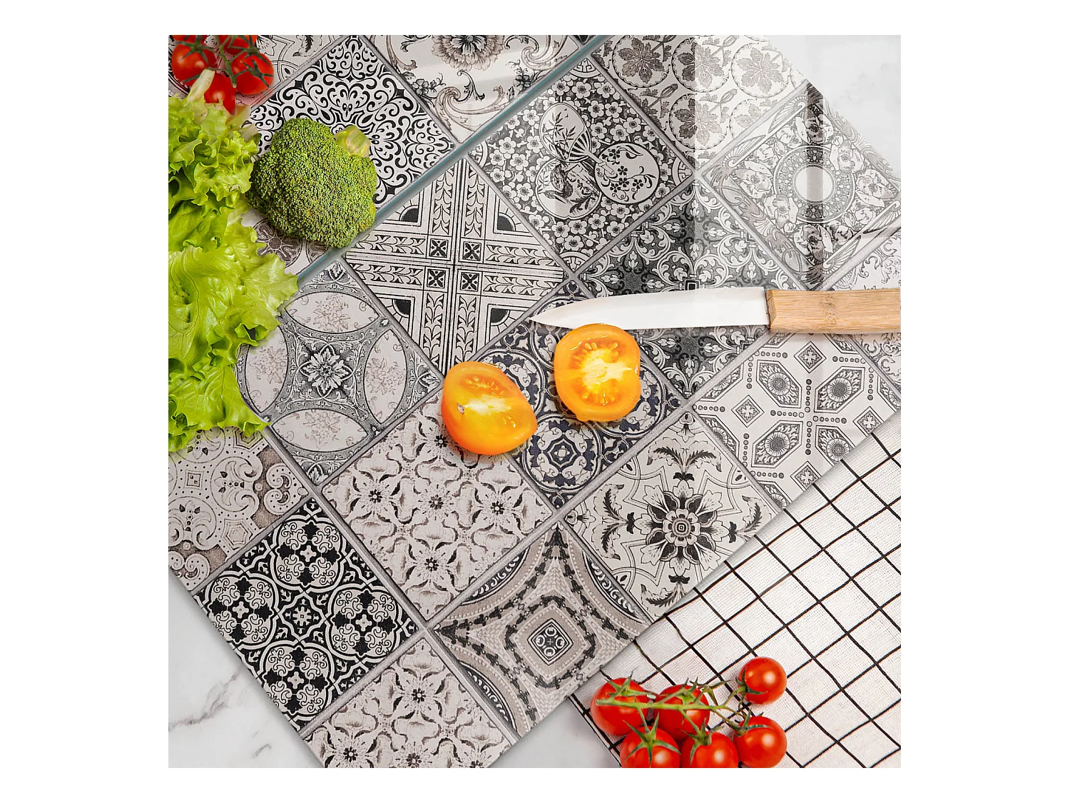Rechteckiges Küchenbrett aus Glas, 2 Stück 30x52 cm, dekorative Fliesen