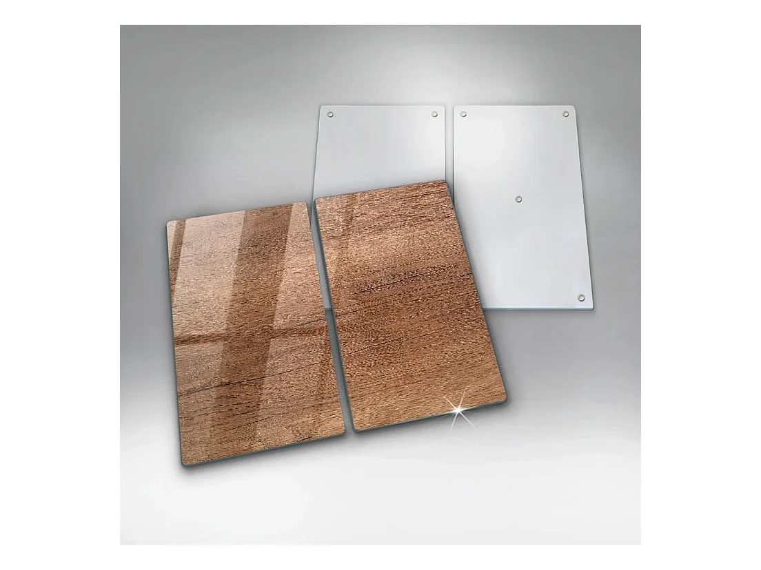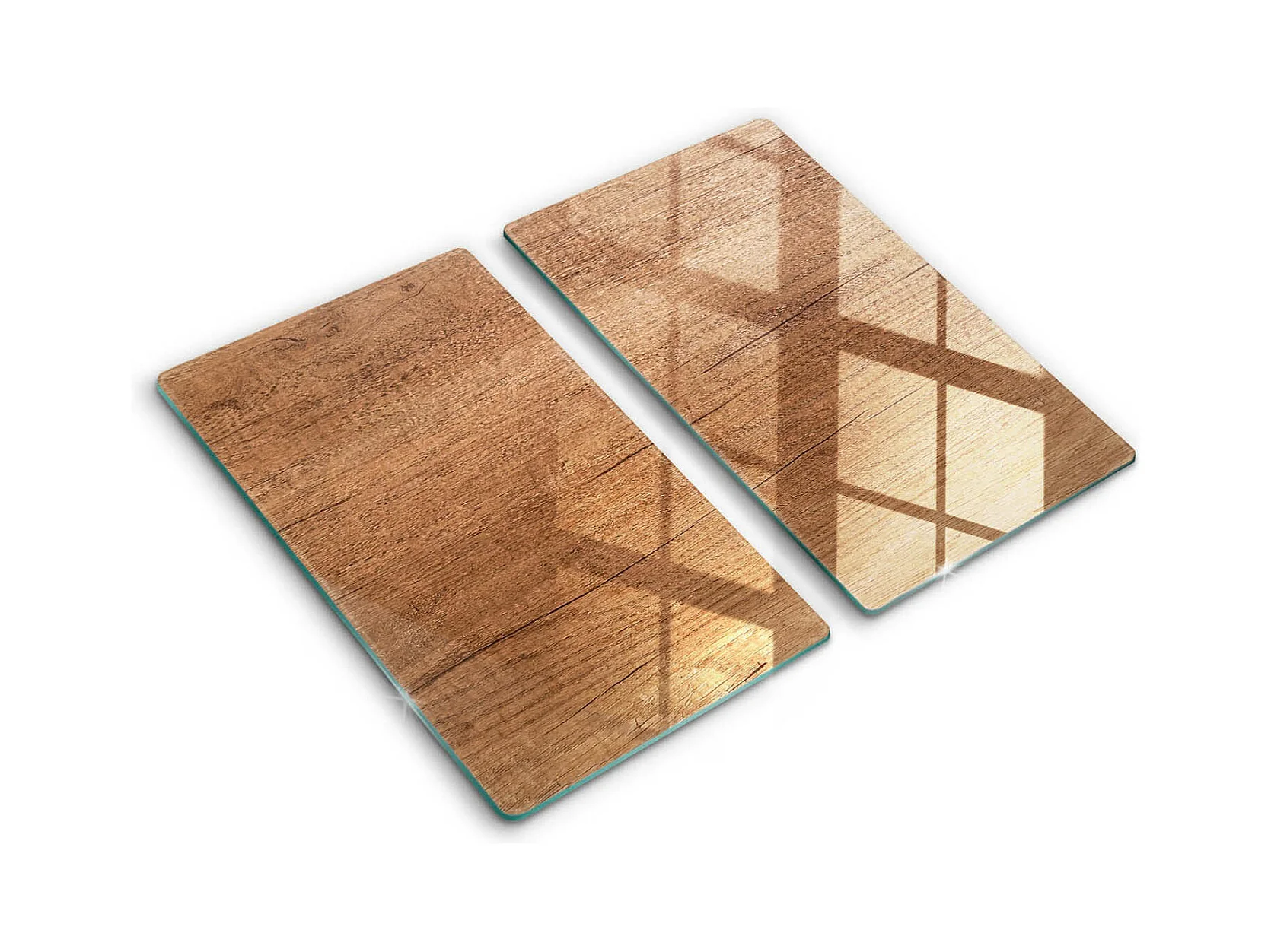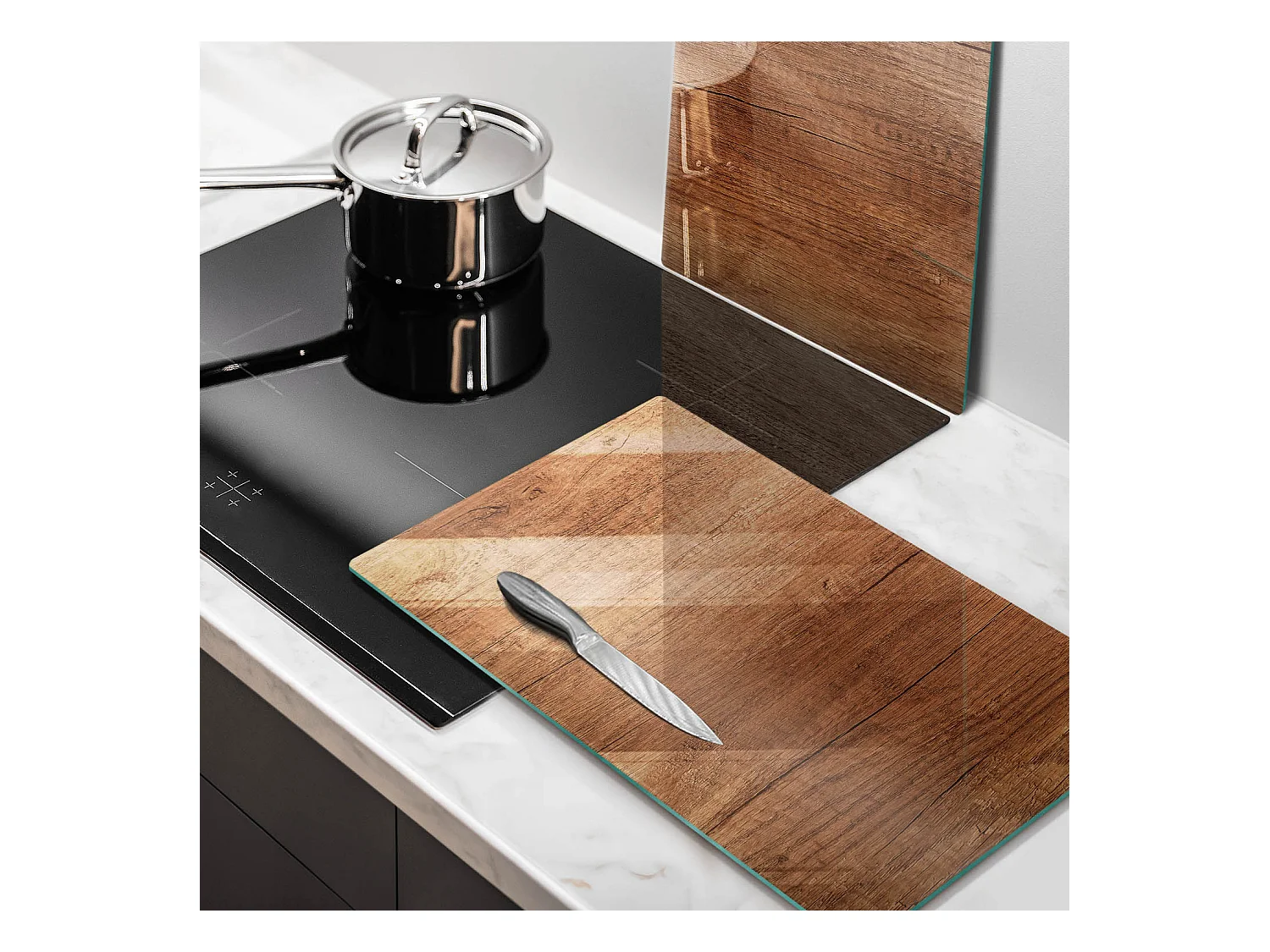 Rechteckiges Küchenbrett aus Glas, 2 Stück 30x52 cm, Holzstruktur