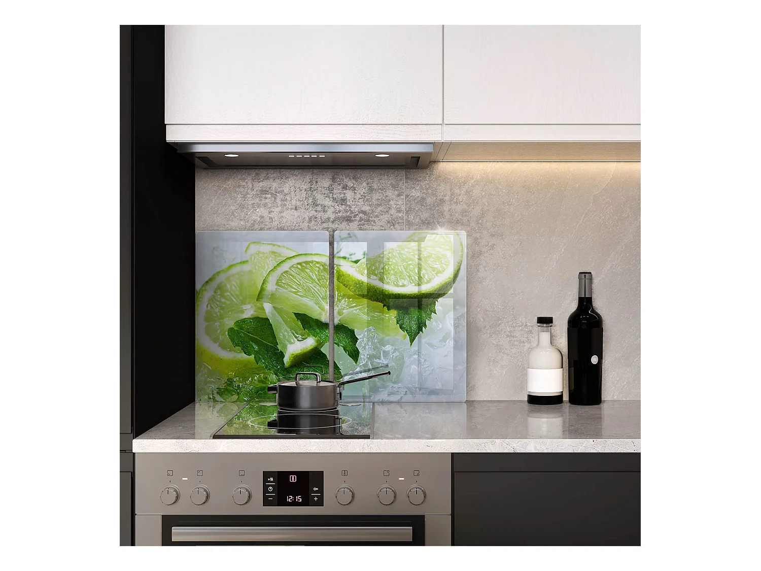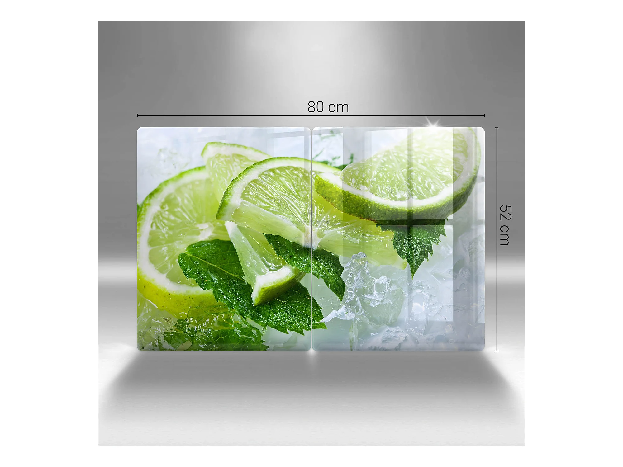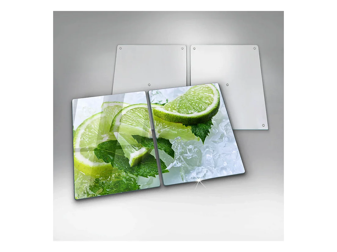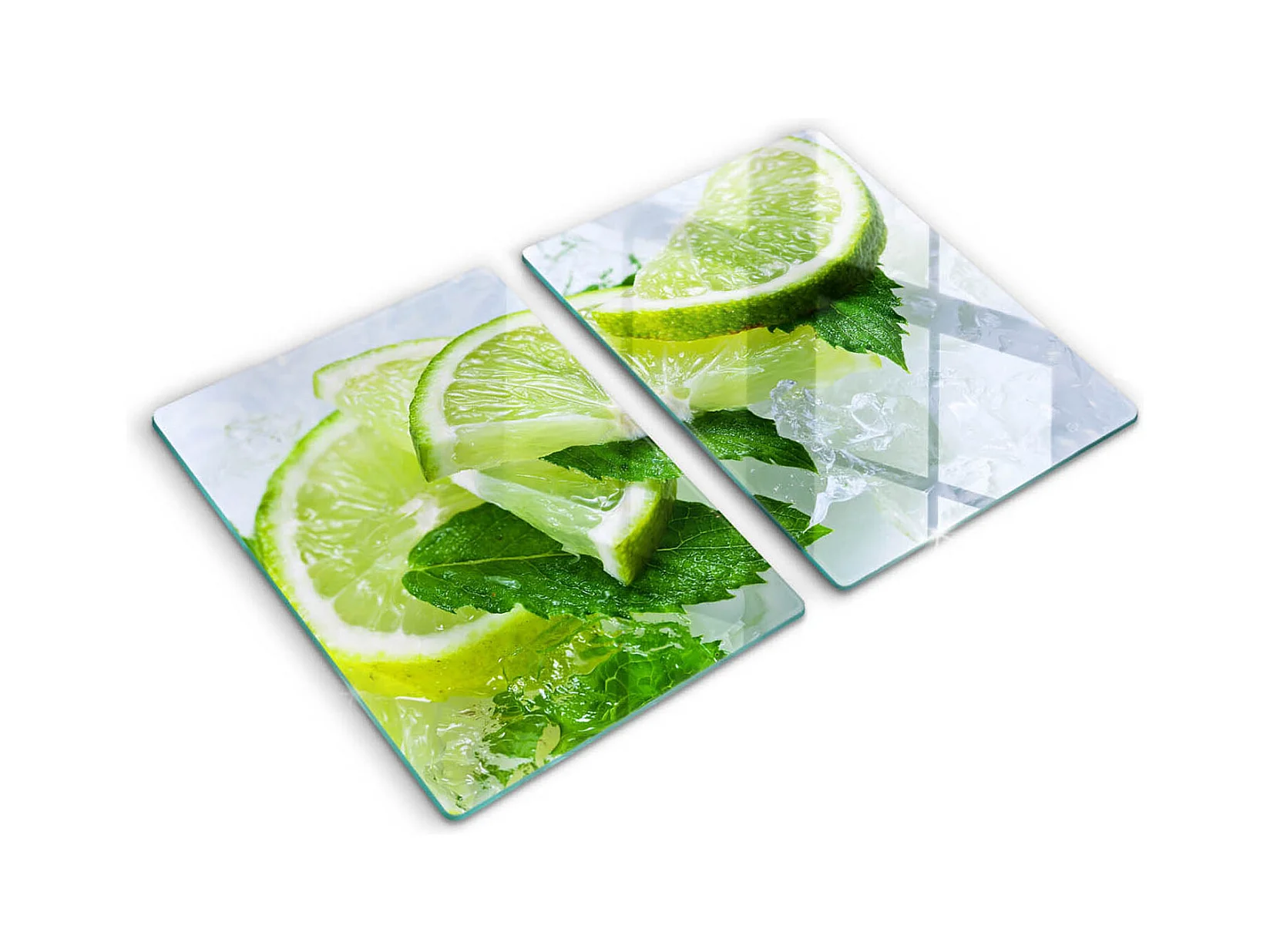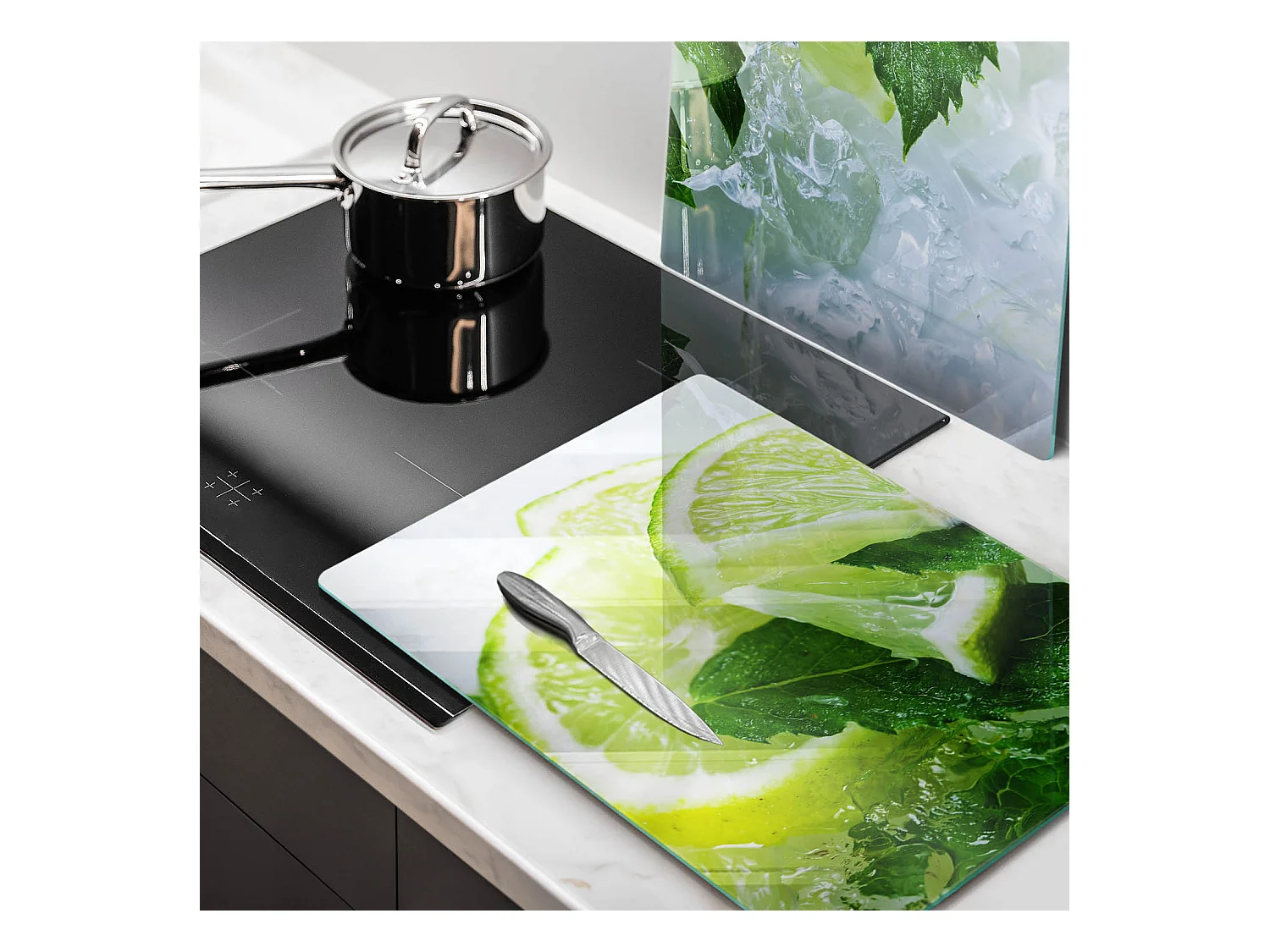 Rechteckiges Küchenbrett aus Glas, 2 Stück 40x52 cm Limette, Minze und Eis