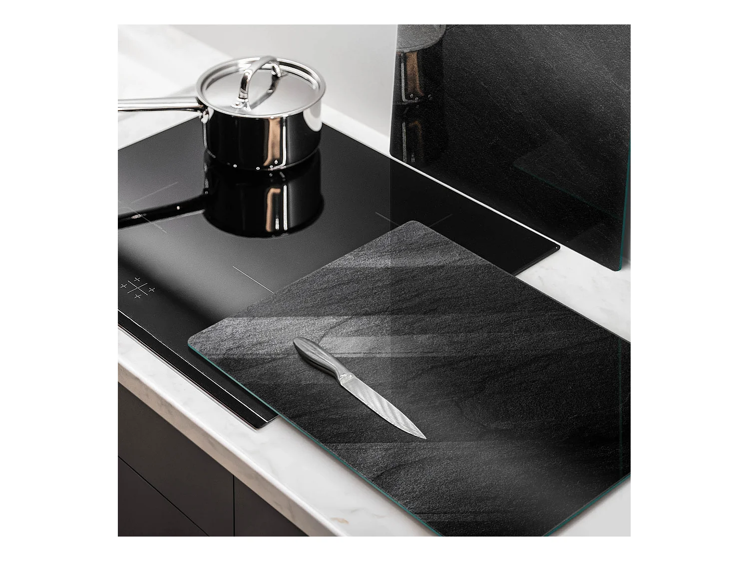 Rechteckiges Küchenbrett aus Glas, 2 Stück, 40x52 cm, Steinstruktur