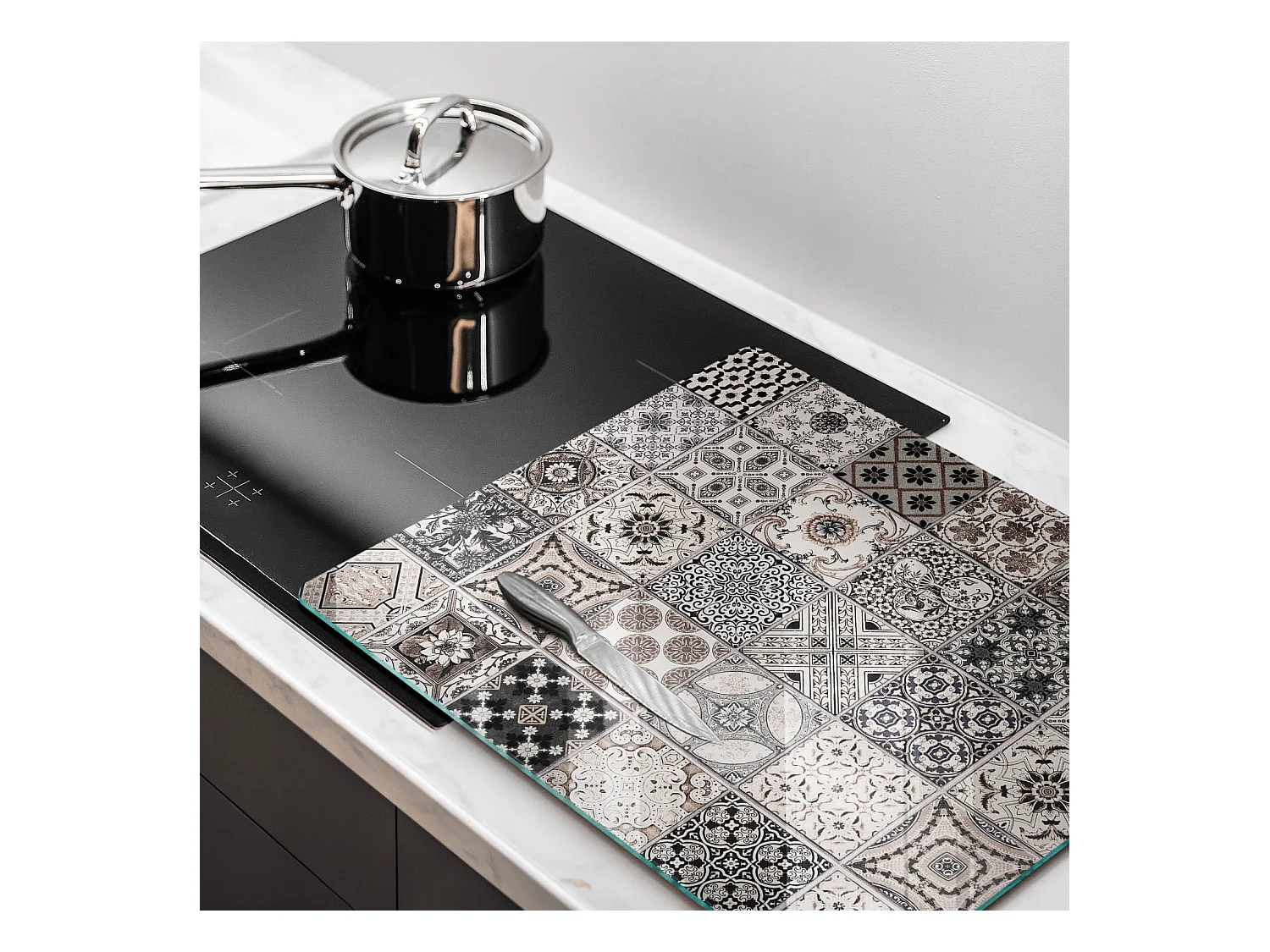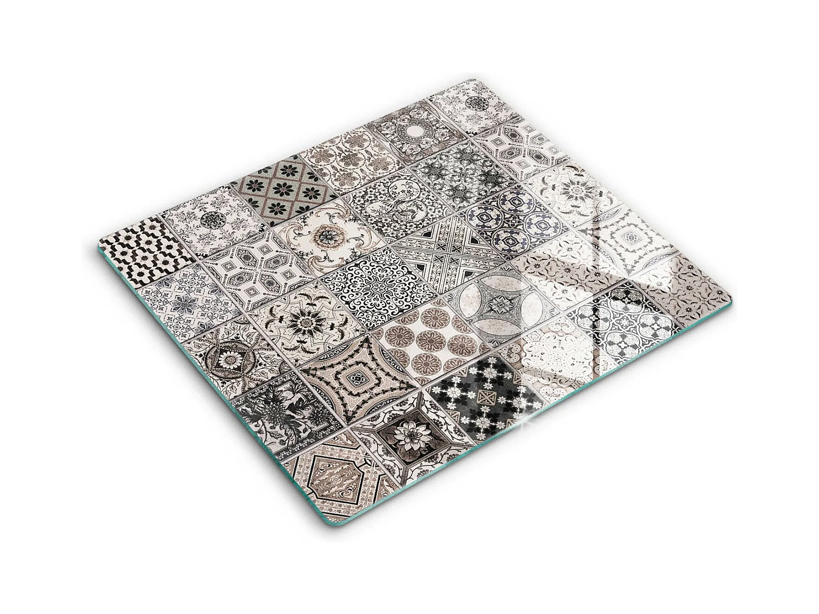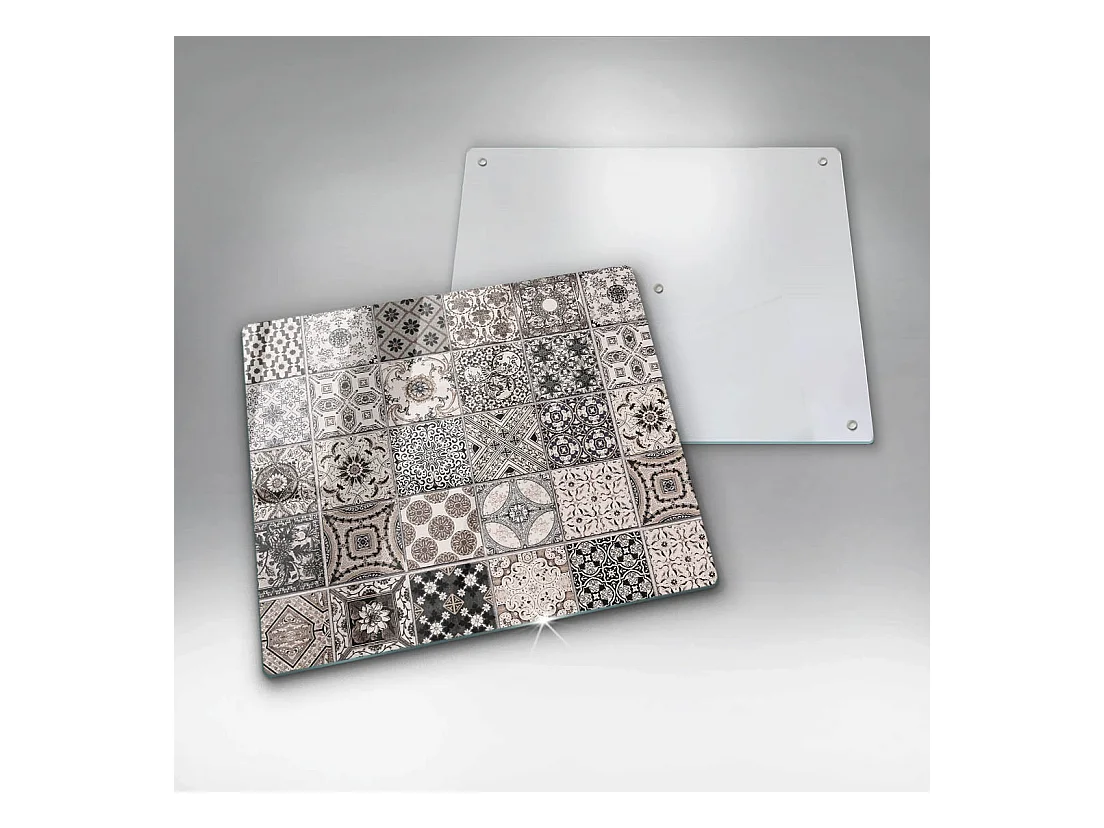 Rechteckiges Küchenbrett aus Glas, 60x52 cm, dekorative Fliesen