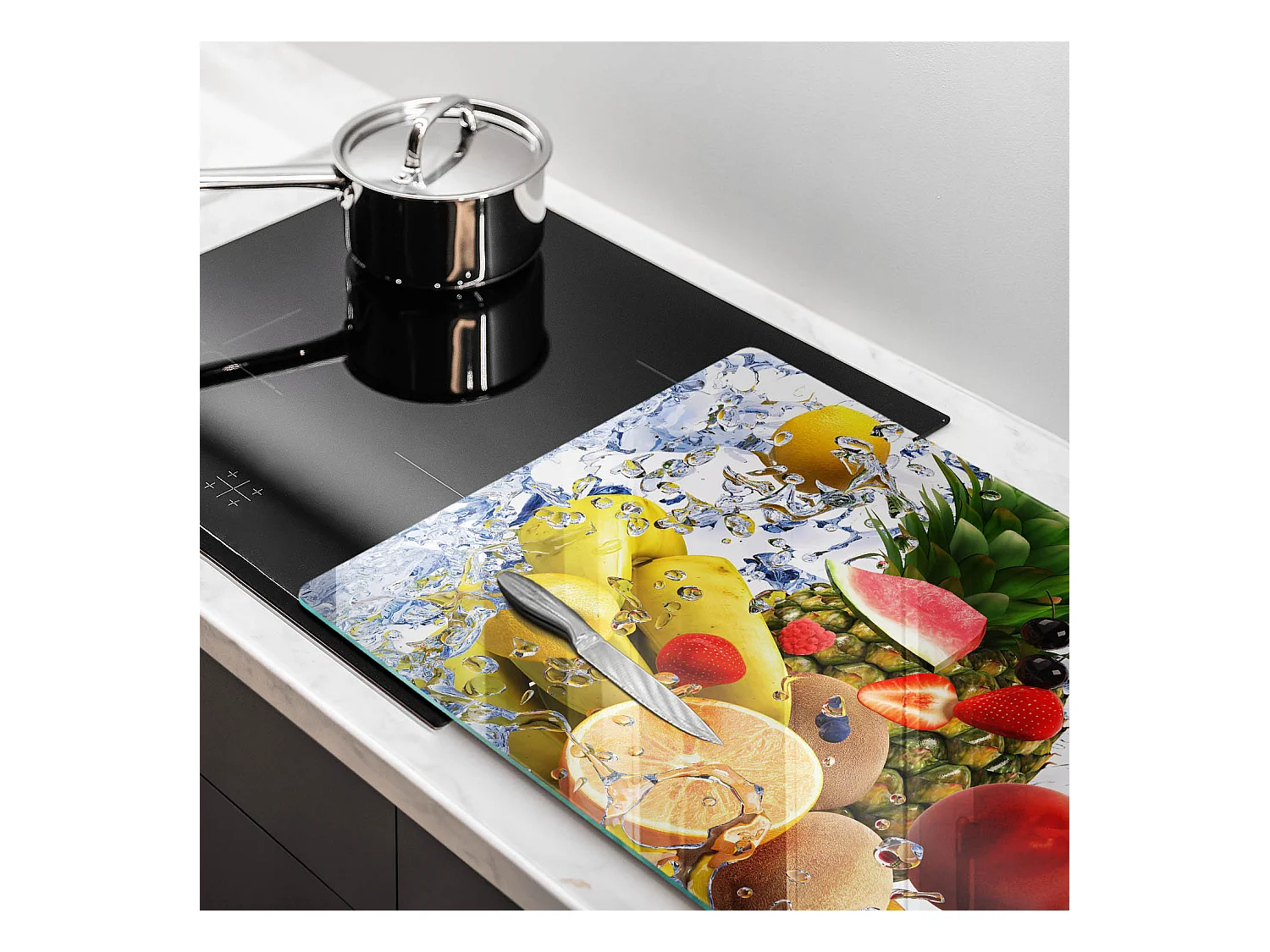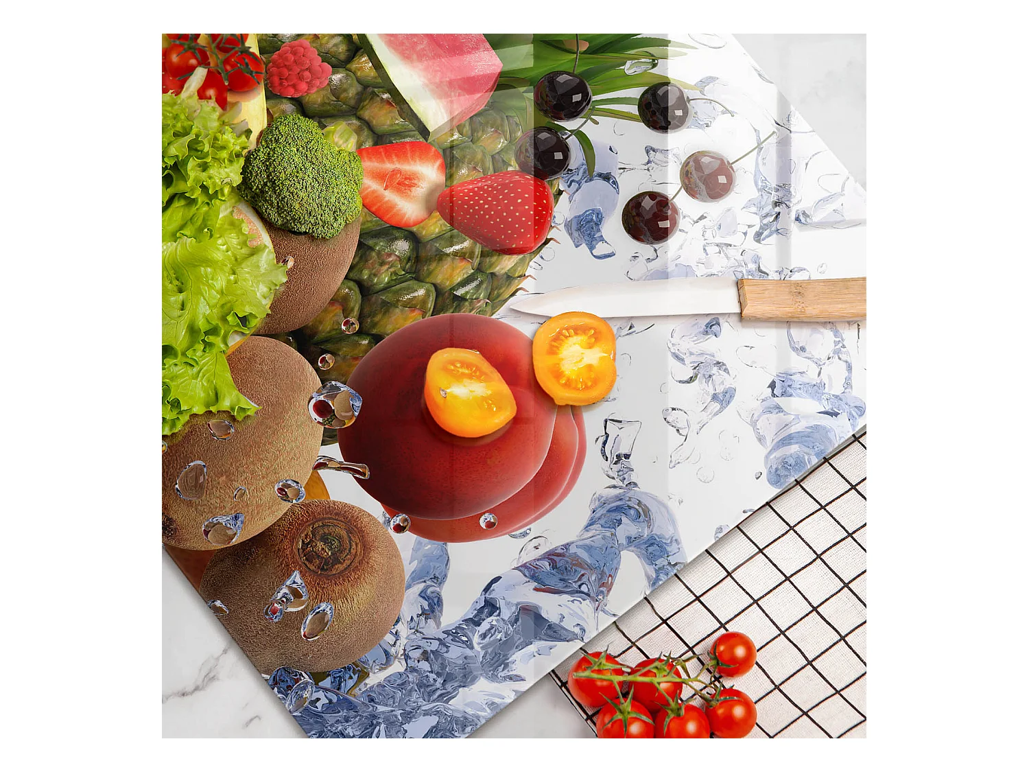 Rechteckiges Küchenbrett aus Glas, 80x52 cm Saftige Früchte und Wasser